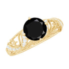 Round Created Black Diamond Vintage Inspired Engagement Ring with Diamond