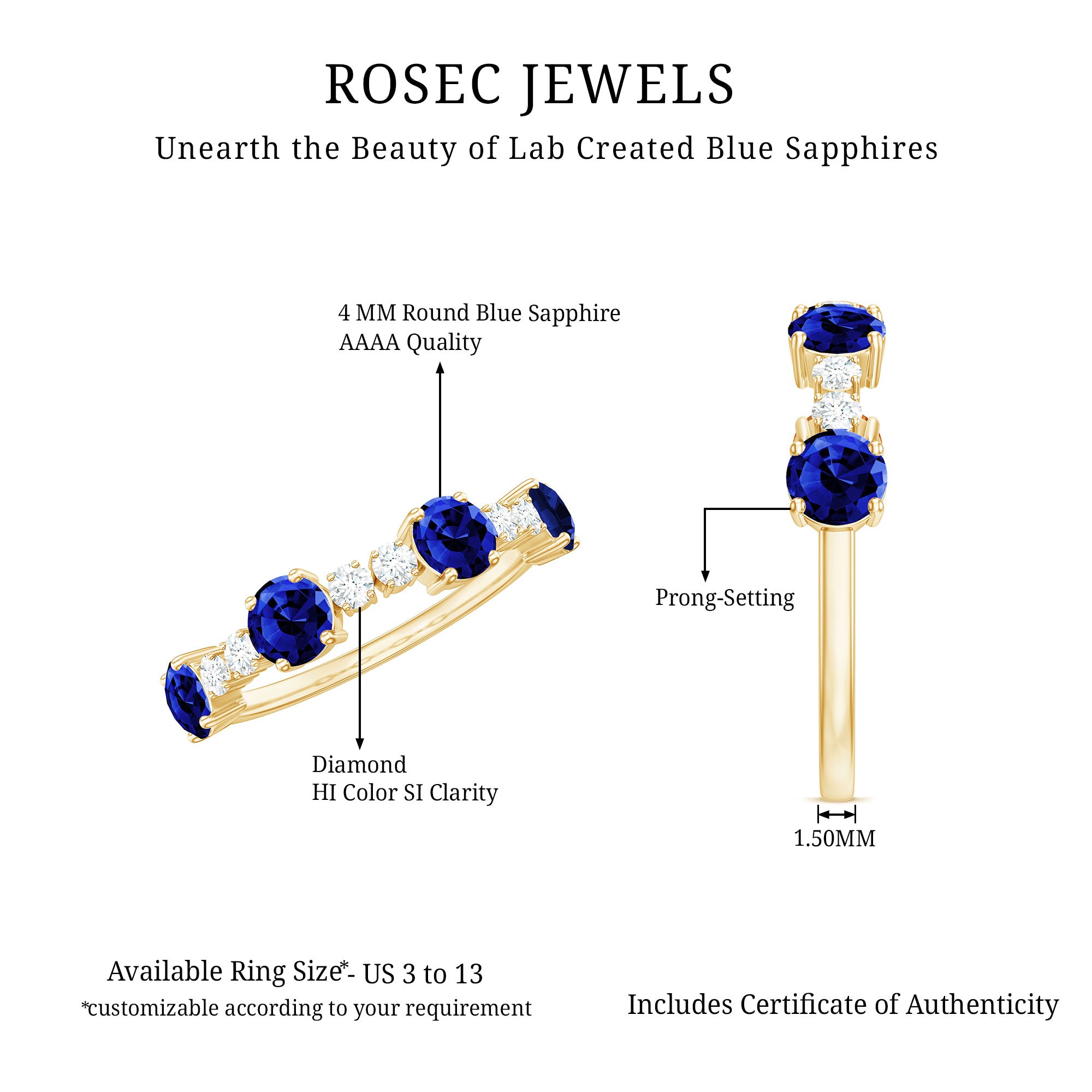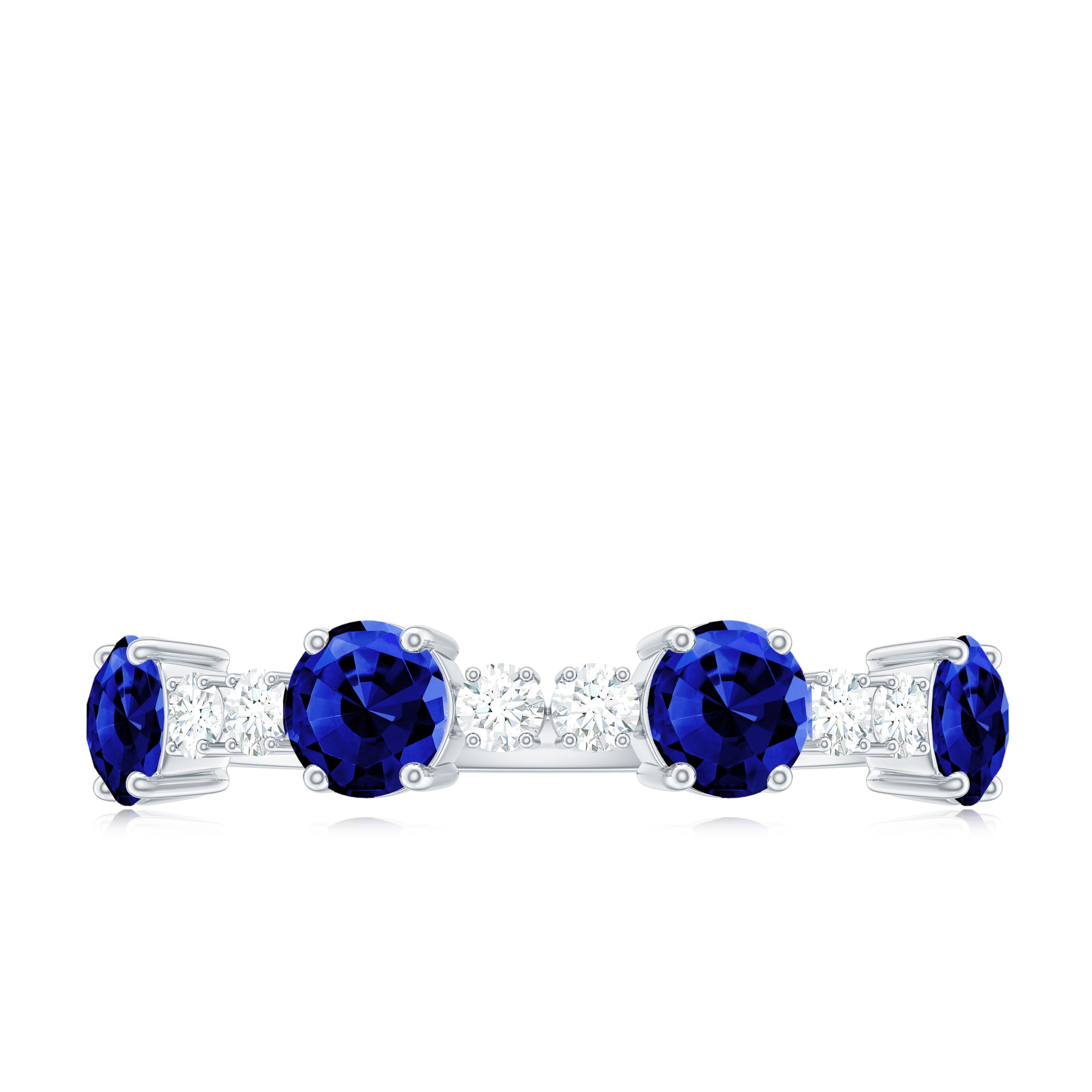 Round Created Blue Sapphire and Diamond Alternate Half Eternity Ring