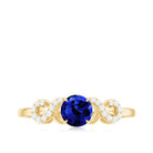 Round Created Blue Sapphire Infinity Engagement Ring with Diamond