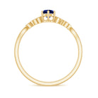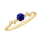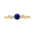 Round Created Blue Sapphire Minimal Leaf Promise Ring with Diamond in Gold