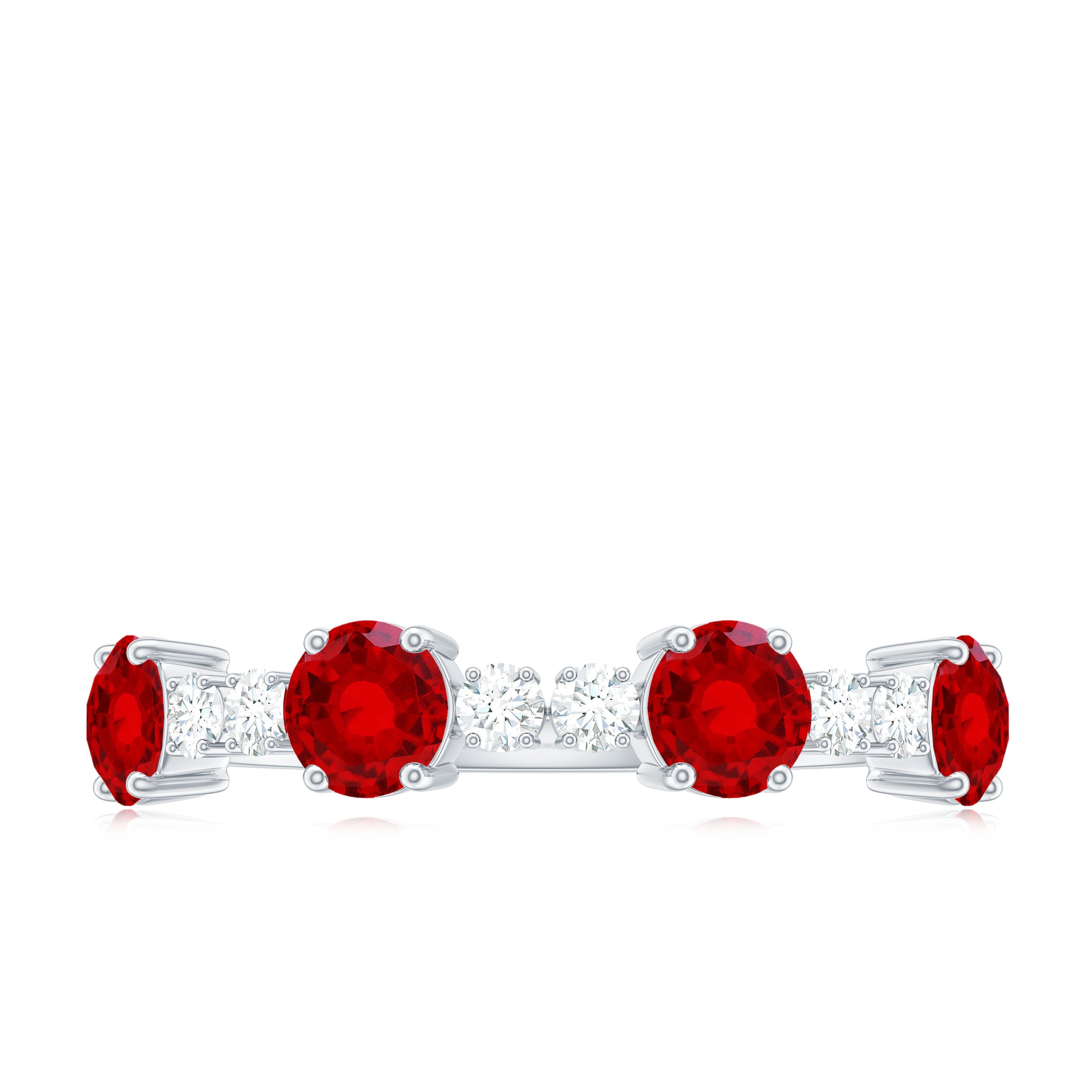Round Created Ruby and Diamond Alternate Half Eternity Ring