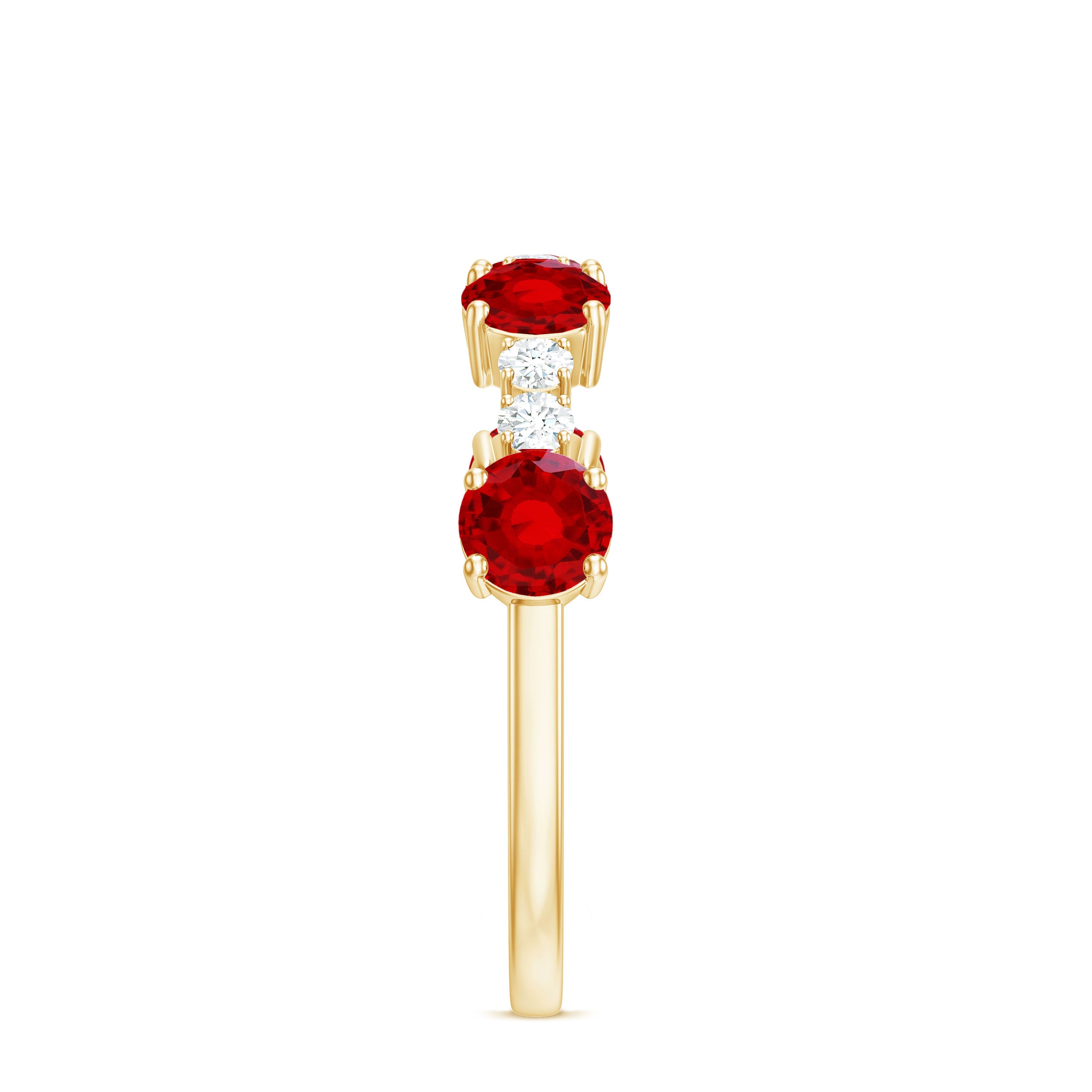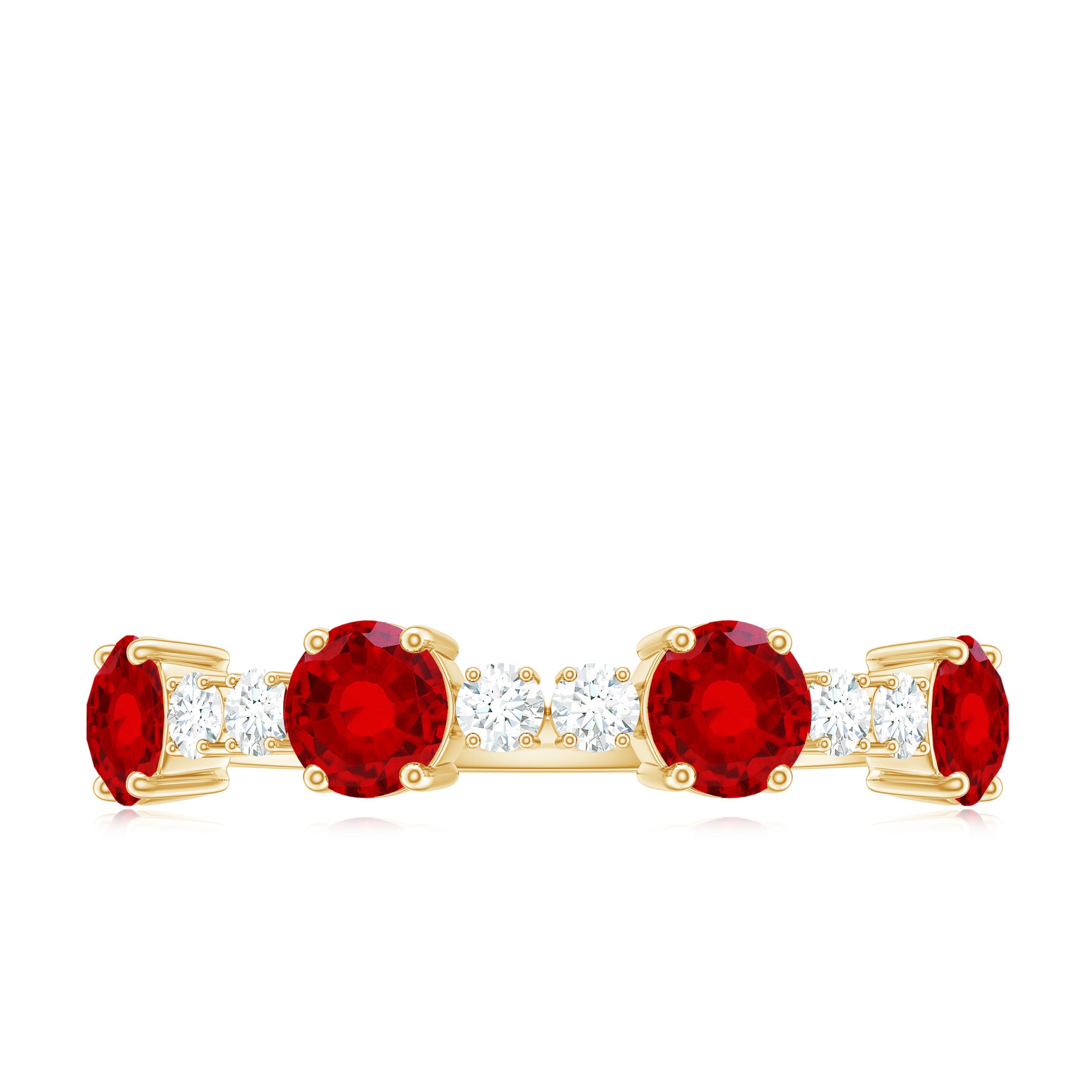 This is a stunning half eternity ring featuring round created ruby and Diamond stones that alternate along the band. The classic band ring is crafted in beautiful gold, giving it a luxurious and sophisticated look. The created ruby and Diamond are expertly set in the prong setting, adding a pop of color and sparkle. Whether youre looking for a special gift, or simply a new piece of jewelry to add to your collection, this round created ruby eternity ring in gold is a gorgeous choice.