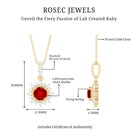 If youre searching for the perfect jewelry to wear on an evening date with your partner, look no further than this Created Ruby Pendant. Featuring a 6 MM Round Shape Created Ruby in a Prong Setting, with Gold Beaded Details and a Round Diamond Halo, this pendant necklace is simply stunning. The subtle yet elegant design will garner compliments when you wear it.