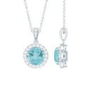 Round Cut 2 CT Sky Blue Topaz and Moissanite Halo Pendant Necklace