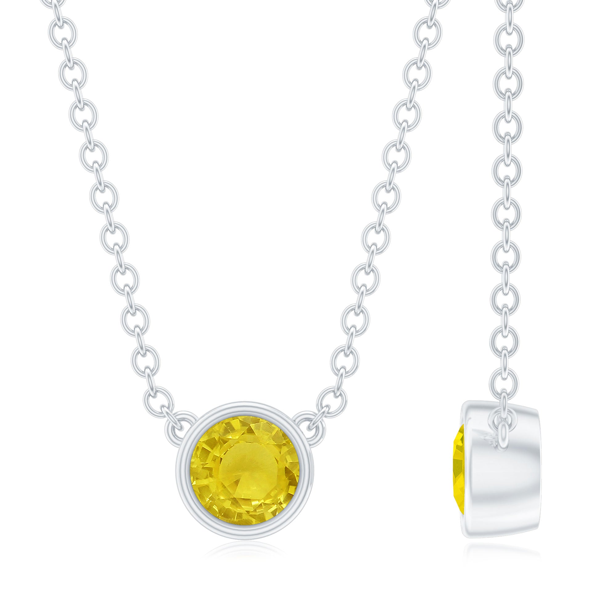 Round Cut 4 MM Yellow Sapphire Bezel Set Necklace