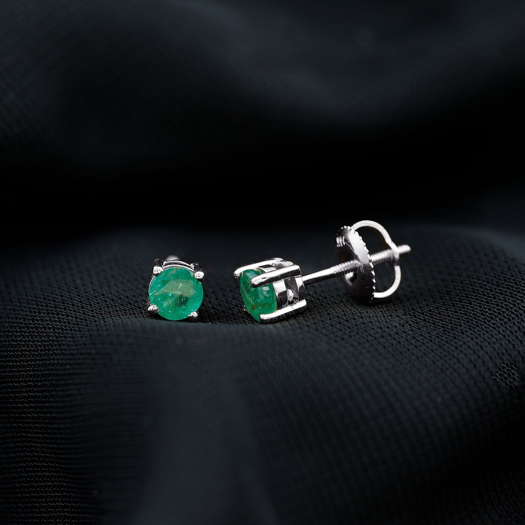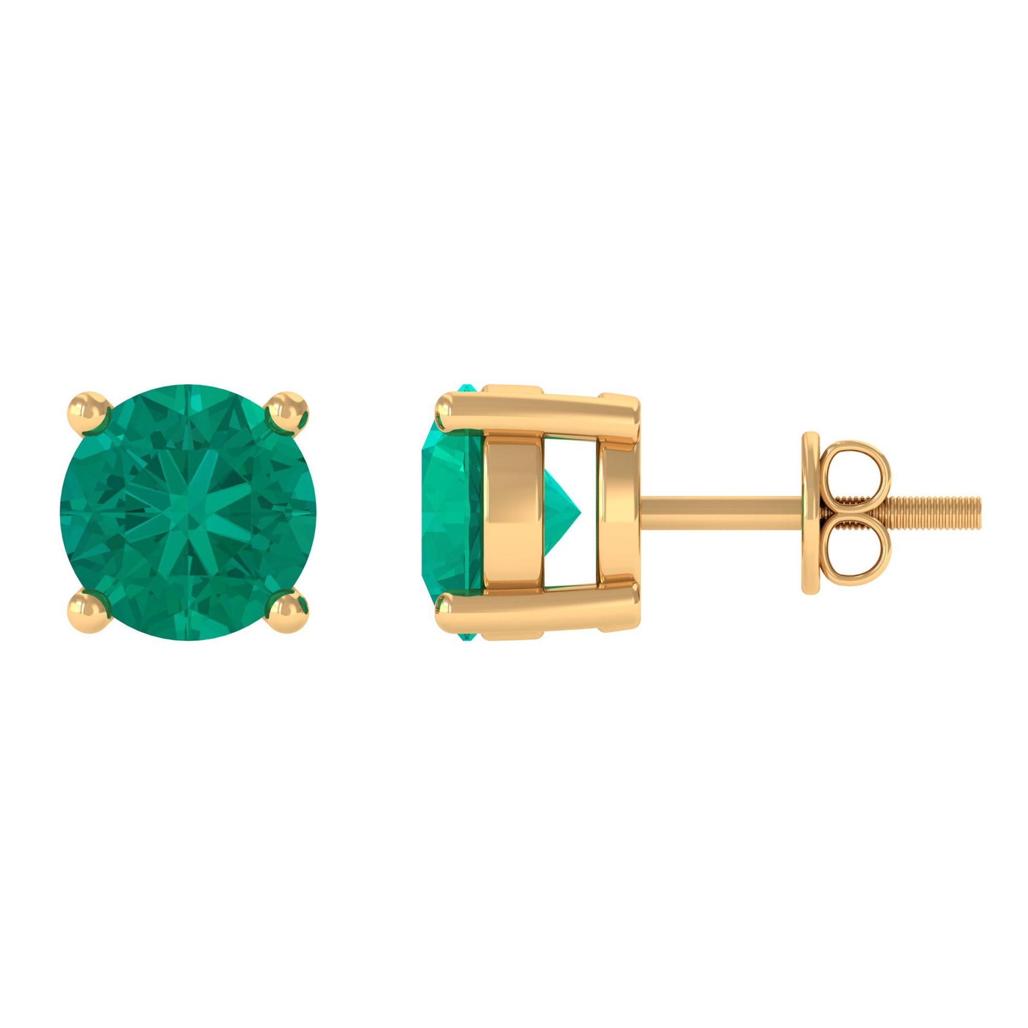 Round Cut 5 MM Real Emerald Stud Earrings