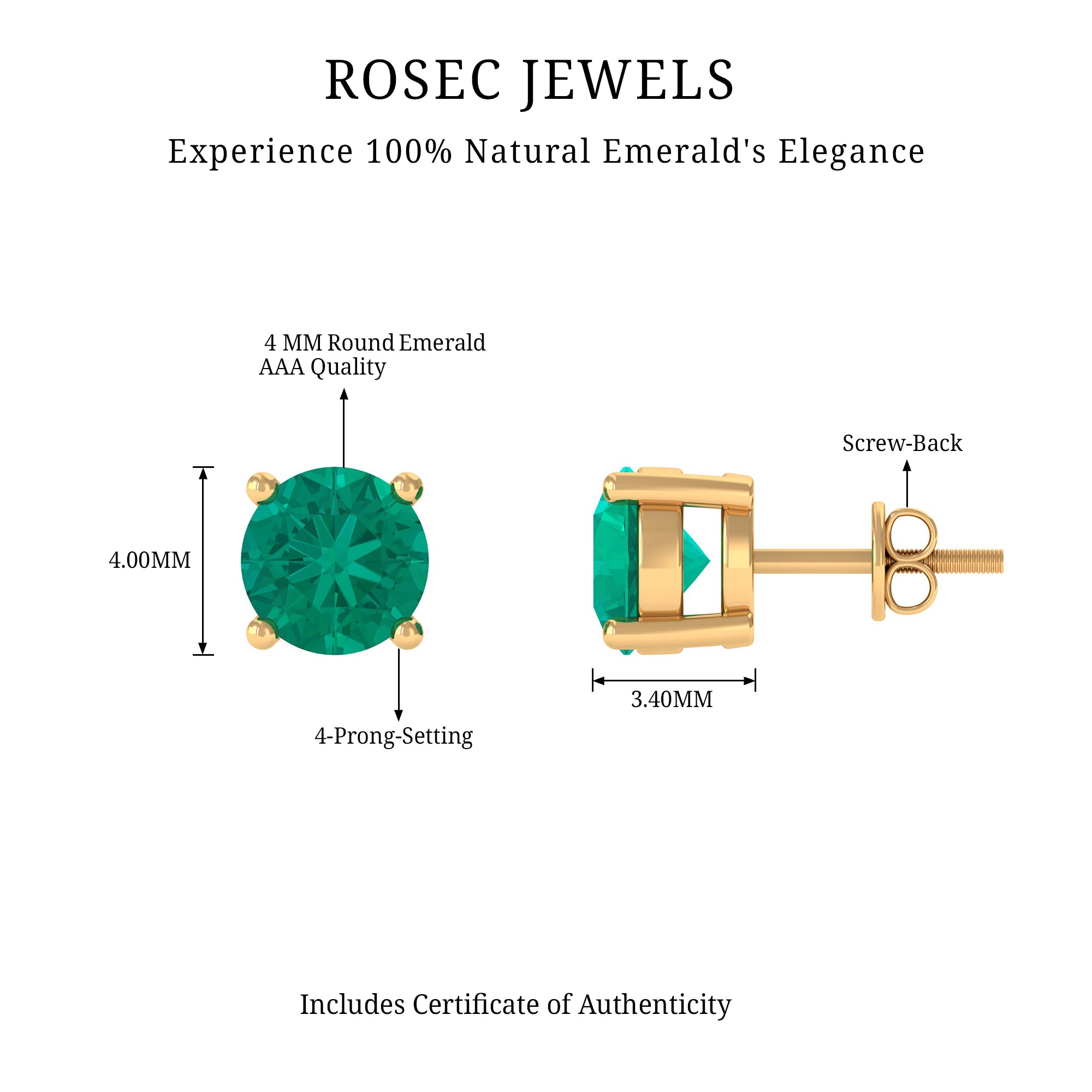 Experience the charm of aesthetic beauty with these Round Stud Earrings, which offer a luxurious touch that easily enhances any outfit. We have skillfully crafted these Solitaire Emerald Earrings, showcasing a perfect blend of elegance and luxury. Made with care in high quality metal, these Green Stud Earrings shine brilliantly with AAA quality stone and are perfect for your cartilage. With rich natural emeralds securely set in safe prong setting, each round stone measures 5 MM, ensuring they become your favorite accessory. Thanks to their classic round cut and secure screw backs, these Emerald Round Earrings are suitable for both everyday wear and special occasions. If you are looking for the ideal present for someone born in May, these are an excellent option as Birthstone Earrings, which represent growth, renewal, and new beginnings. Beautifully packaged, they represent a personal and meaningful gift for anyone wanting to express style and sentiment through jewelry.