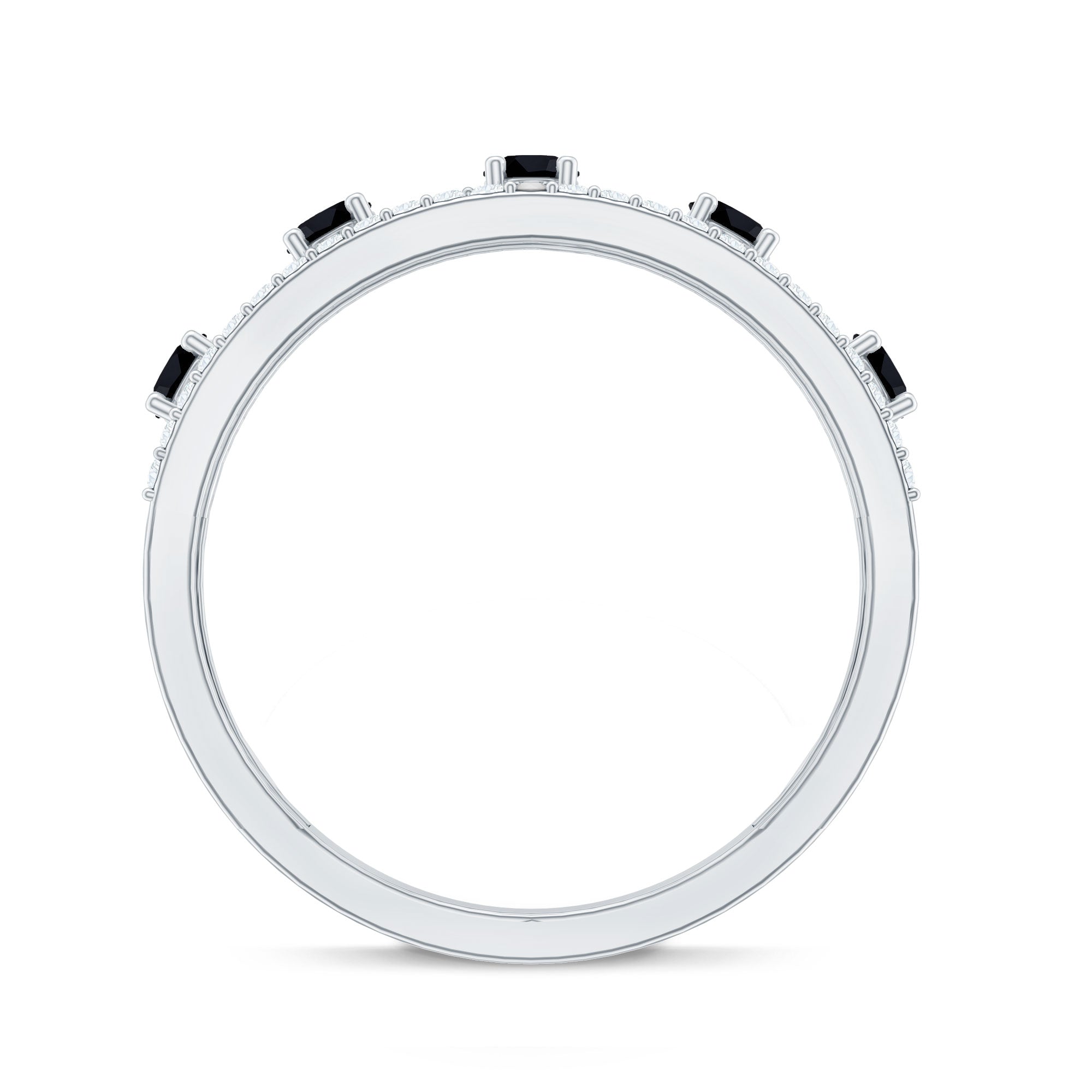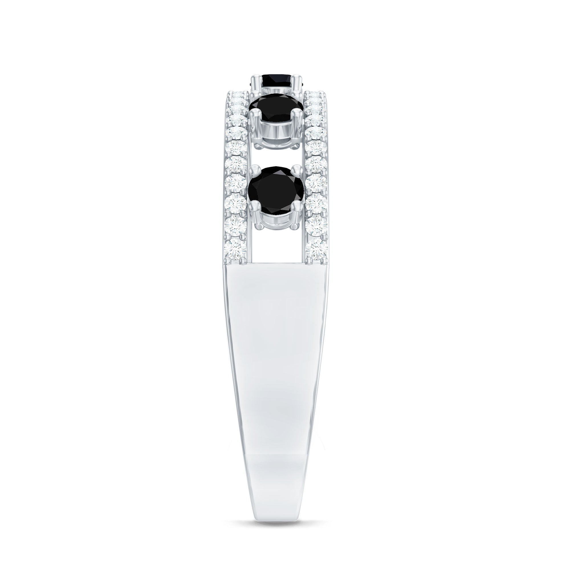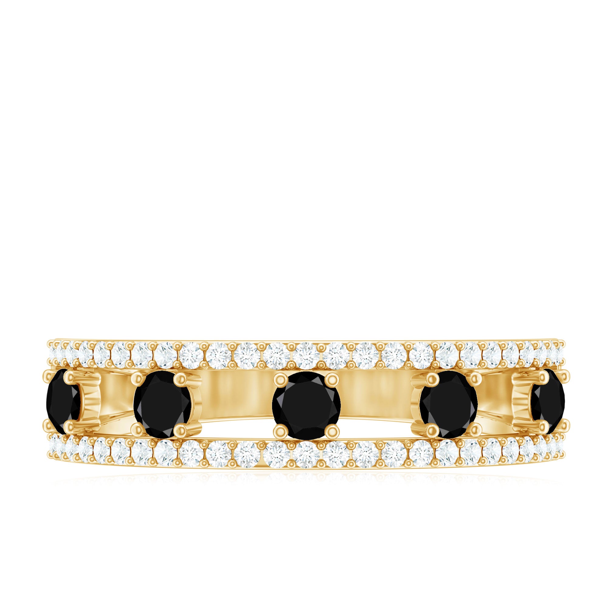 Round Cut Black Onyx and Diamond Half Eternity Band Ring