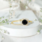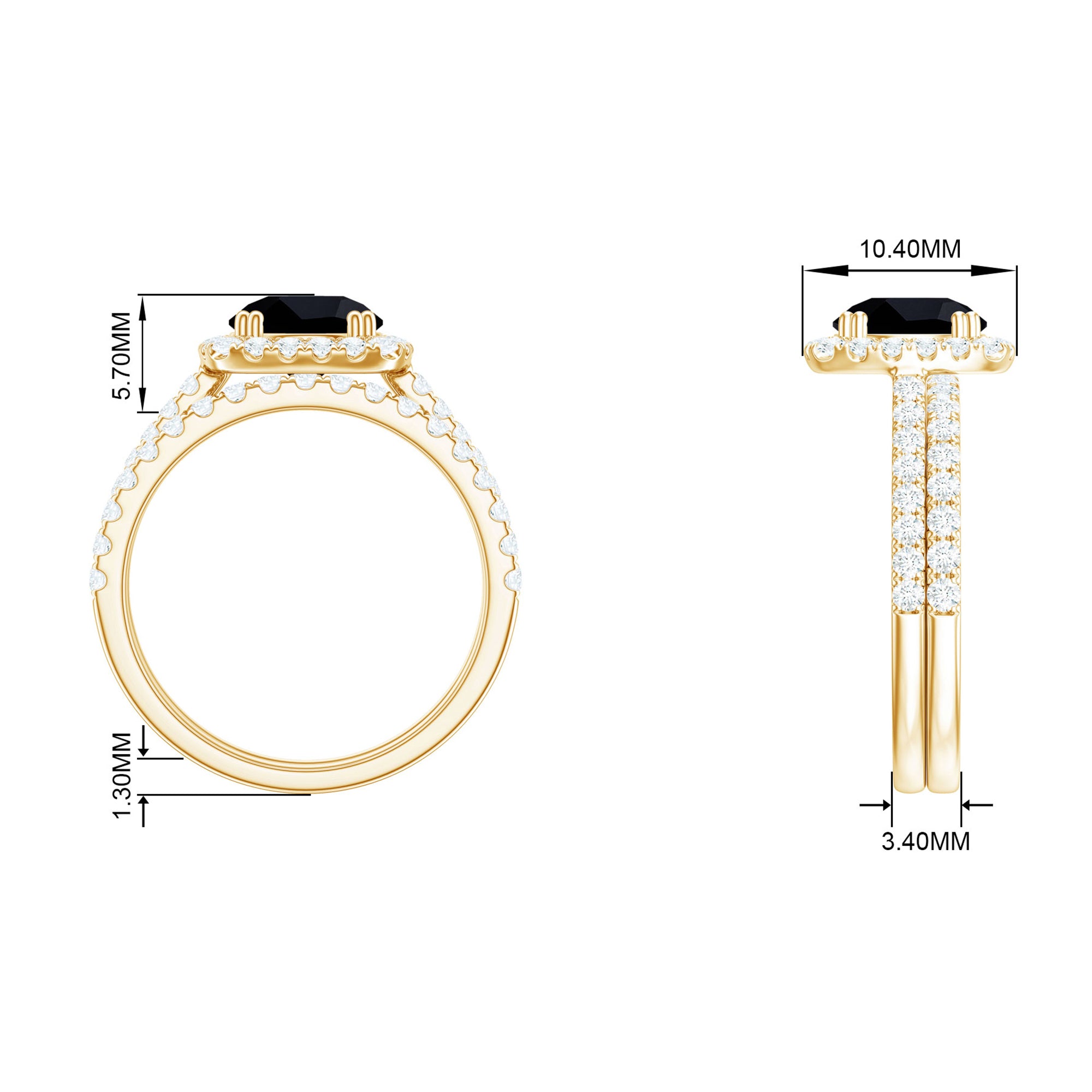 Round Cut Black Onyx Bridal Wedding Ring Set with Moissanite