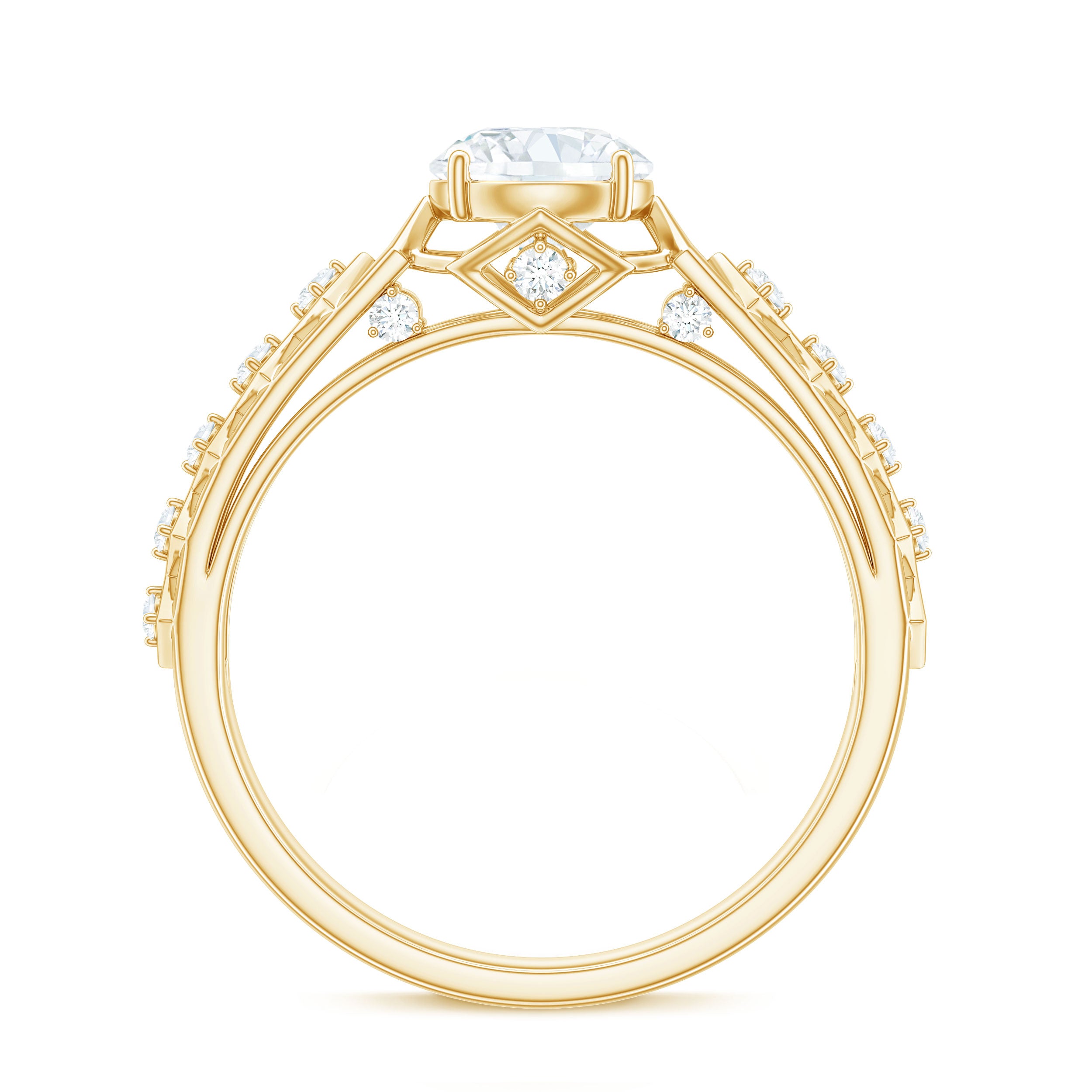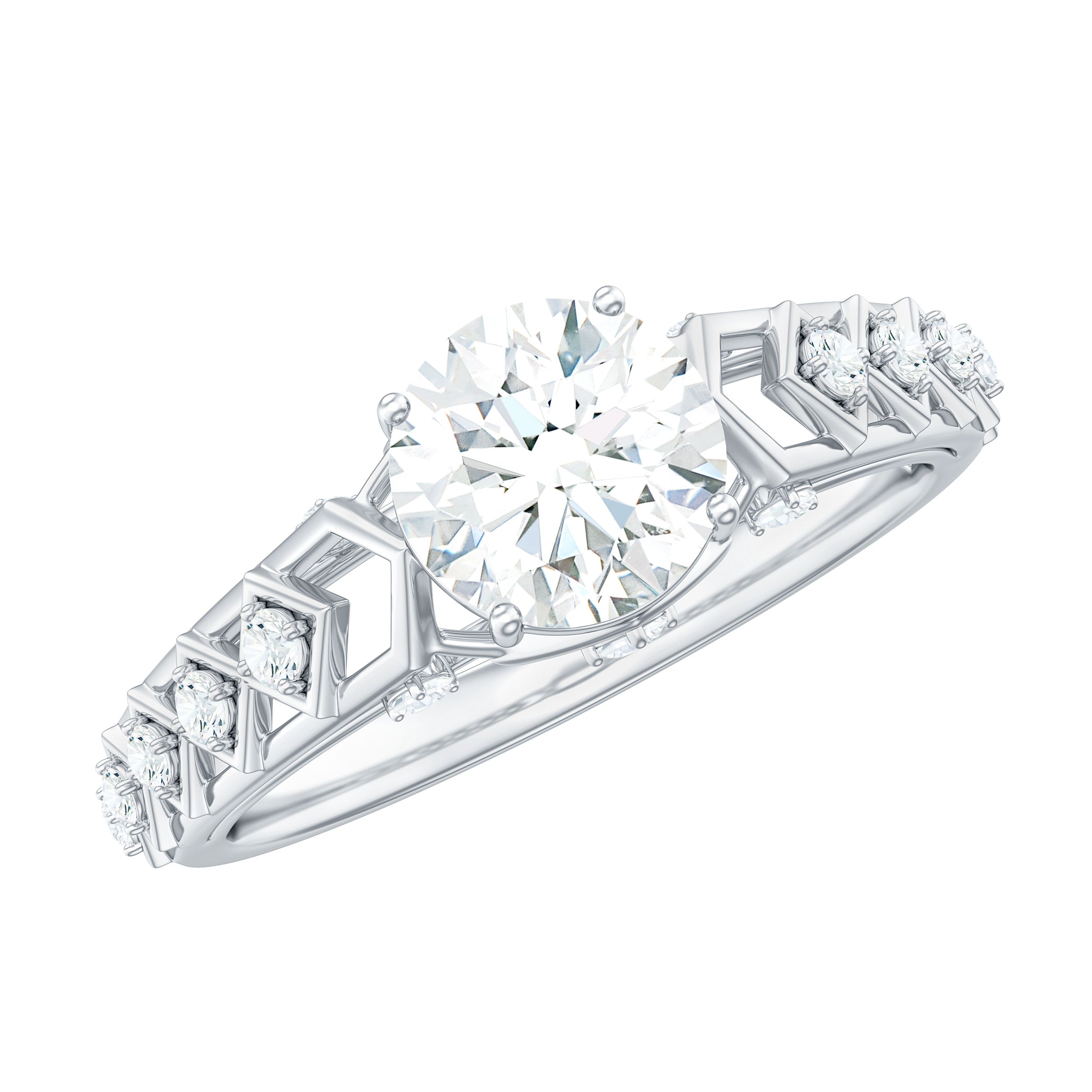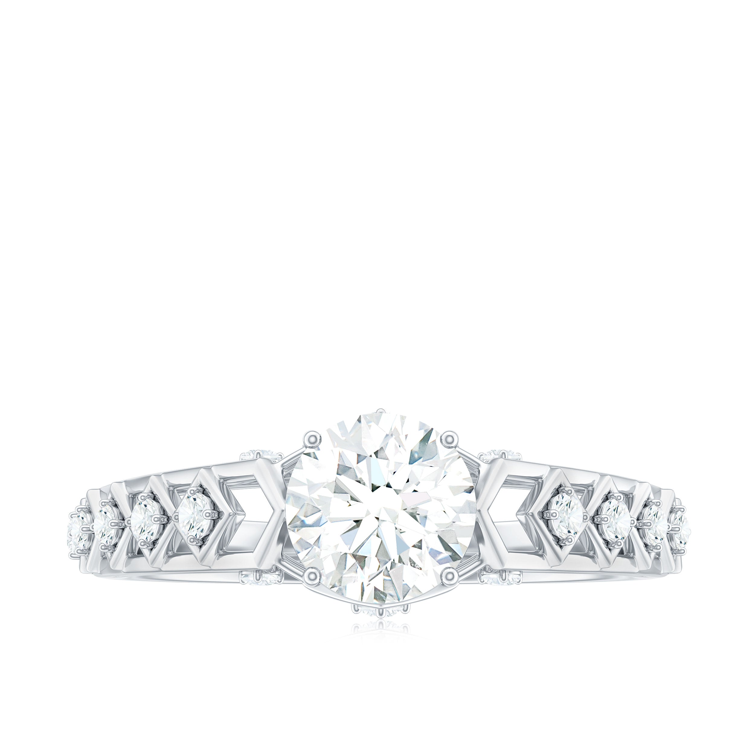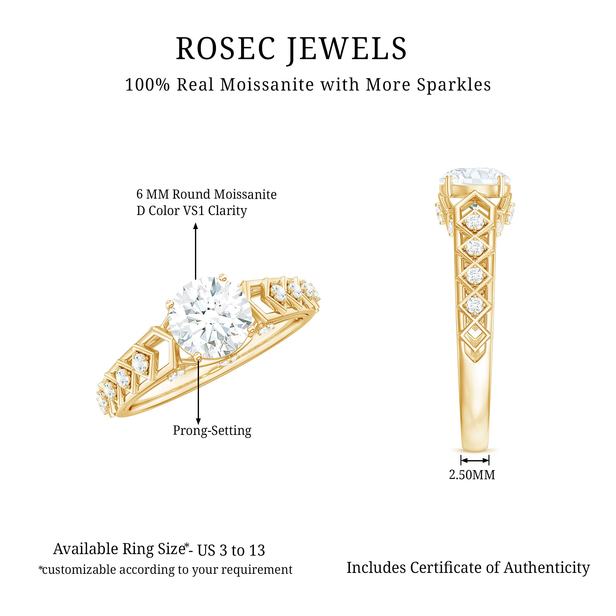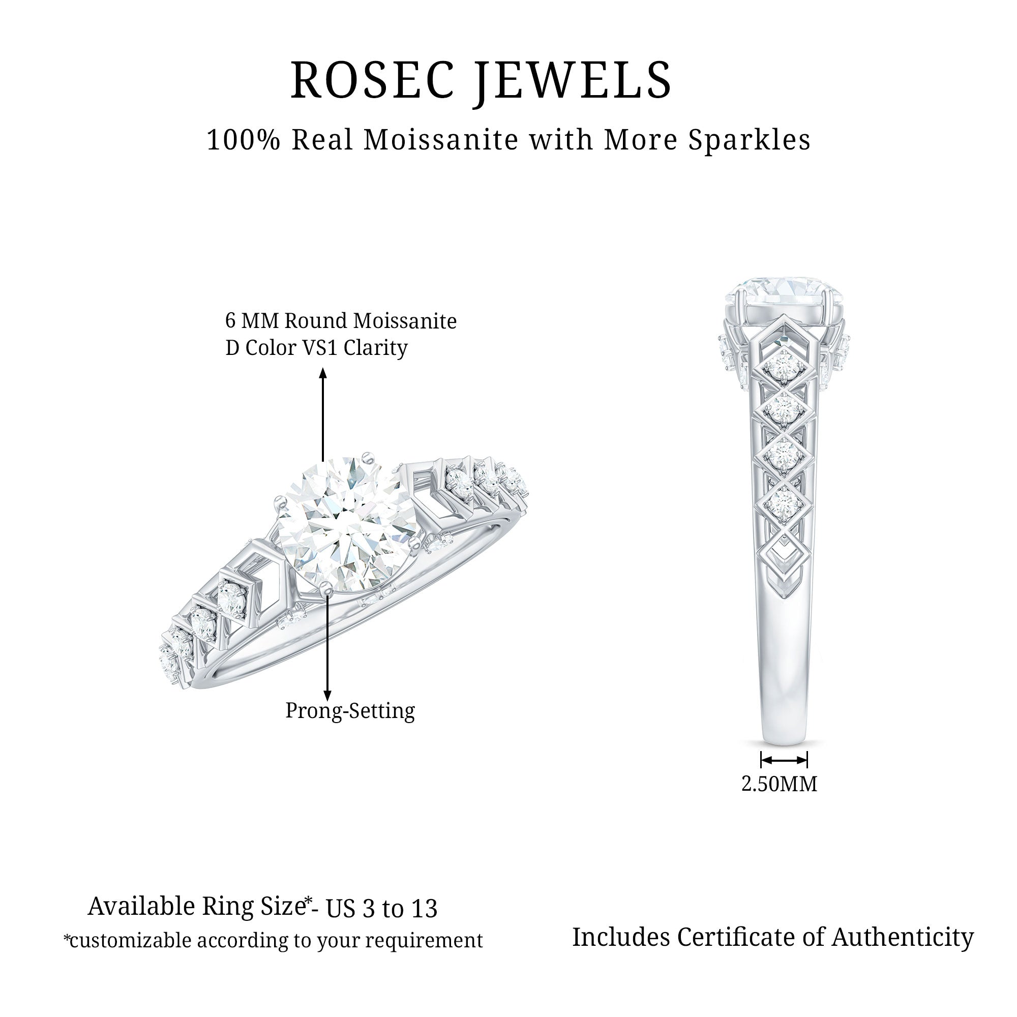 Round Cut Certified Moissanite Art Deco Engagement Ring