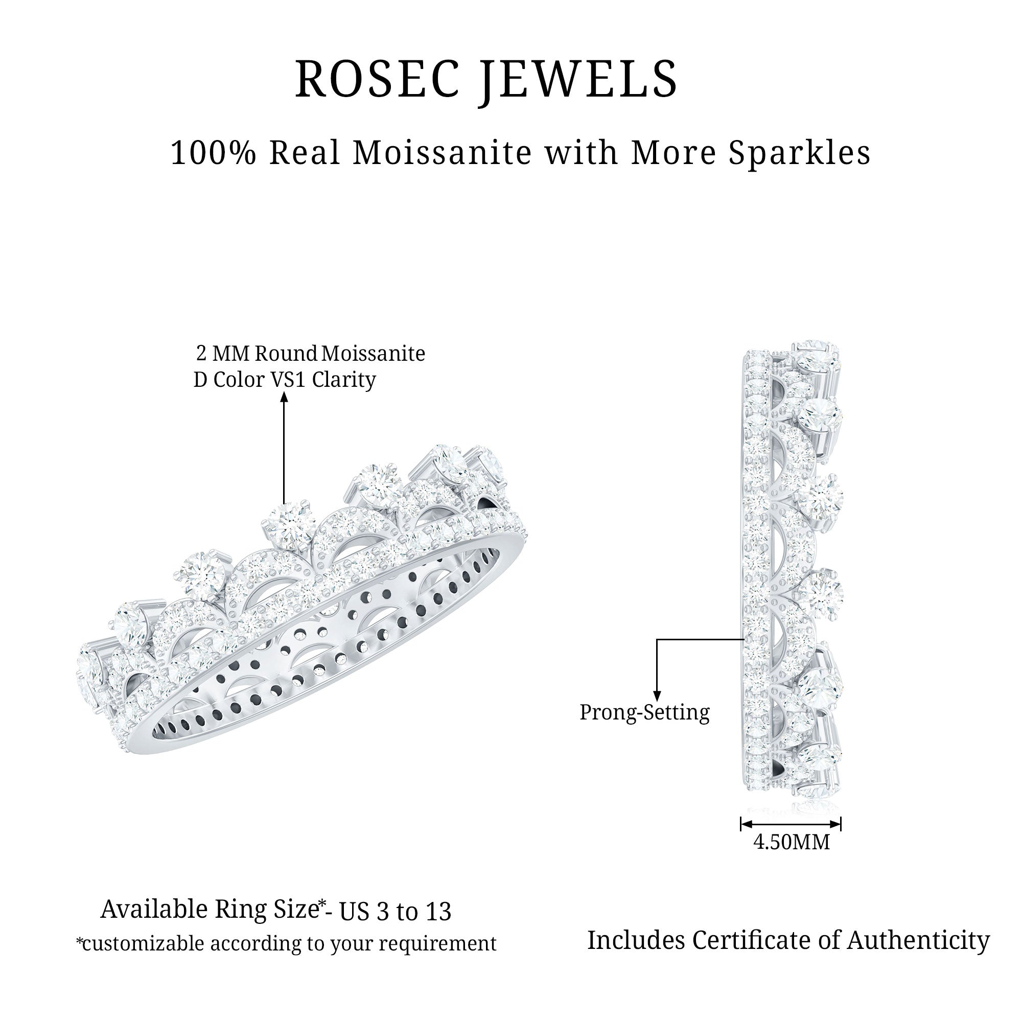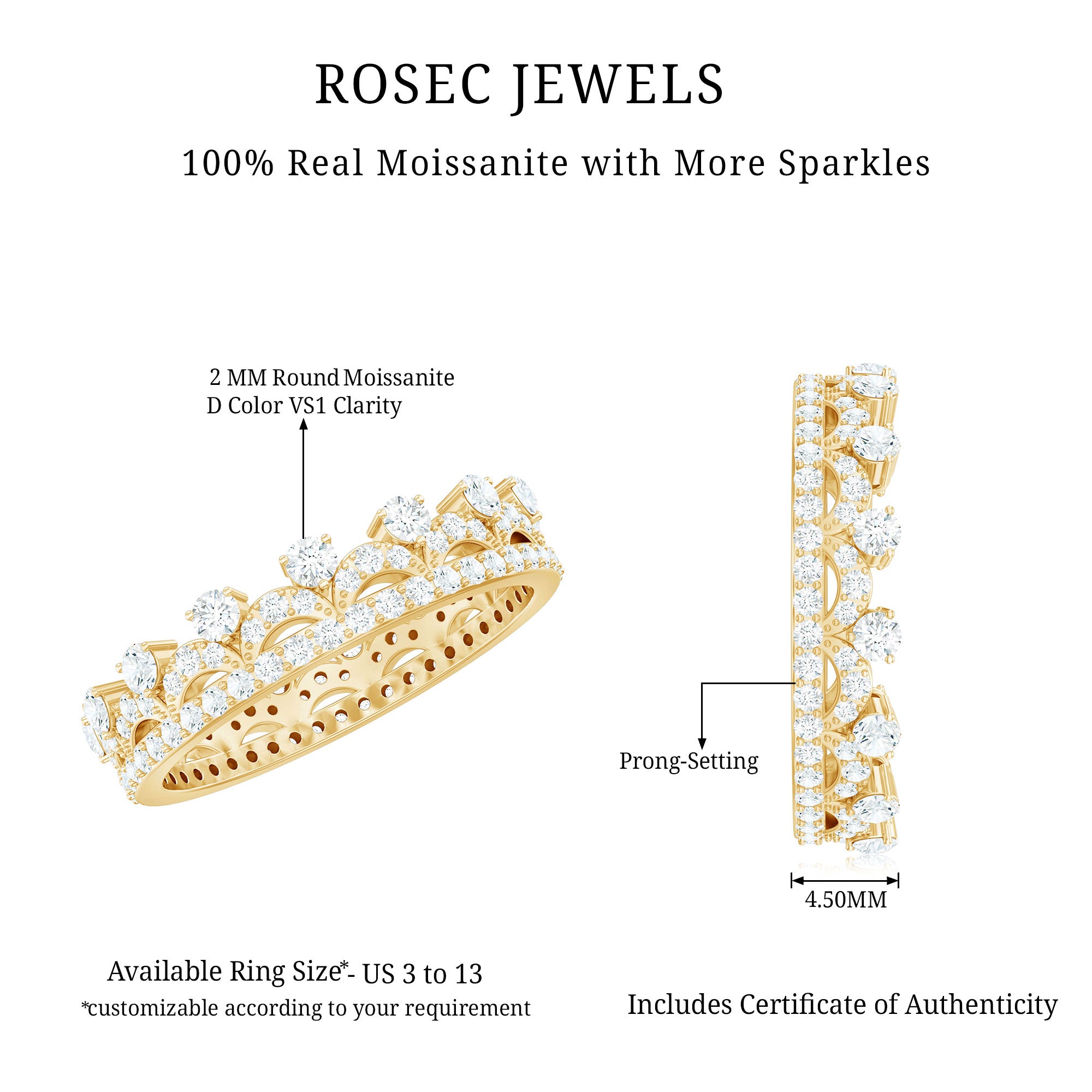 Round Cut Certified Moissanite Crown Wedding Band for Women