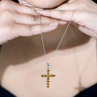 Some wear jewelry for beauty, others wear it for meaning, and this Citrine Pendant Necklace does both. Curated as a timeless symbol of faith, wrapped in the vibrant glow of Scorpio energy, this piece becomes more than an accessory - it is a personal emblem of strength, spirituality, and style. This Religious Pendant Necklace features 4 MM round cut citrine stones, the cherished November Birthstone known for its warm golden hue and energizing spirit. Each stone is held in prong setting and forms a cross symbol, which protects you from evil energies. The Cross Locket Necklace is attached to a sleek, high polish bail that seamlessly connects to a delicate yet sturdy cable chain. This entire piece is masterfully created in 14K white gold plated silver, adding a cool contrast that enhances the warmth of the citrines, making every detail pop with elegance and divine craftsmanship. Whether you are gifting this to a Scorpio soul sister, honoring a milestone, or celebrating a baptism, or Thanksgiving, this Christian Cross Necklace becomes a thoughtful expression of light, life, and love. It is more than a necklace, it is a prayer you can wear or a November stone you can hold close.