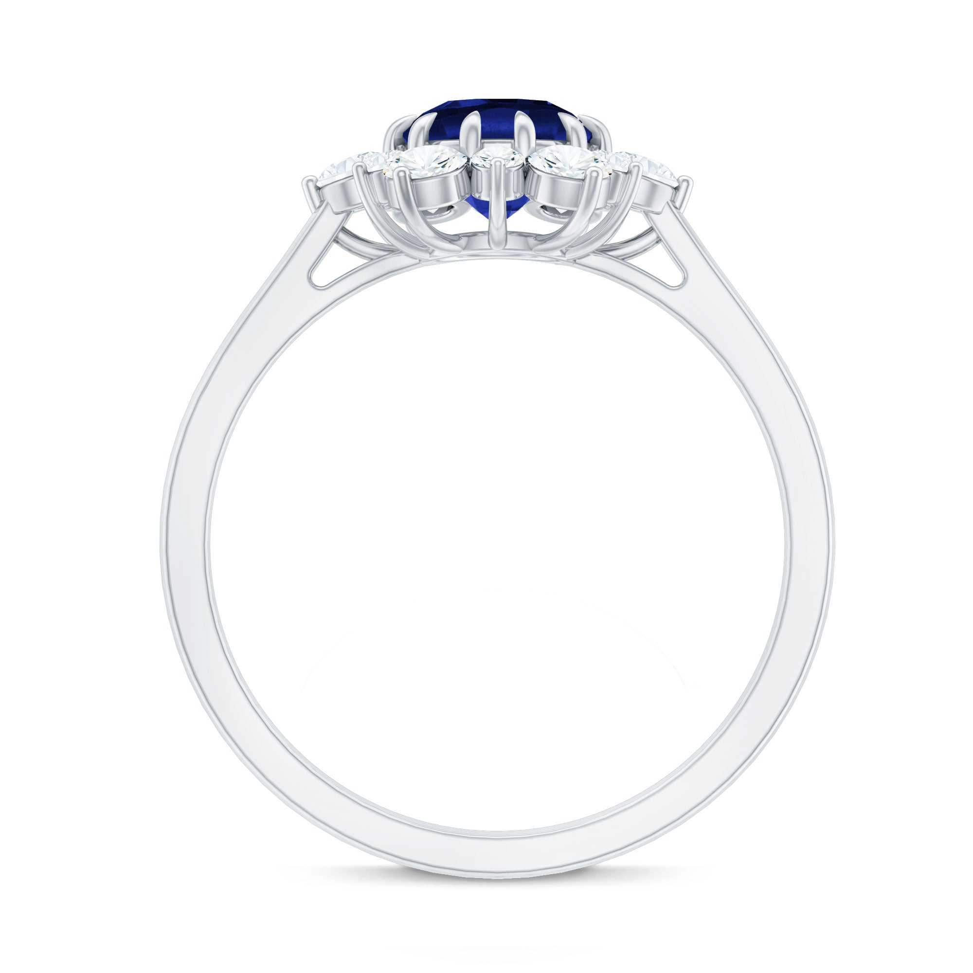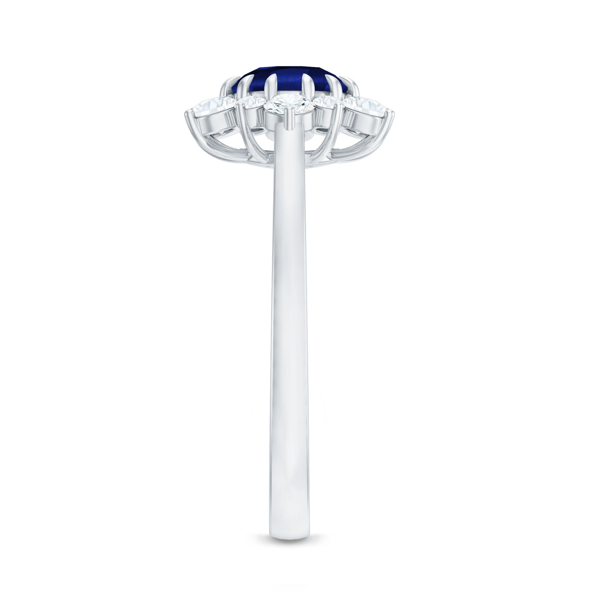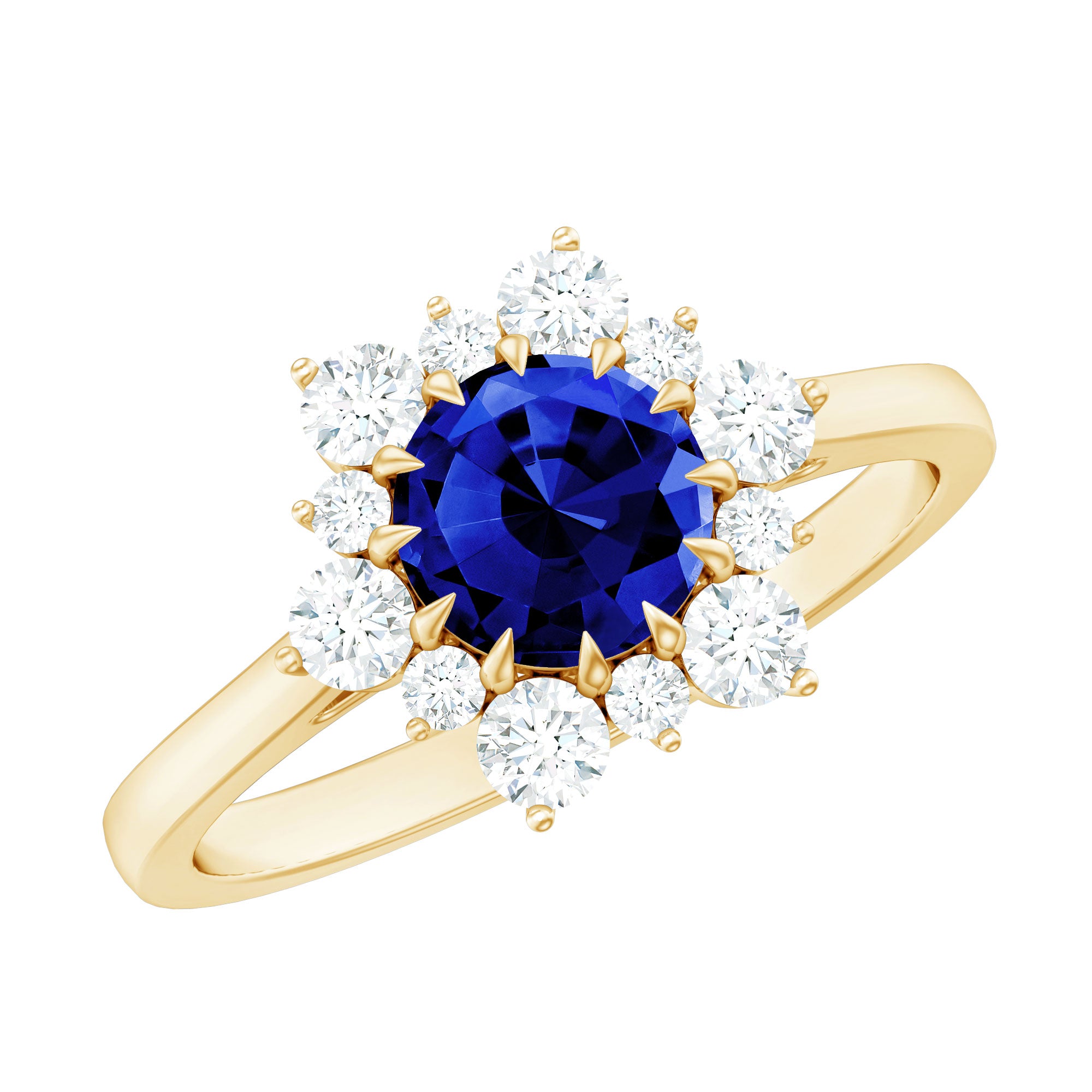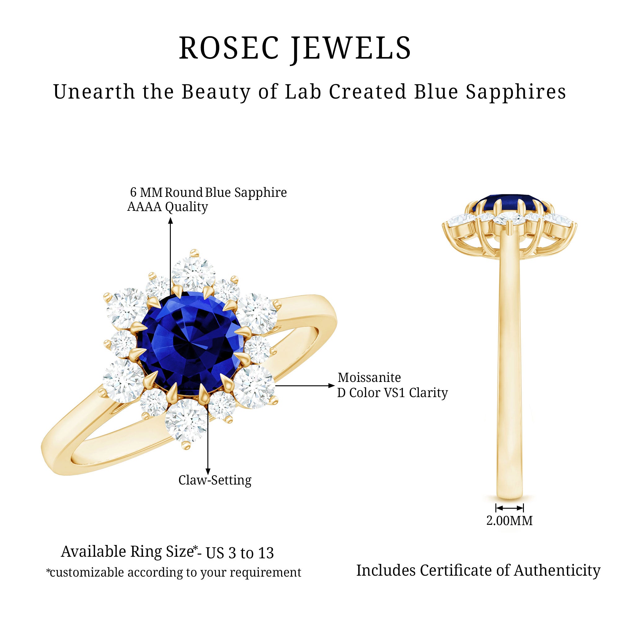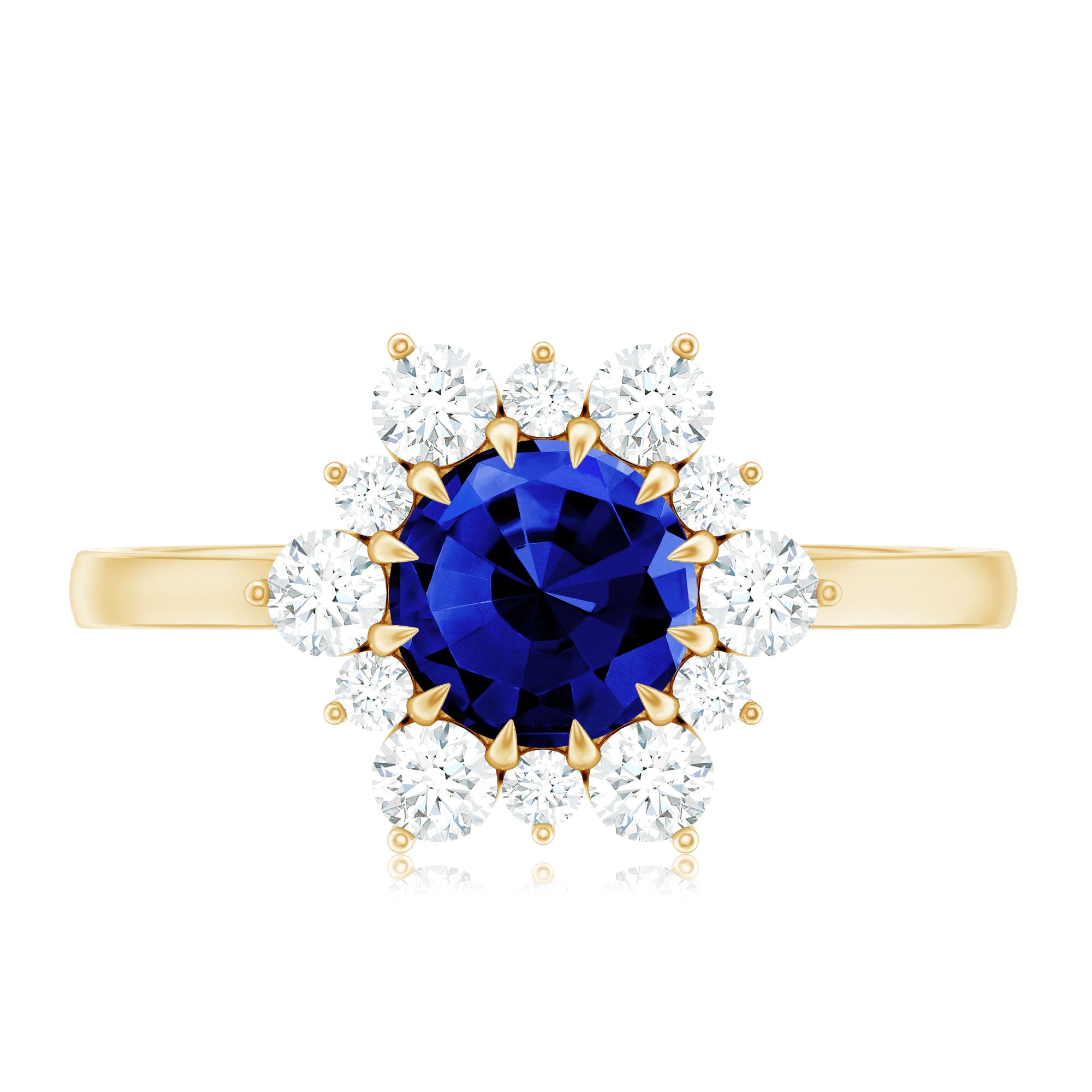 Round Cut Created Blue Sapphire Classic Halo Engagement Ring with Moissanite