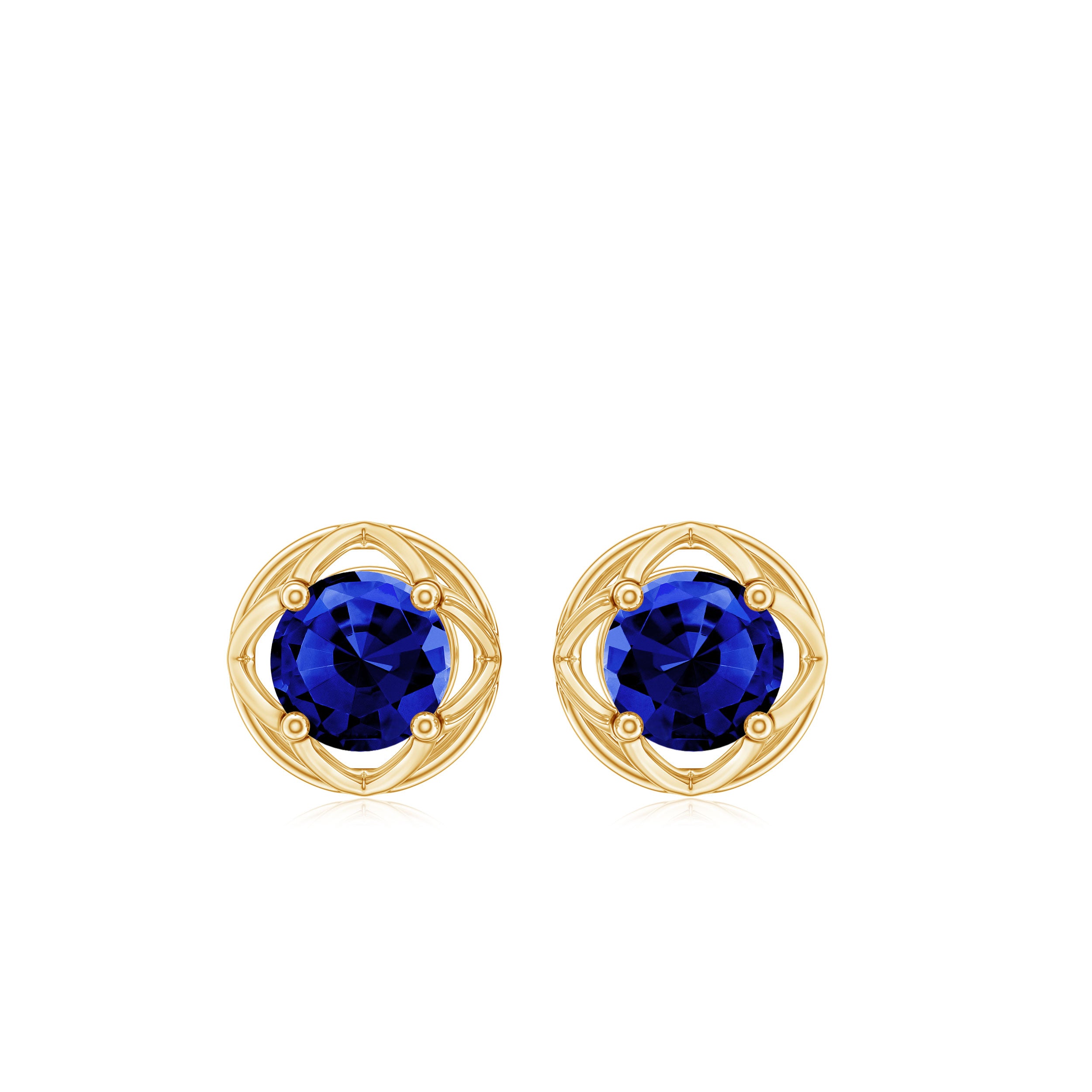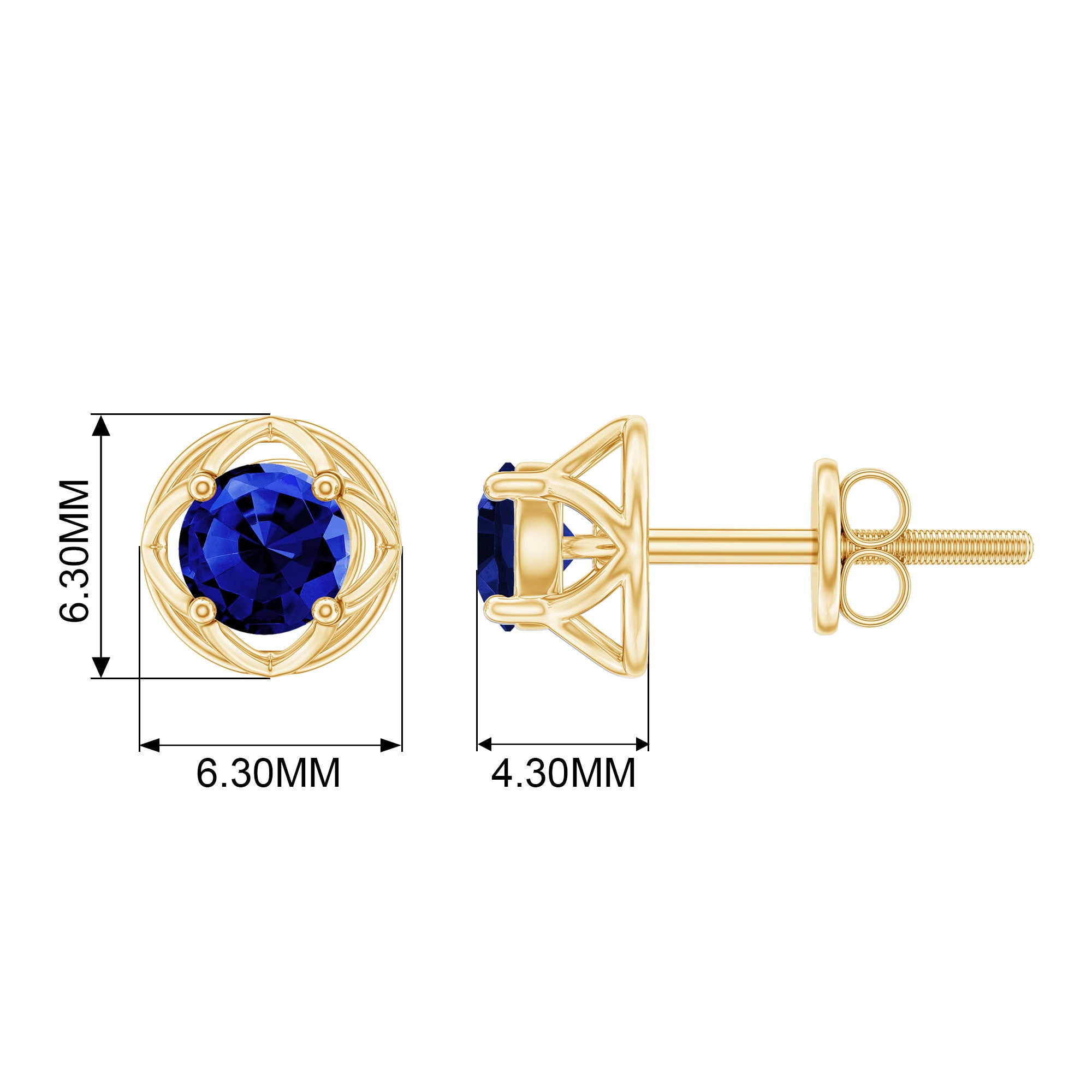 Introducing an alluring jewelry piece, perfect for your loved one. These stud earrings feature a screw back finding and are adorned with a Round Cut Created Blue Sapphire delicately set as the center stone in a prong setting. Give the gift of elegance and beauty with these captivating earrings, sure to bring joy and admiration to the recipient.