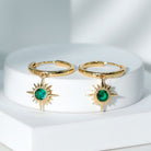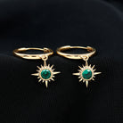 Round Cut Created Emerald Sunburst Hoop Drop Earrings