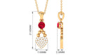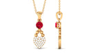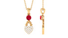 Radiating love and elegance, this dazzling heart pendant is a testament to timeless beauty. It boasts a captivating round-cut Created Ruby at its center, embraced by a heart shape adorned with round-cut diamonds. The intricate design adds a touch of glamour and charm to any attire, making it an ideal gift for a cherished one or a precious addition to your jewelry collection.