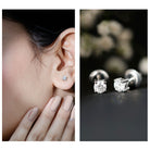Round Cut Cubic Zirconia Solitaire Stud Earrings with Screw Back
