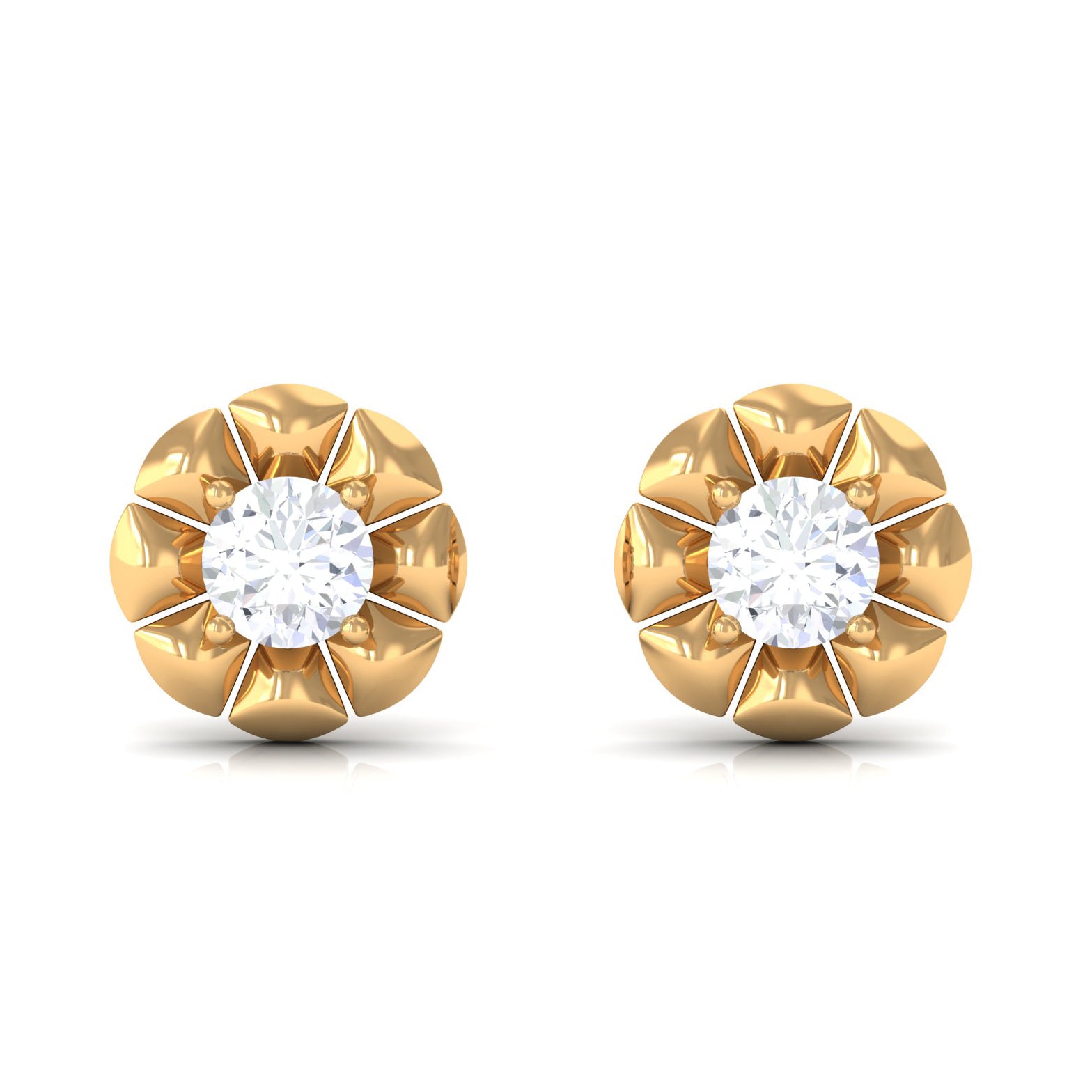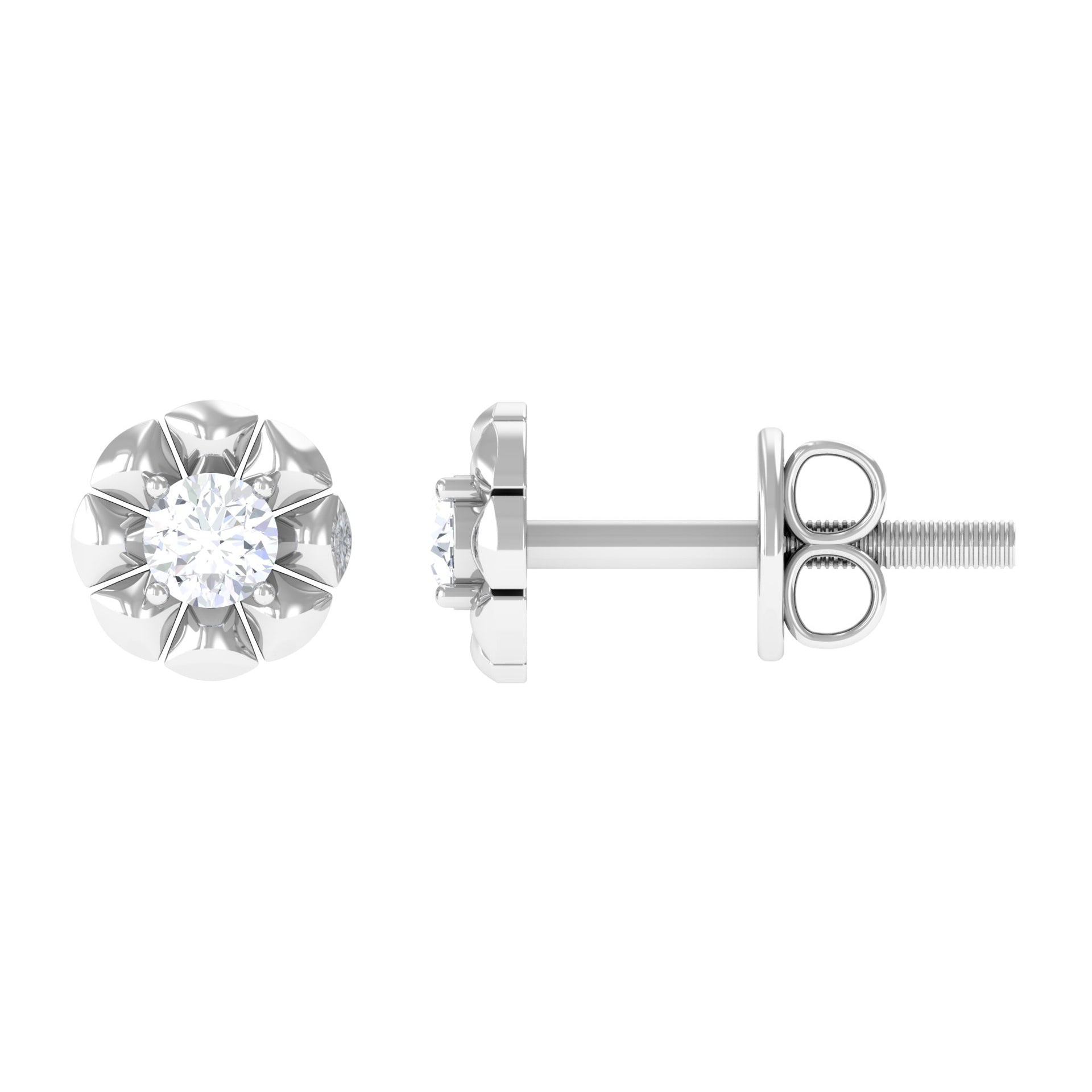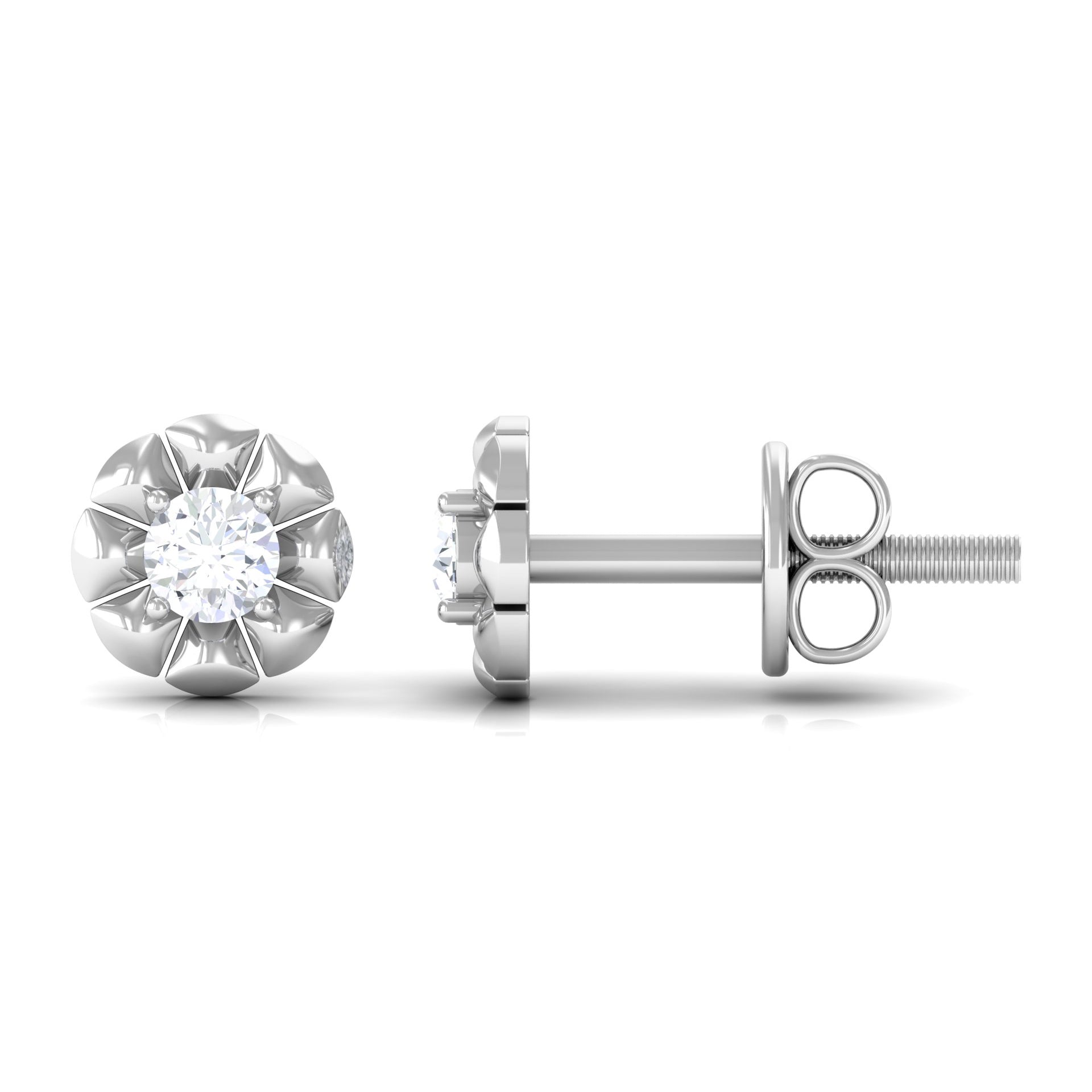 Round Diamond Floral Stud Earrings in Prong Setting