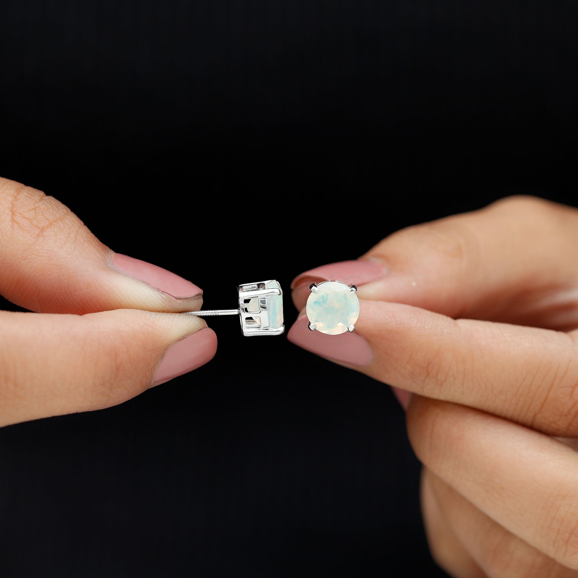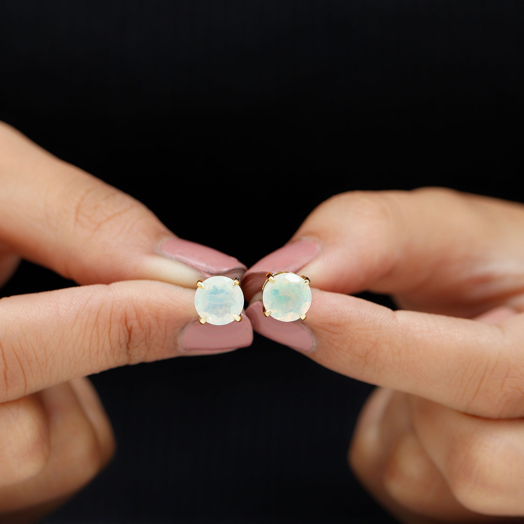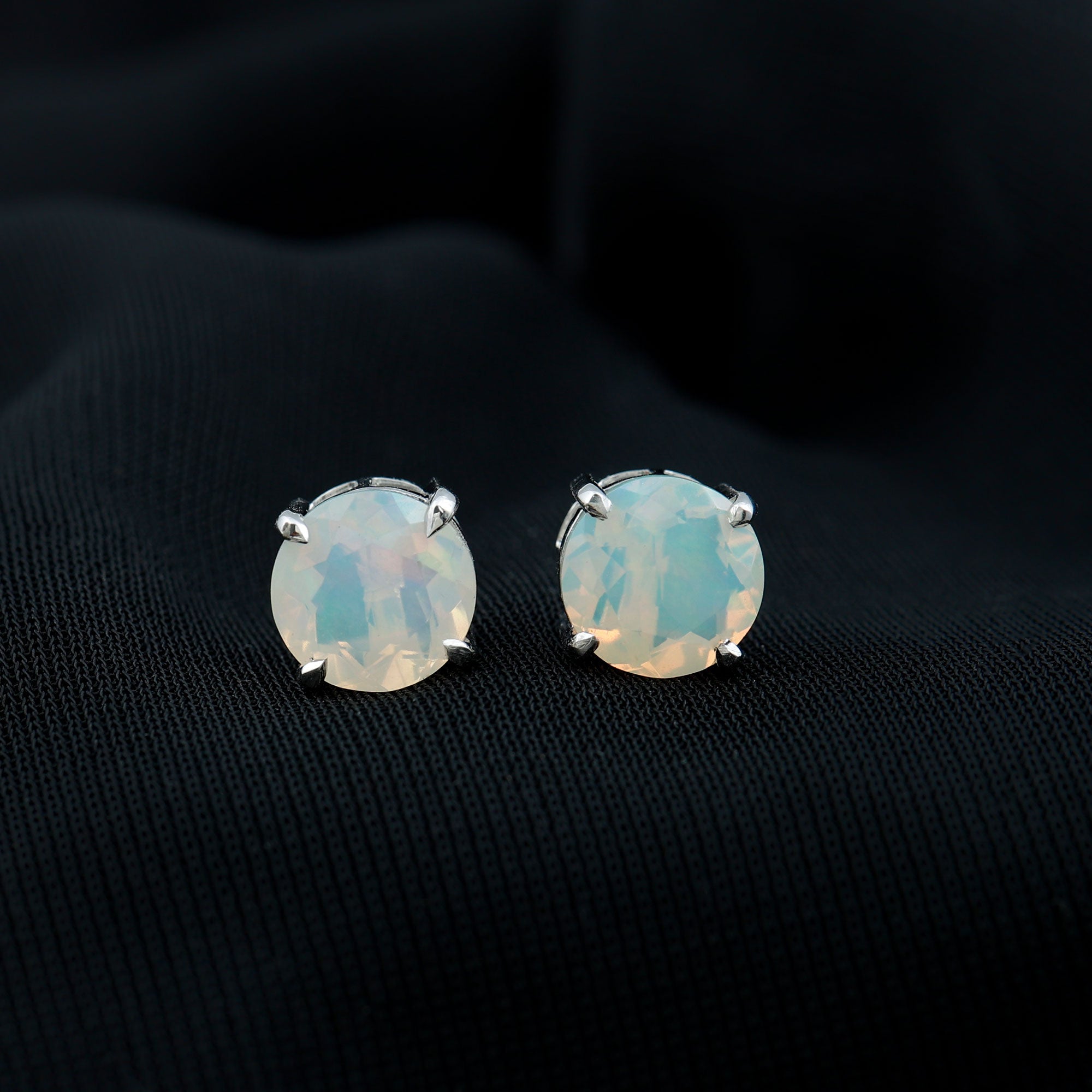 Round Cut Ethiopian Opal Solitaire Stud Earrings for Women