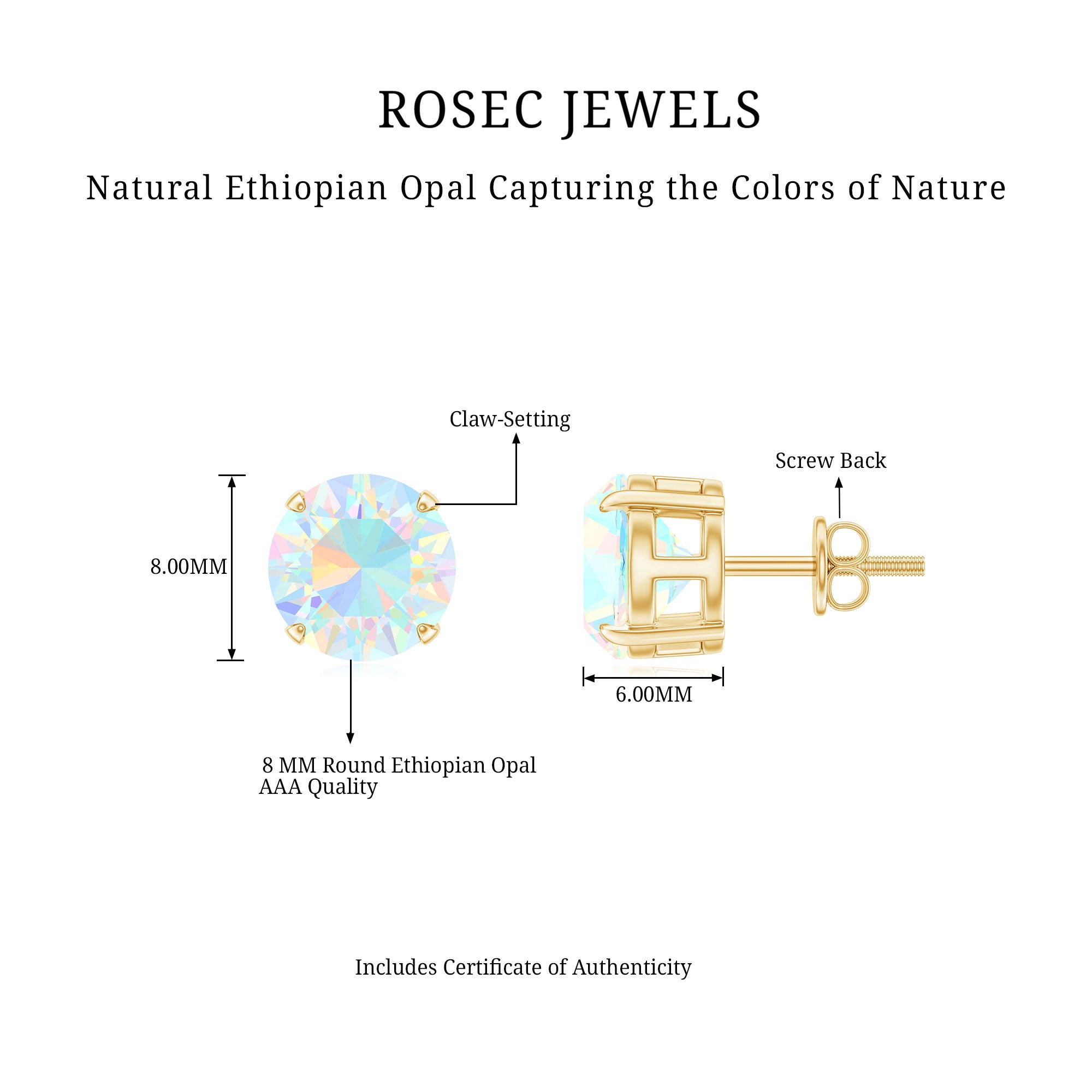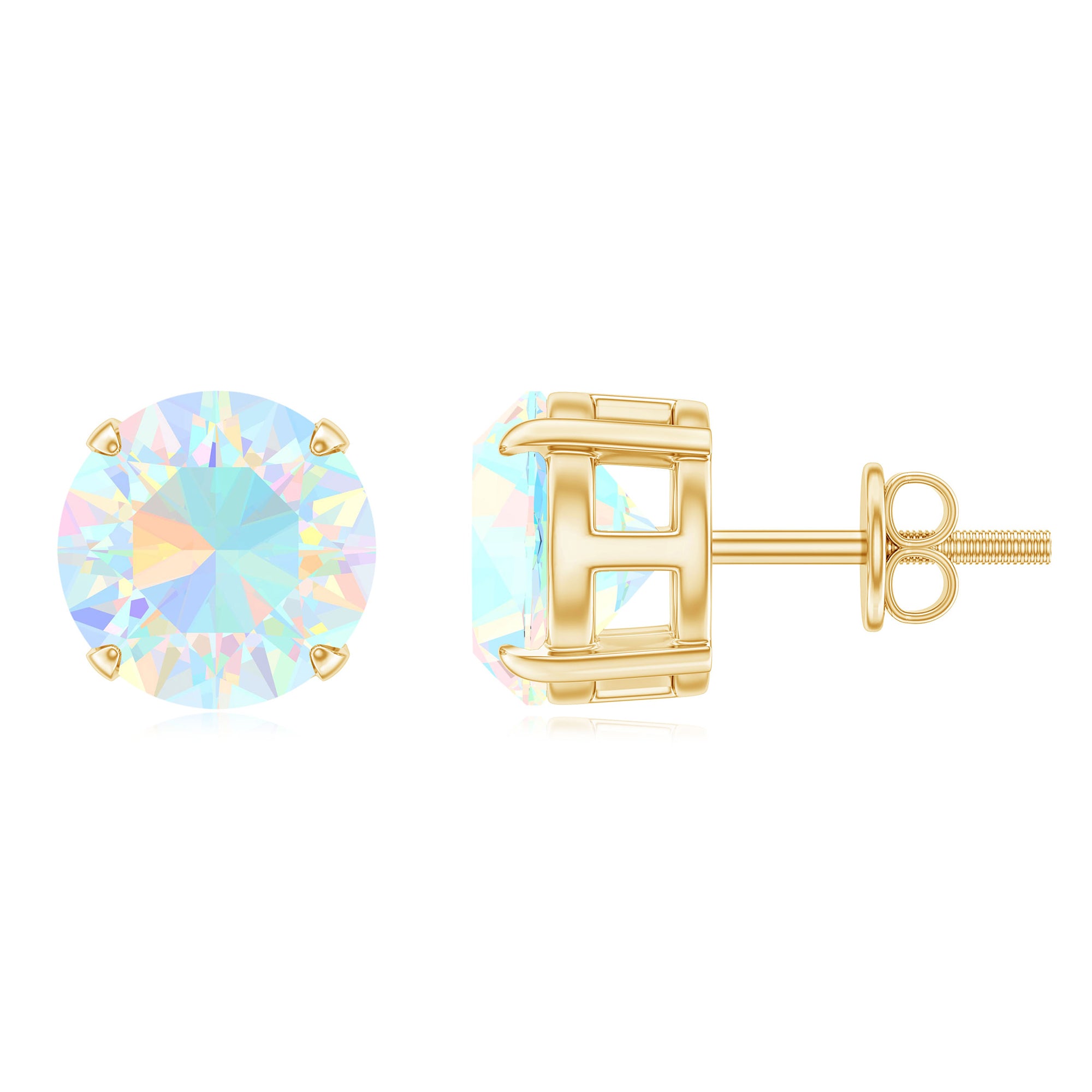 Upgrade your fashion style with this beautiful Stud Earrings embellished with Round Shape Ethiopian Opal Solitaire set in 4 Prong Setting. This pair of screw back closure Solitaire Stud Earring is composed in Solid Gold for a charming appearance.