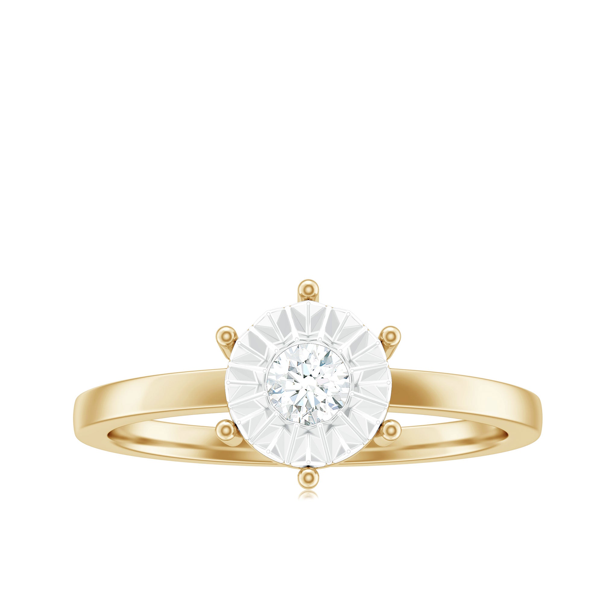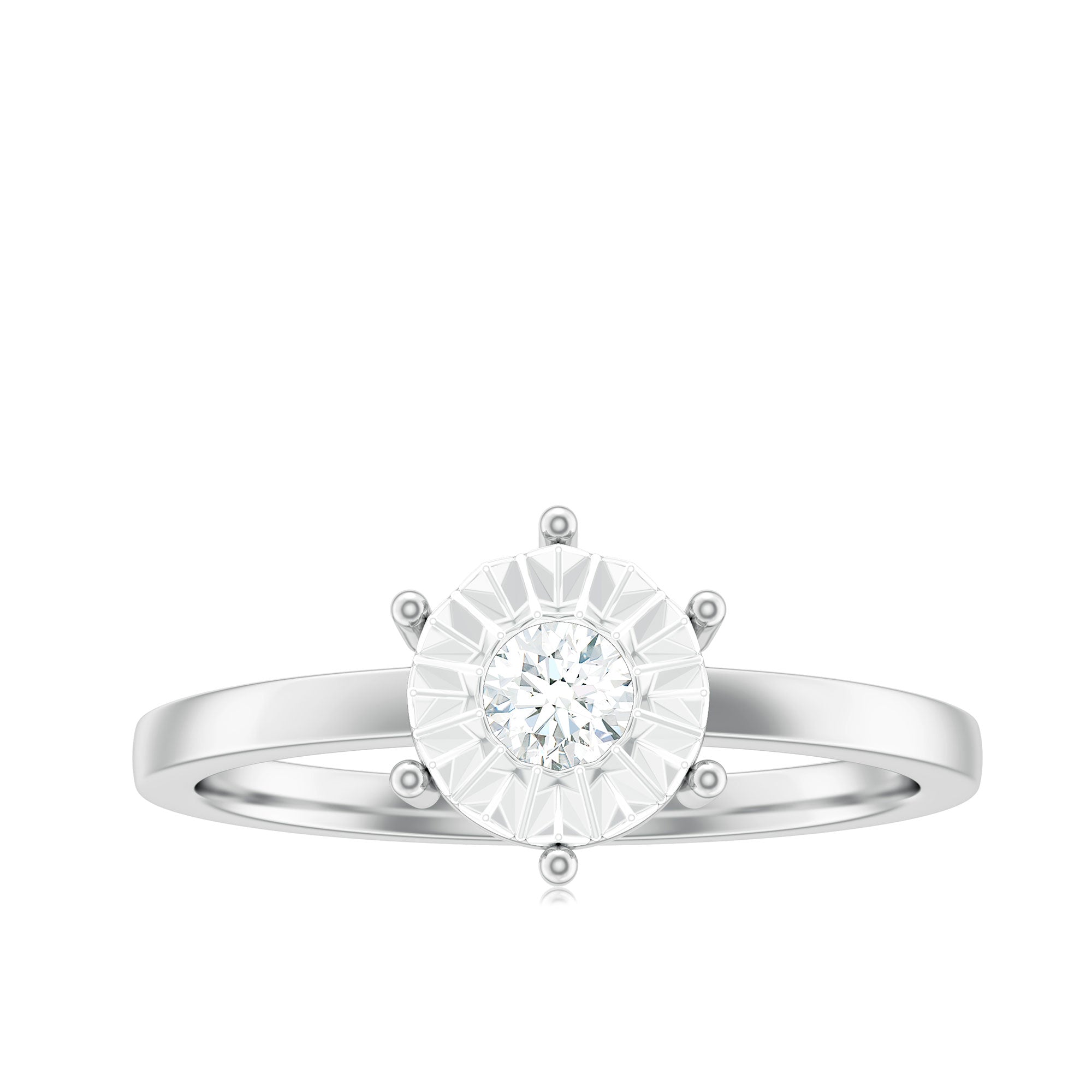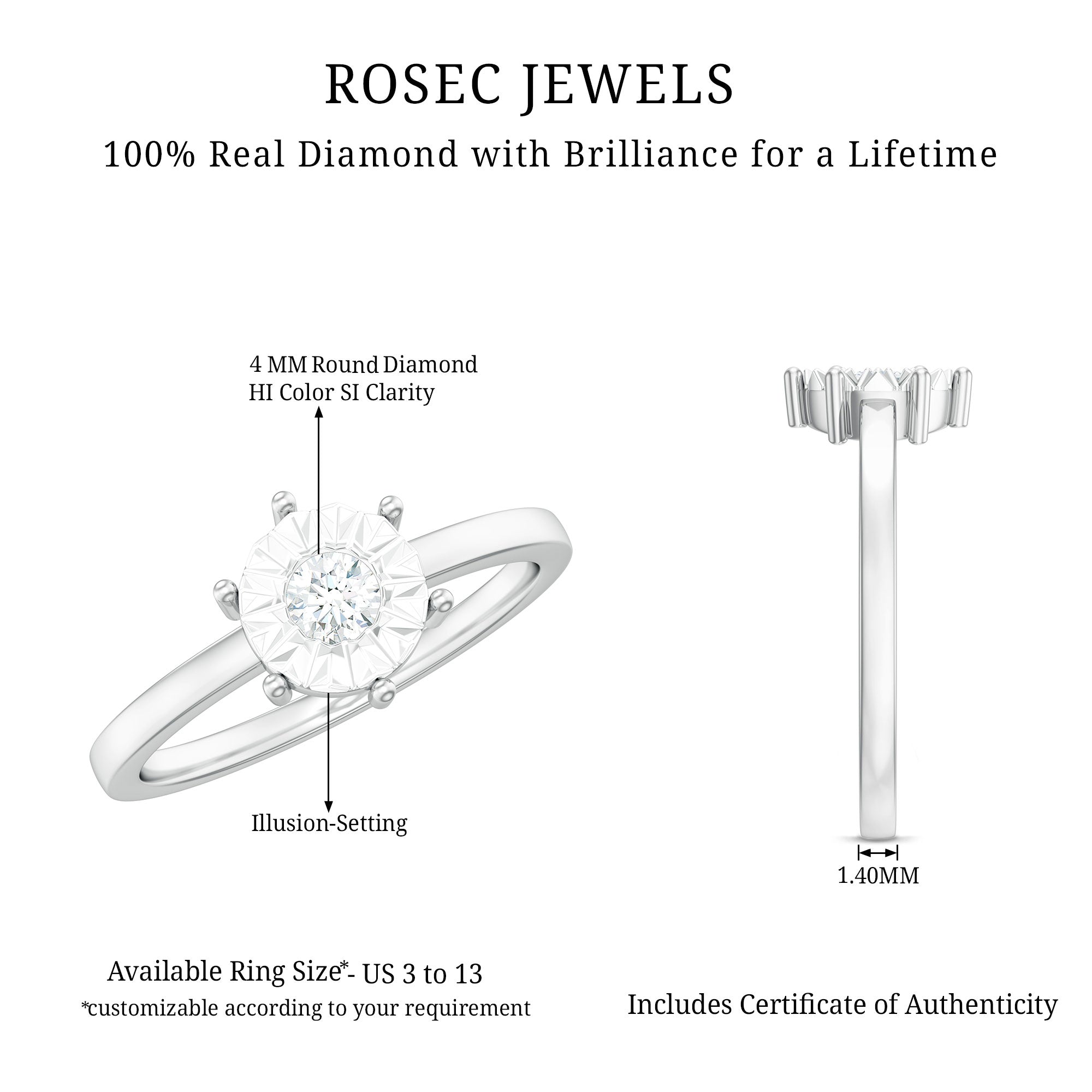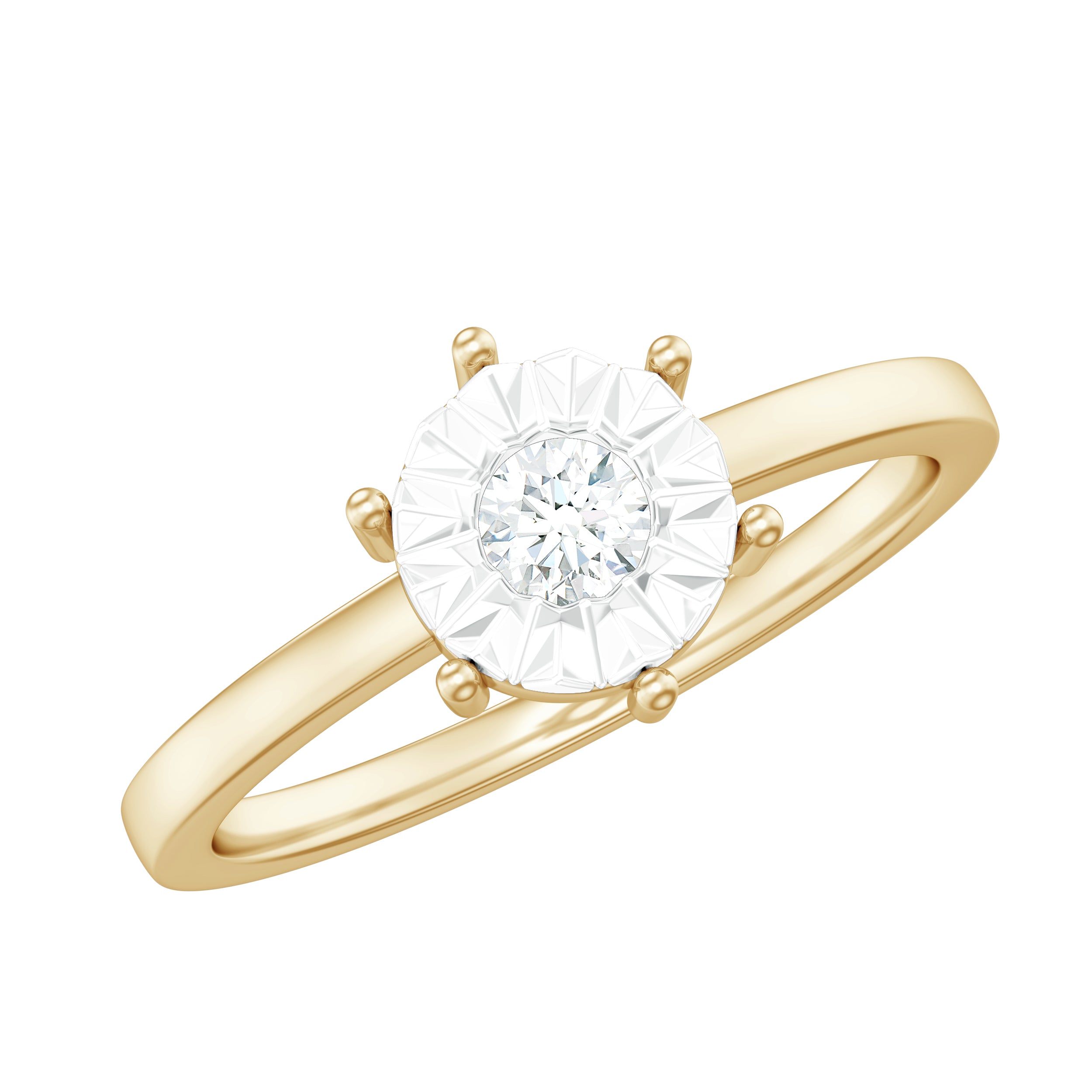 Round Cut Genuine Diamond Solitaire Ring in Illusion Setting