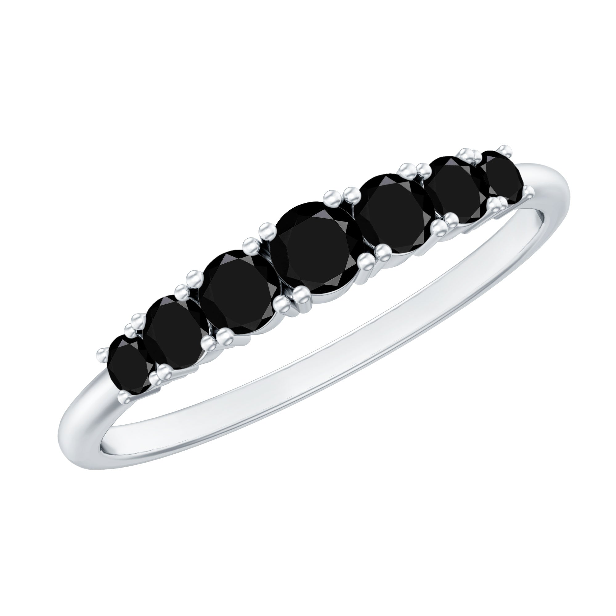 Round Cut Graduated Black Onyx Half Eternity Ring