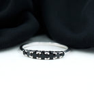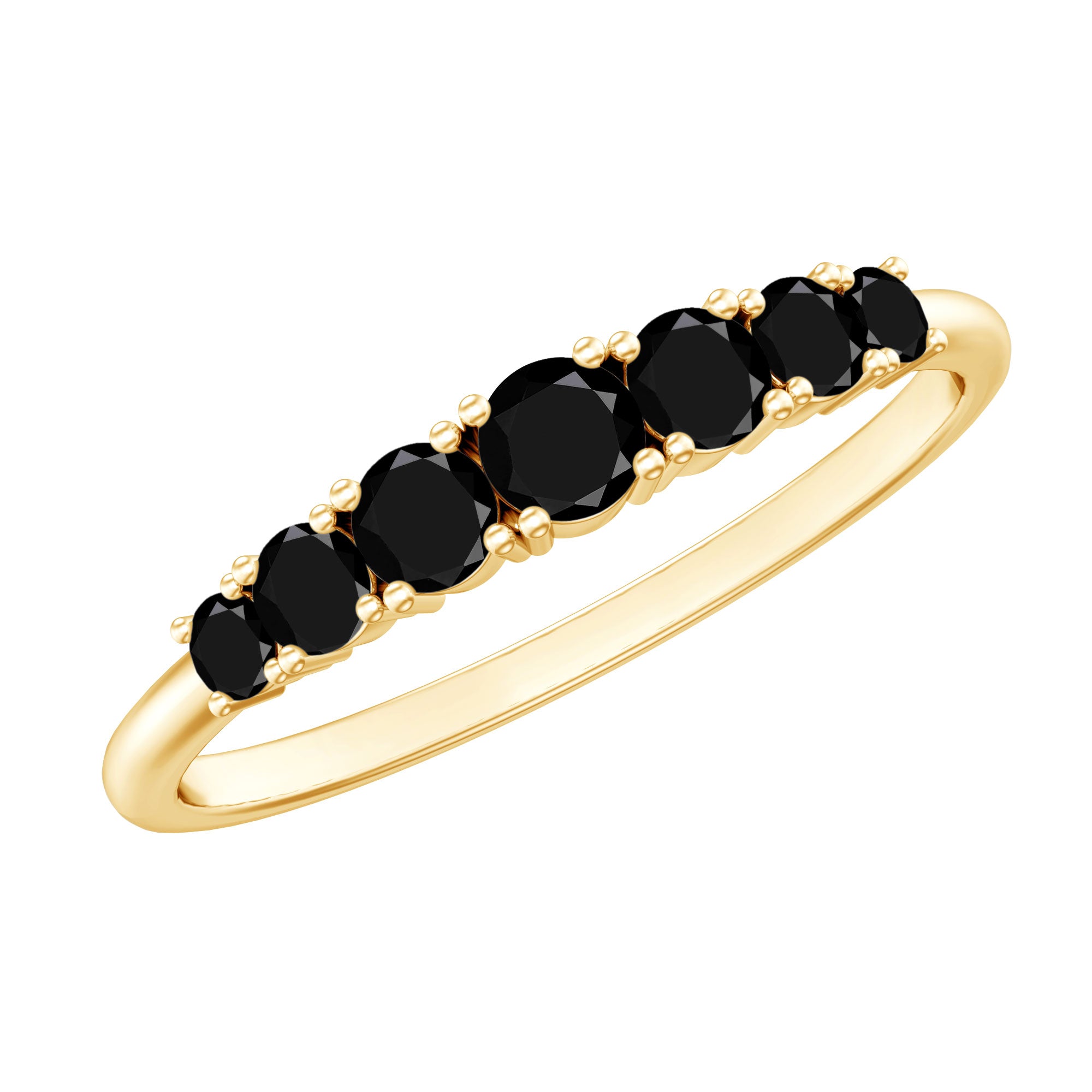 Like a gentle wave, the stones in this Black Onyx Eternity Ring rise and fall in perfect balance. Featuring seven round black onyx gemstones arranged in a gentle graduated pattern, the Half Eternity Ring is designed to draw attention without being overwhelming. The center stone is slightly larger, while the side stones smoothly decrease in size, creating a curve that fits beautifully on the finger. Each stone is carefully placed in secure prong setting, letting the rich tone of the black onyx shine through while offering a comfortable and durable fit. The design flows with ease, making this Black Onyx Wedding Band ideal for everyday wear or meaningful occasions. Black onyx, admired for its deep color and symbolic strength, adds purpose to the piece. It is known to support calm, protection, and balance, qualities that make it more than just a piece of jewelry. As the birthstone for December and a special gem for Leo signs, it holds extra meaning for many wearers. Whether given as a gift or chosen for yourself, this 7 Stone Anniversary Band offers simplicity with depth. It looks lovely worn alone or stacked with other favorites, and it suits any style, from bold to minimal. Carefully crafted with AAA quality stones, this ring brings a subtle elegance to your jewelry collection.