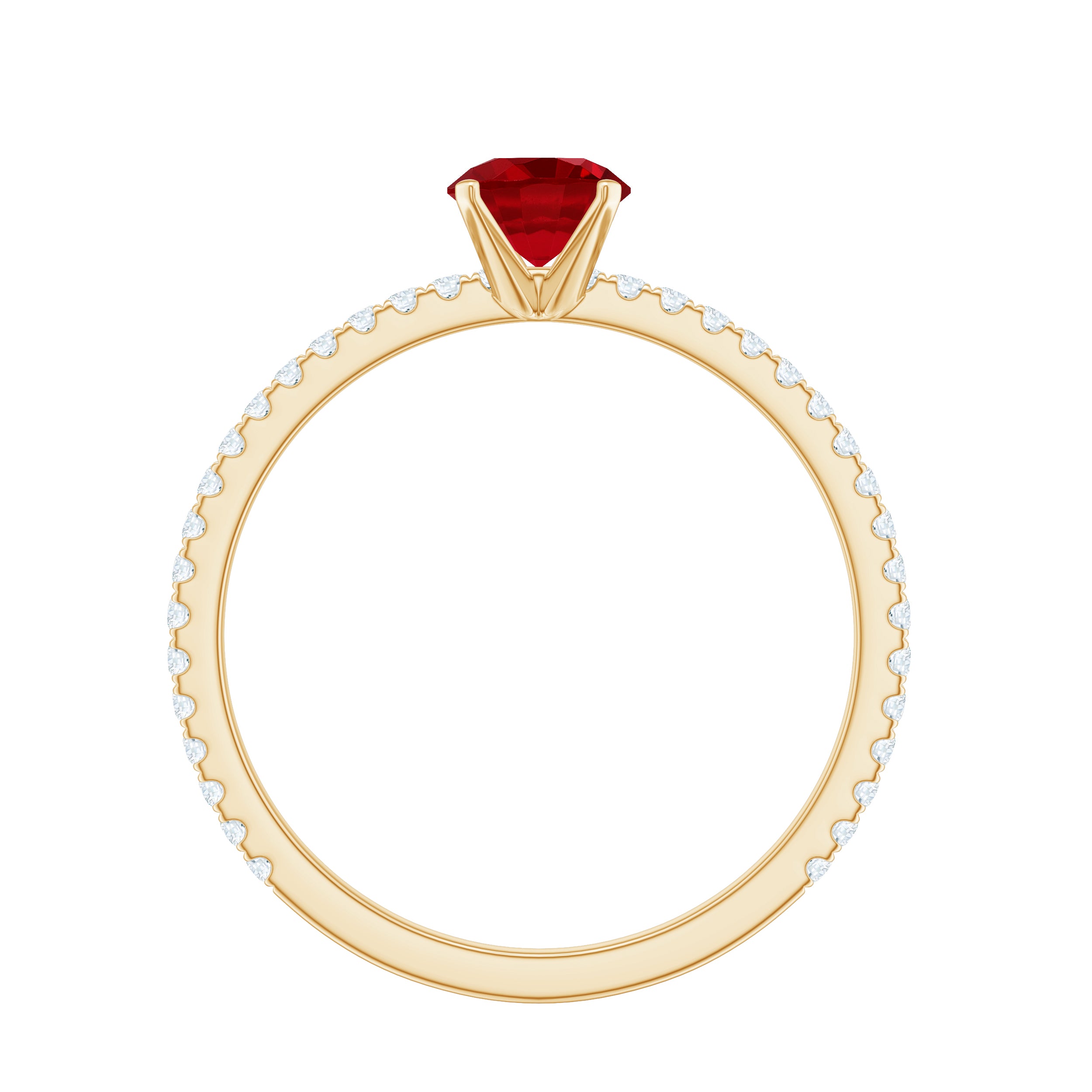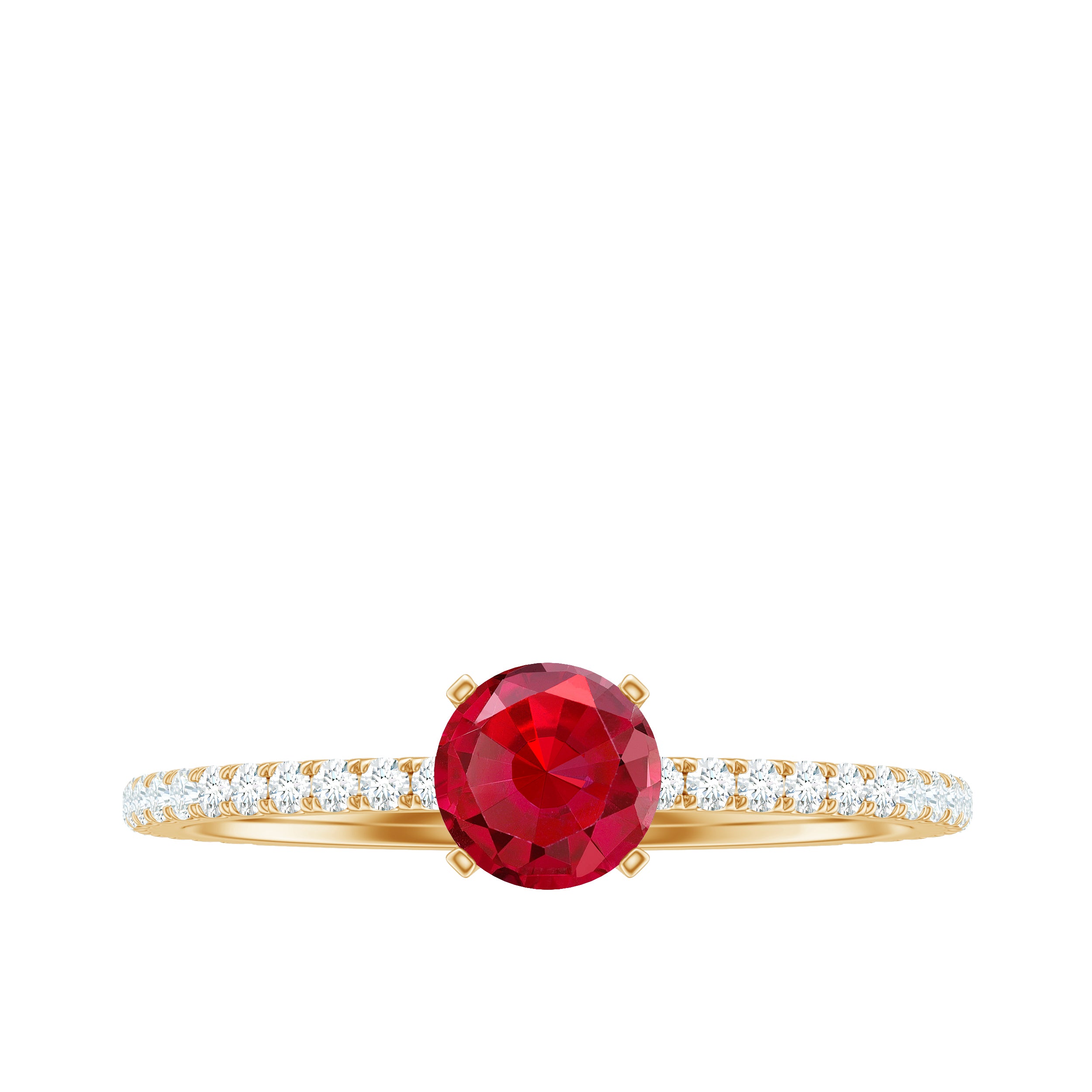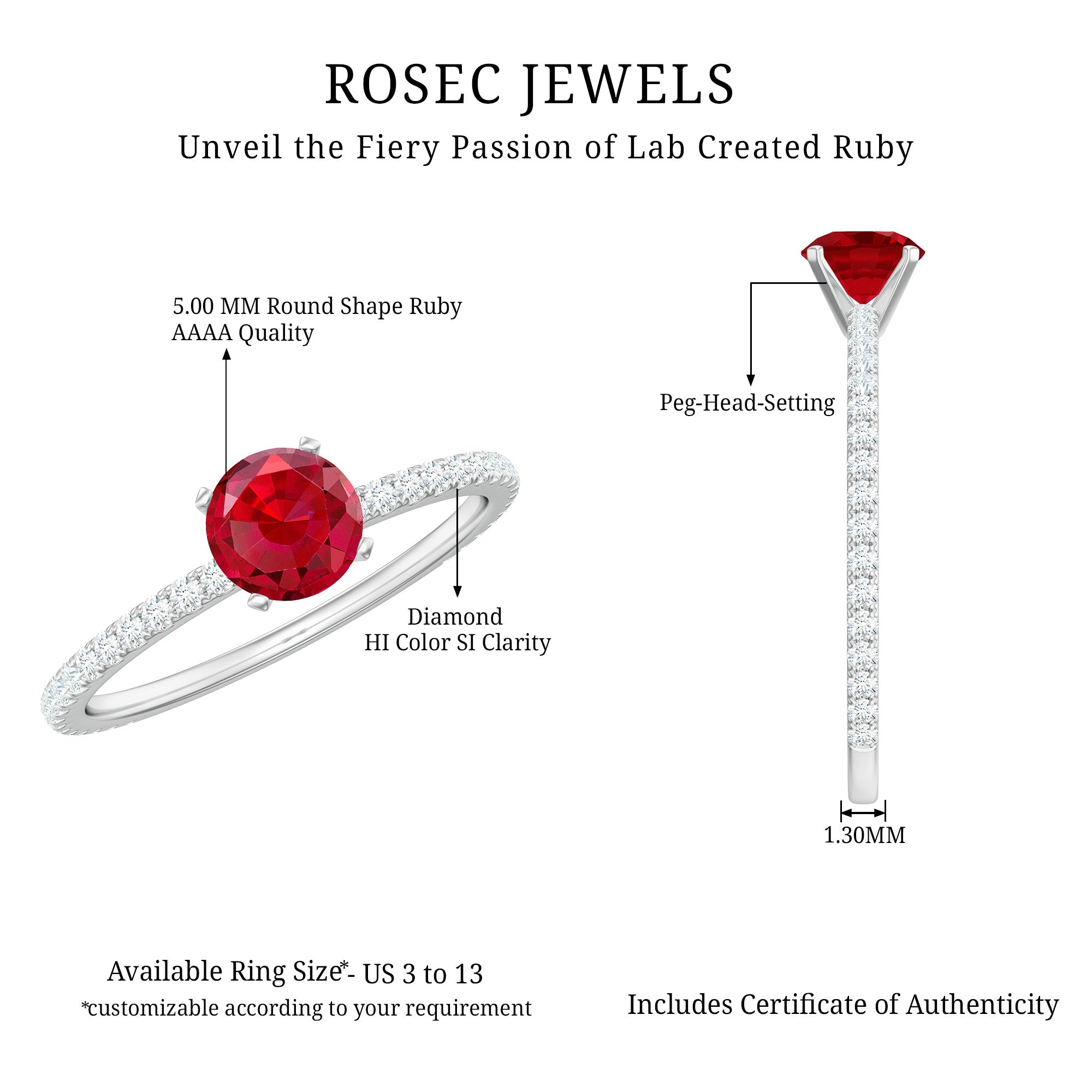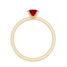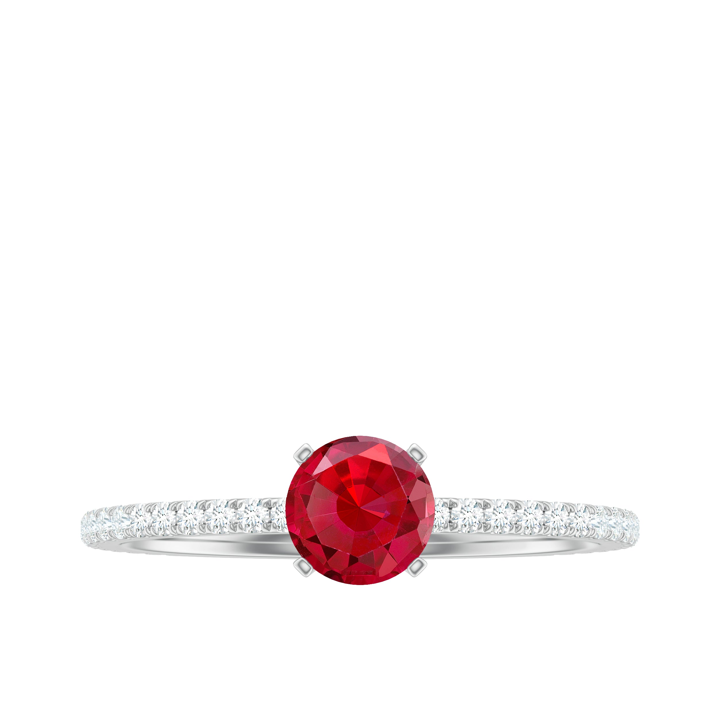 Round Cut Lab Grown Ruby Engagement Ring with Diamond