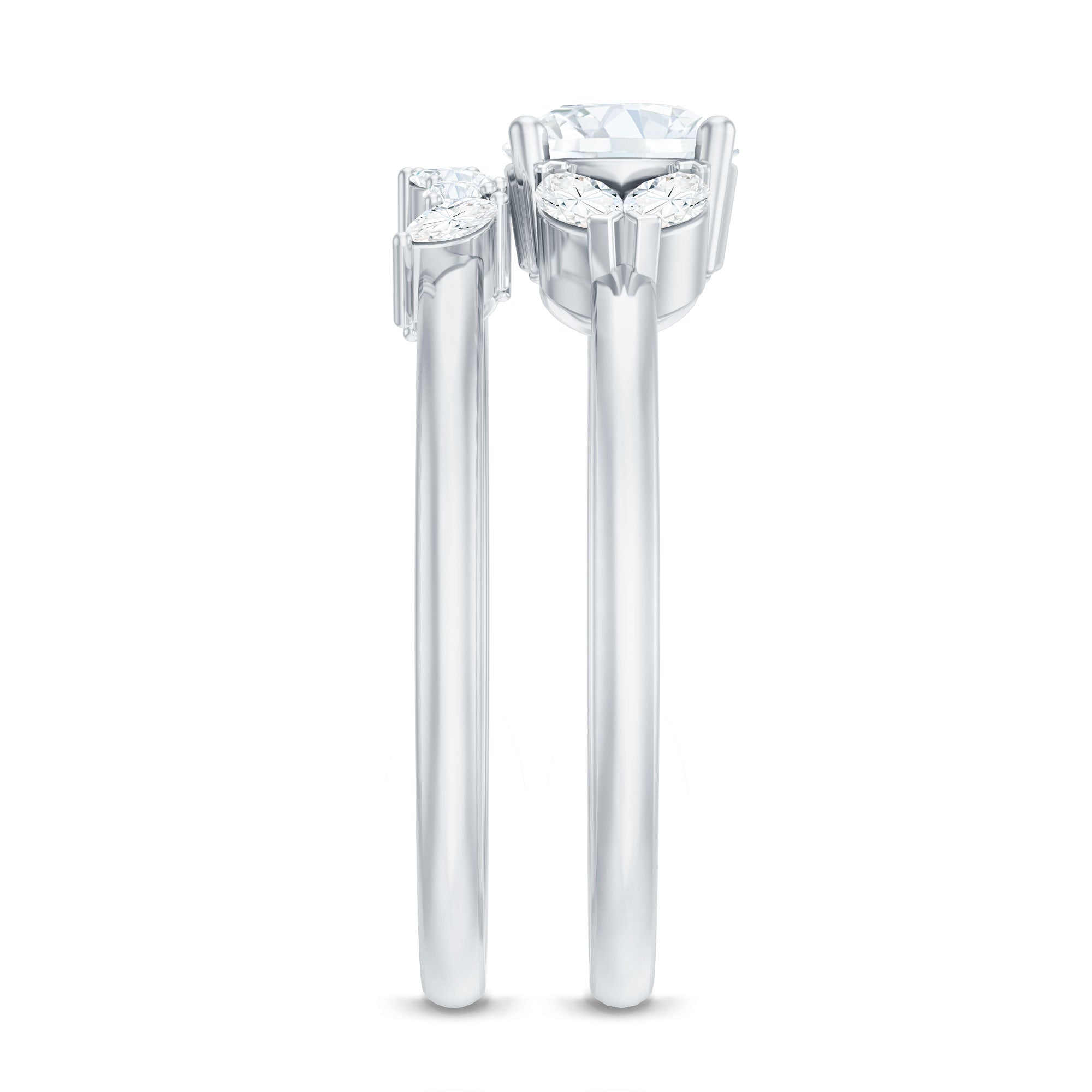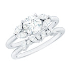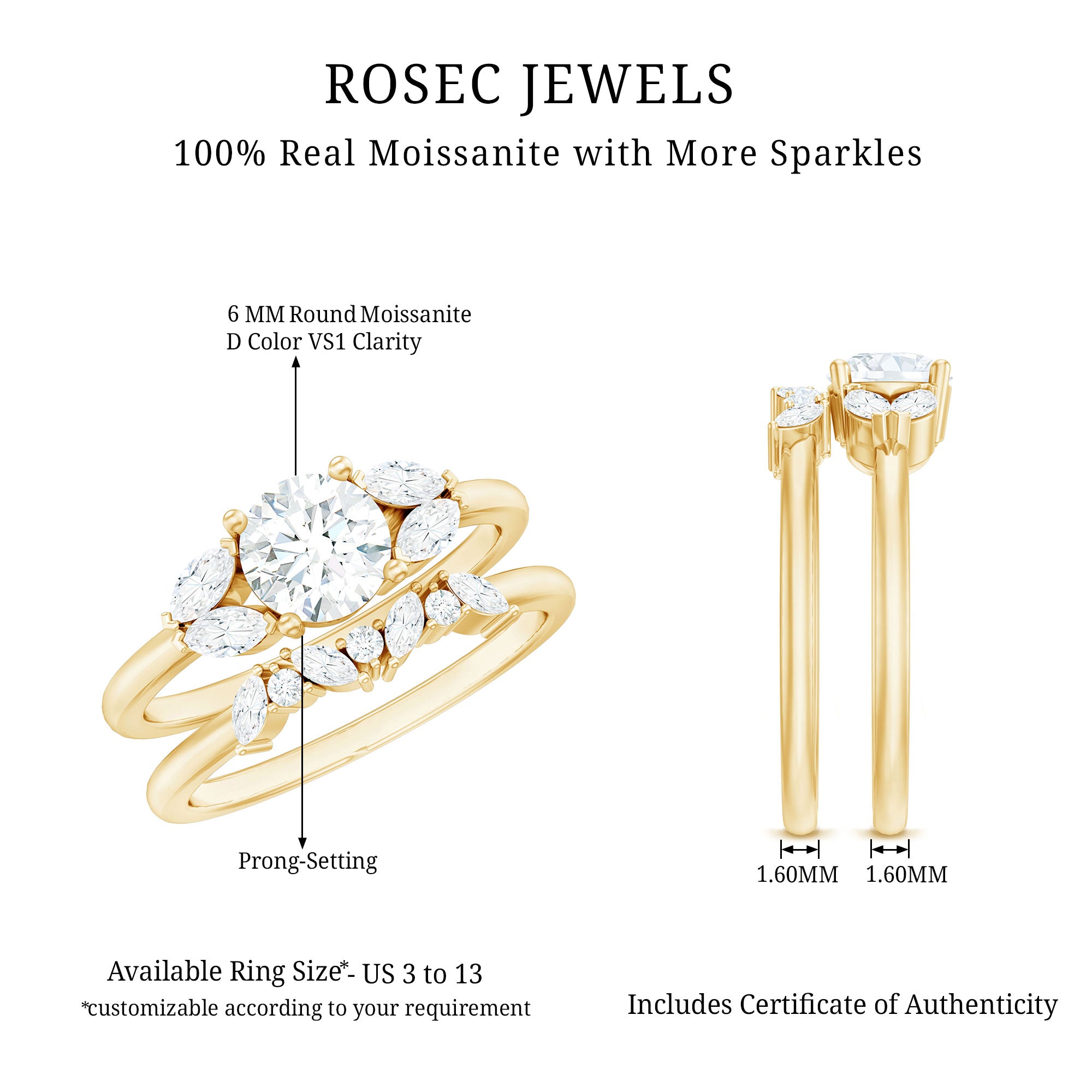 If timeless sparkle with a hint of romance is your style, this Moissanite Wedding Ring Set is just what you are looking for. Featuring a 6 MM round brilliant cut Moissanite at its center set in prong setting, on either side of the center stone, marquise cut Moissanites are prong-set to add a touch of elegant symmetry and extra shimmer. This engagement ring is paired with a matching band to create a graceful, coordinated look. The accompanying wedding band mirrors the beauty of the engagement ring with alternating round and marquise Moissanites in prong setting. The stones are D-VS1 quality, offering amazing fire and clarity. Crafted with attention to detail and built for comfort, this Moissanite Bridal Set is both stylish and practical. Whether you are saying YES to forever or celebrating your journey together, this Engagement Ring with Wedding Band Set captures the magic of the moment beautifully. This is more than a Moissanite Ring Set, it is a sparkling symbol of your love story, wrapped in brilliance and crafted to last a lifetime.