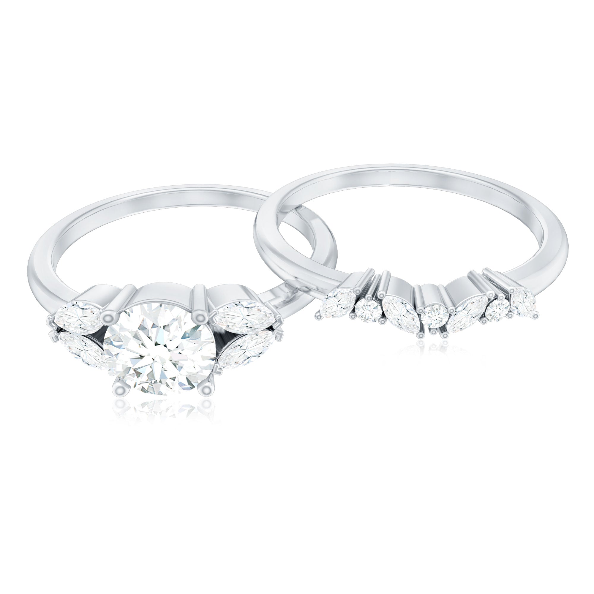 Round Cut Moissanite Bridal Ring Set with Certificate