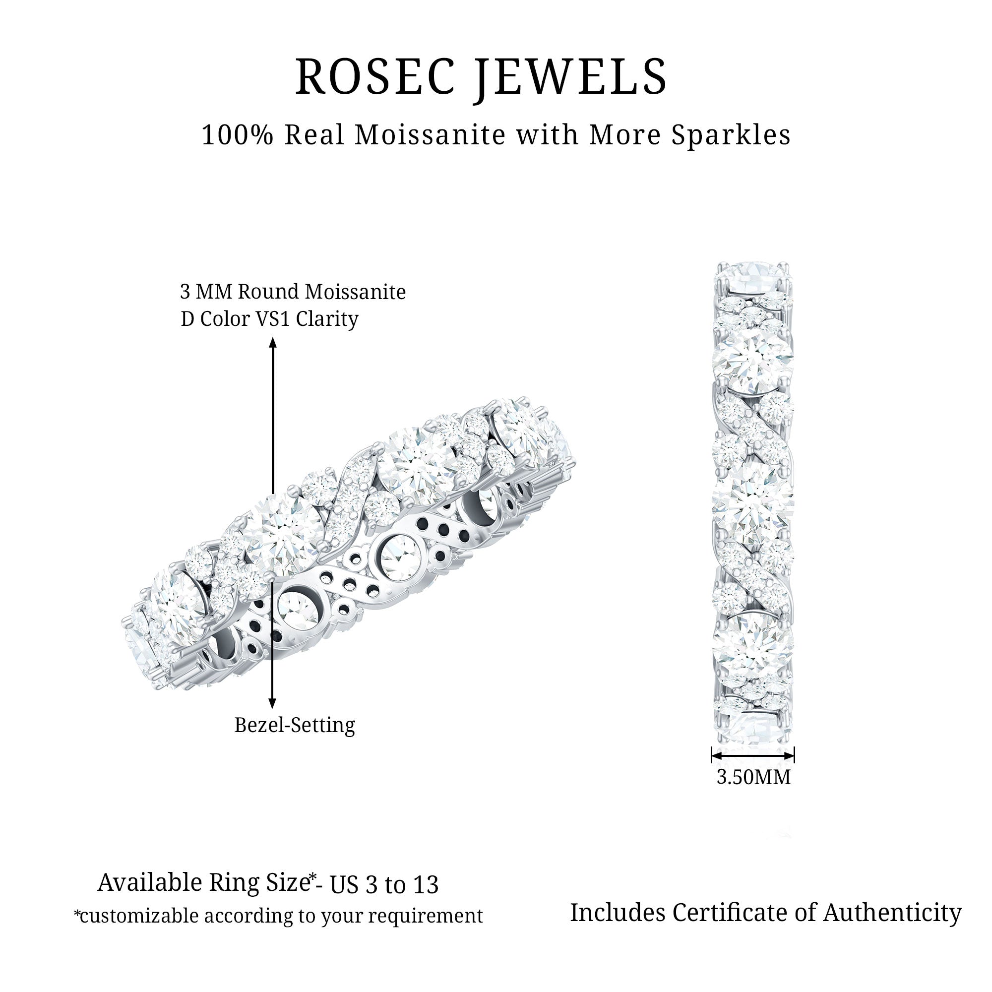 Round Cut Moissanite Eternity Wedding Band Ring
