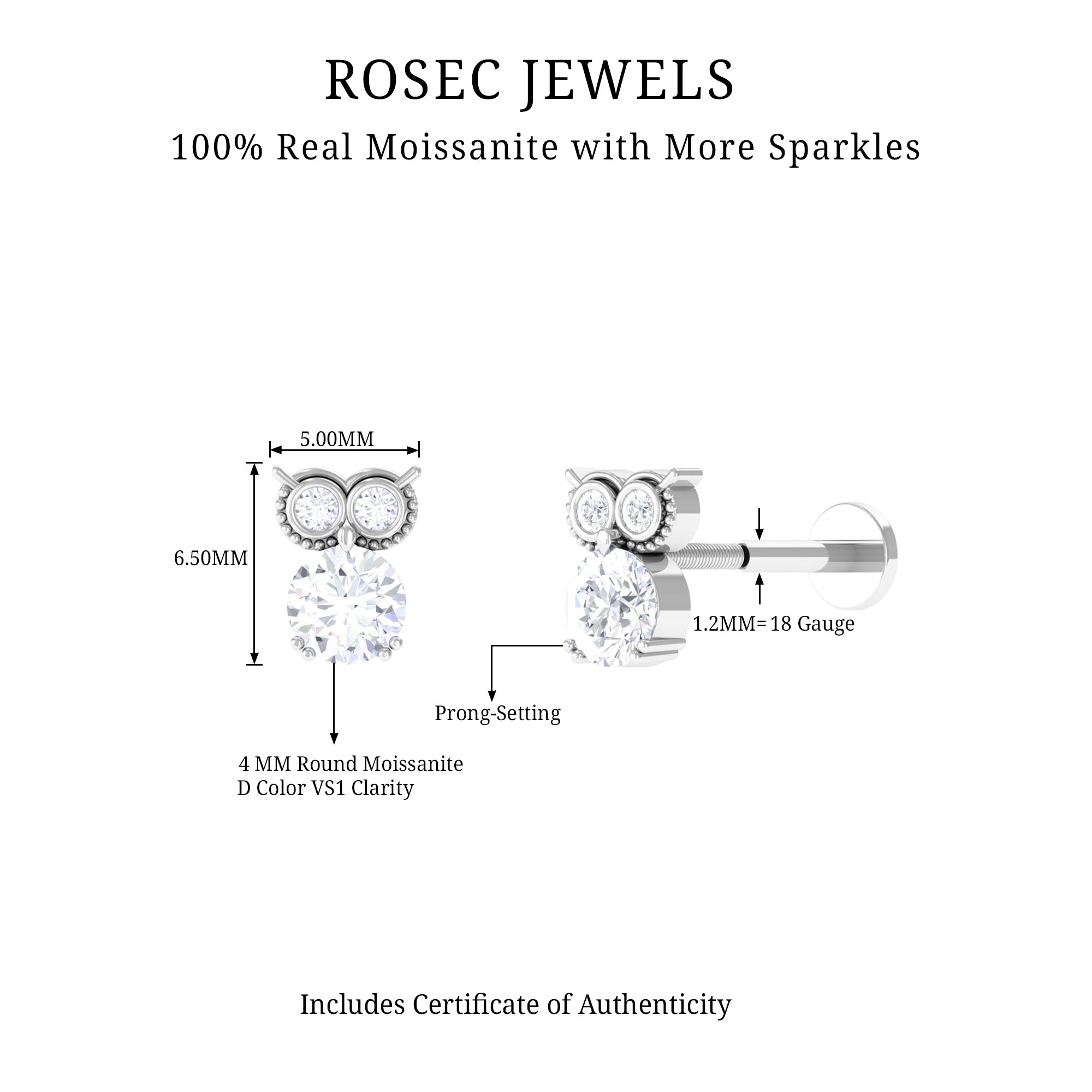 Round Cut Moissanite Owl Earring for Cartilage Piercing