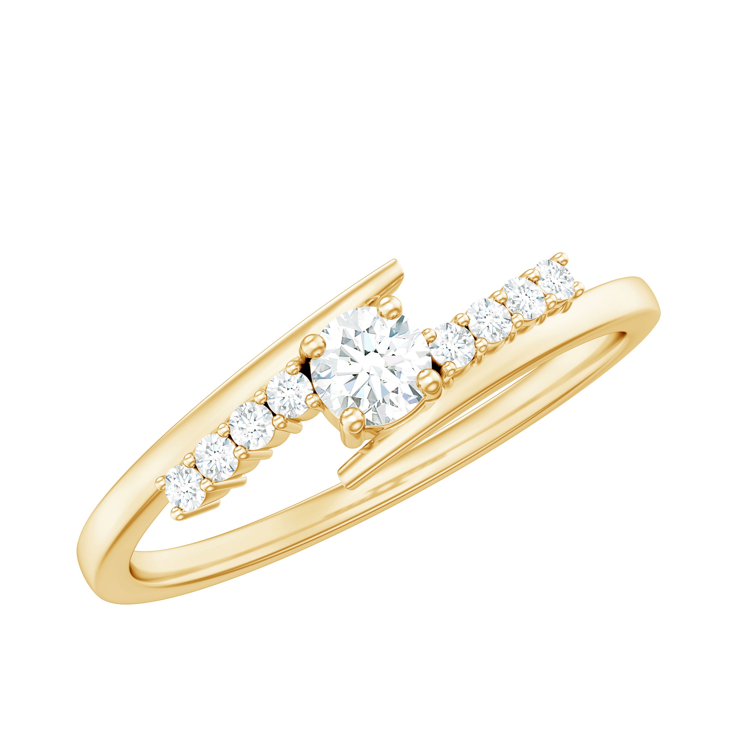Round Cut Moissanite Promise Ring with Bypass Shank