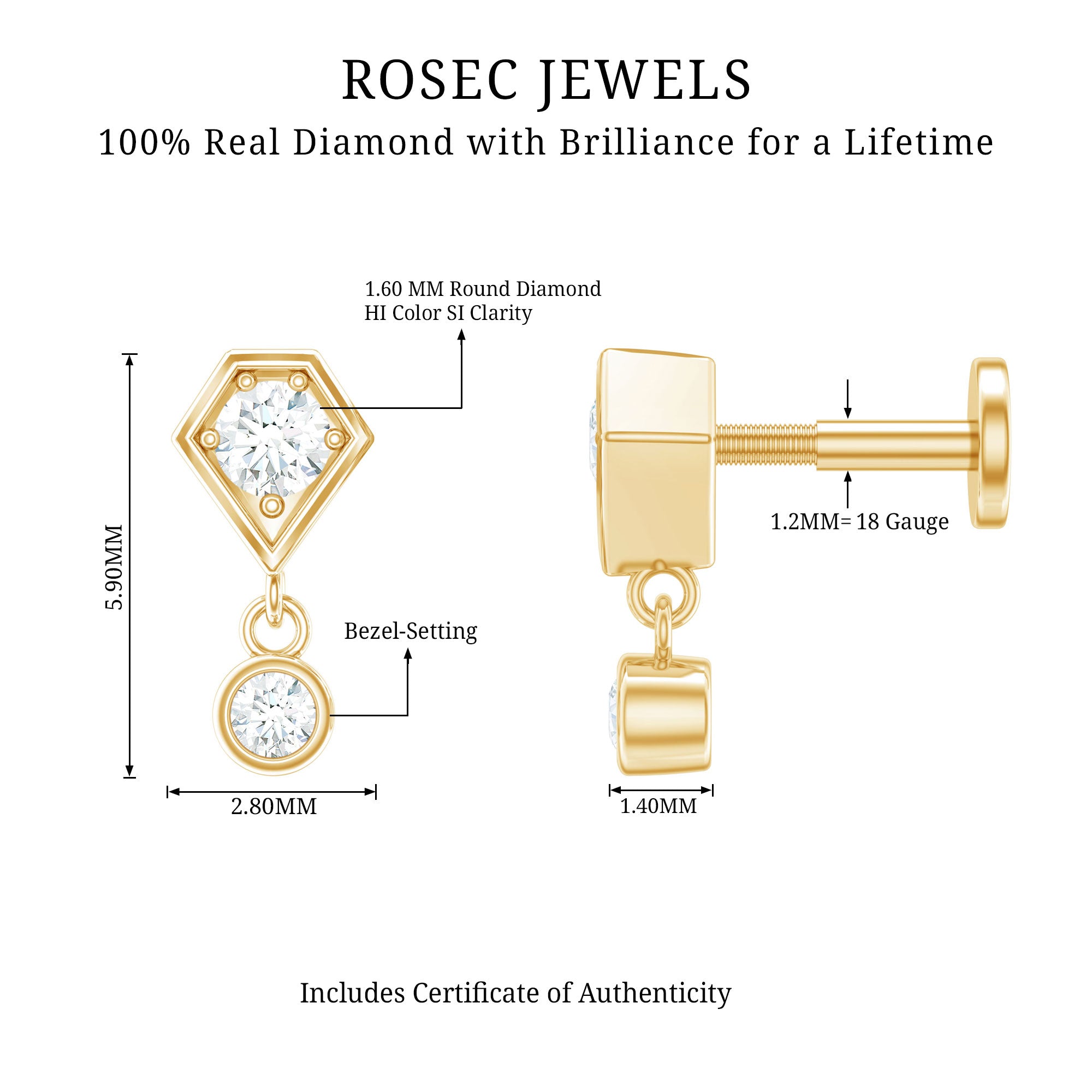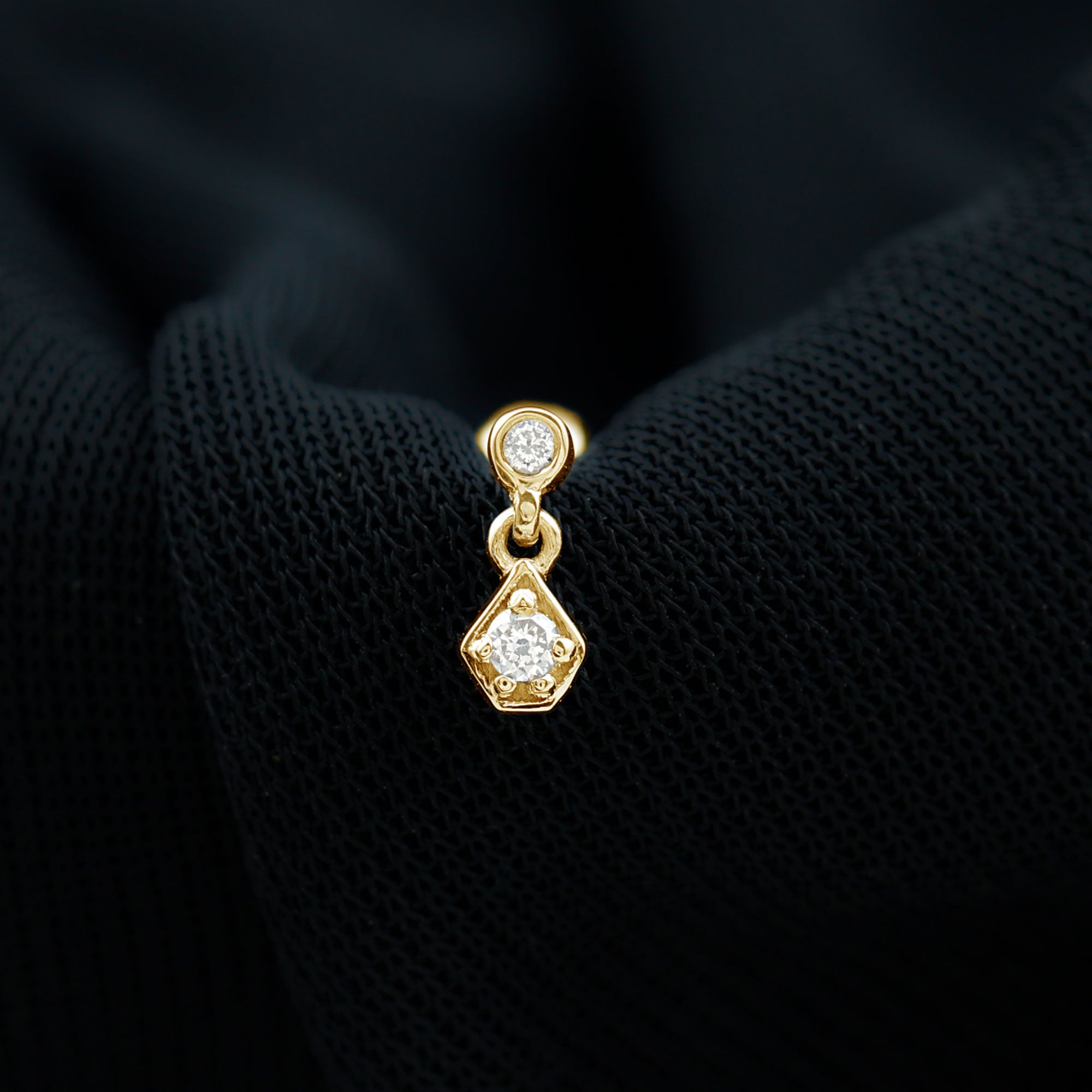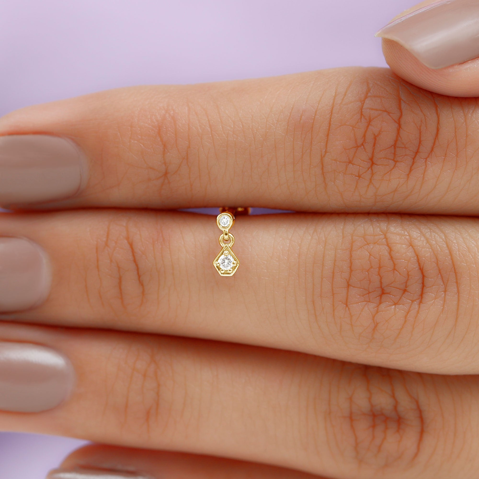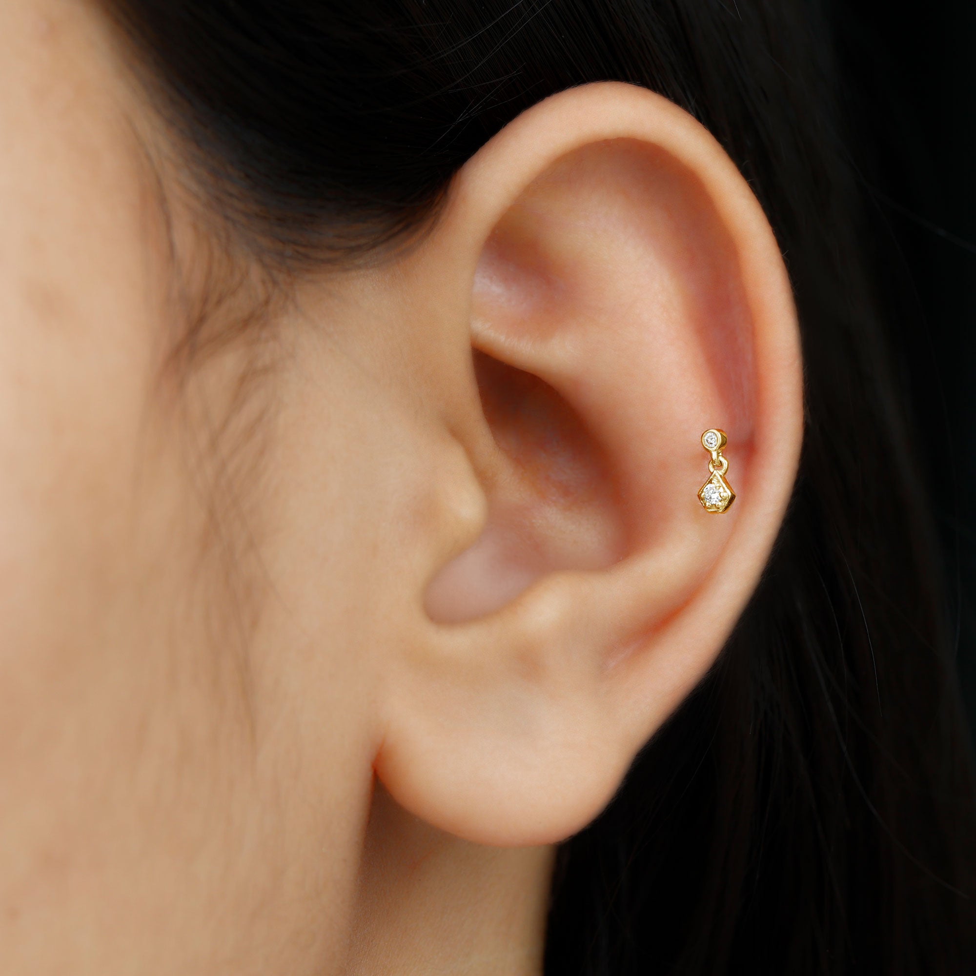 This elegant Diamond Helix Drop Earring is crafted in high quality metal and adorned with sparkling Round Cut Diamond on a unique design with a small Bezel Set Round Cut Diamond hanging as a drop. We offer real and certified diamonds with stunning designs at affordable prices. Our jewelry arrives ready to gift in our Signature Box. The Tiny Diamond Earring can be styled on your Helix, Rook, Tragus, Cartilage, or Upper Lobe Piercing and comes with a Flat Back Closure for a comfortable fit. Present this Cartilage Earring as a precious Birthday, Anniversary, New Years, or Christmas Gift for her, and she will never want to take it off. Designed for women who appreciate fine jewelry, it combines sophistication, comfort, and versatility. Whether you are dressing up for a special occasion or adding a touch of shine to your everyday outfit, it is a piece that instantly lifts your style. This Diamond Tragus Earring is also a thoughtful gift for your wife, girlfriend, daughter, mother, or friend who adores cute and meaningful jewelry.