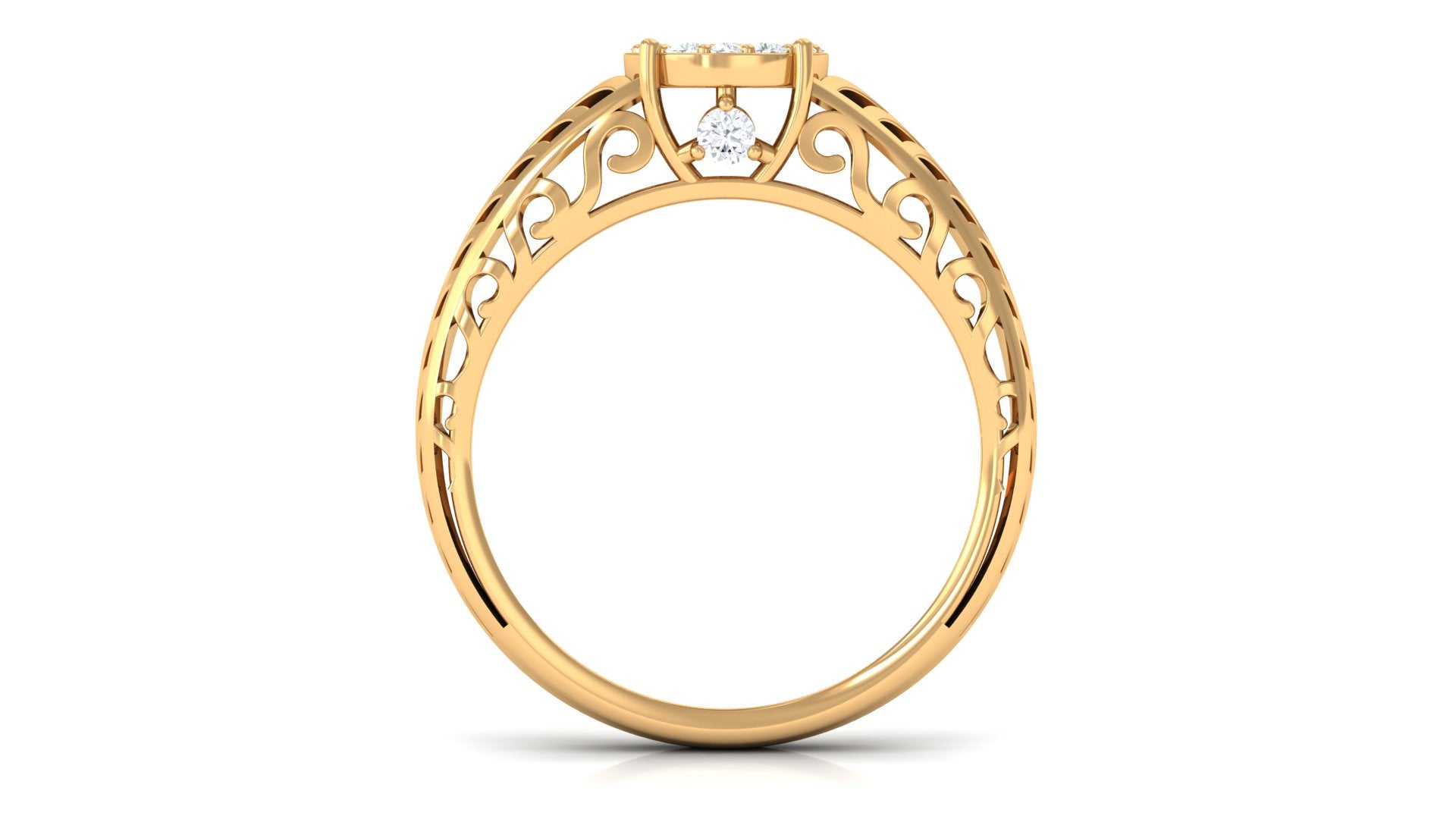 Round Cut Real Diamond Engagement Ring with Gold Filigree Shank