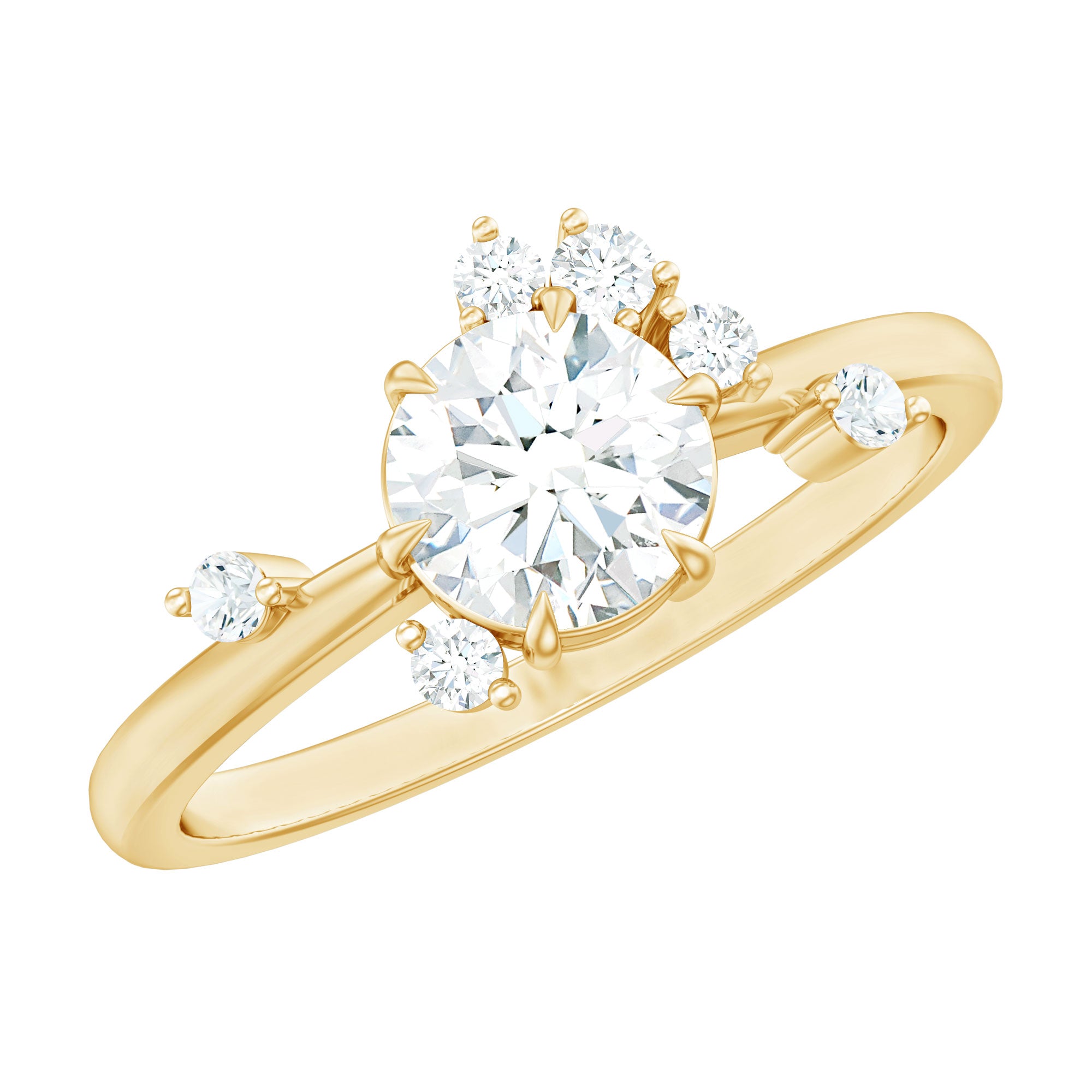 Round Cut Scatter Moissanite Unique Engagement Ring