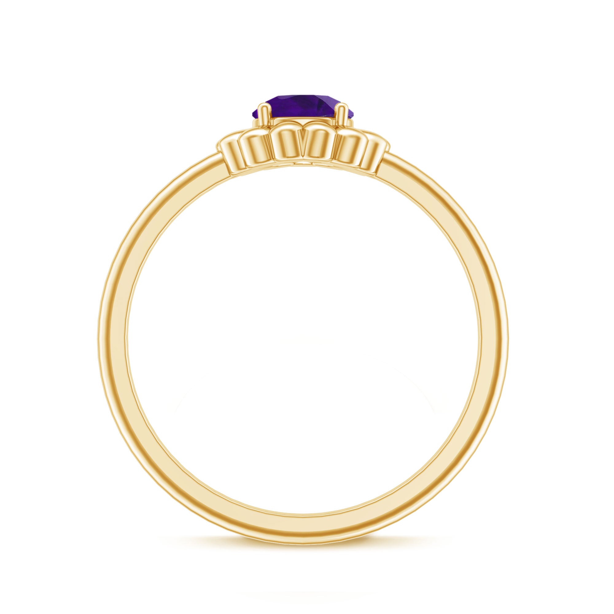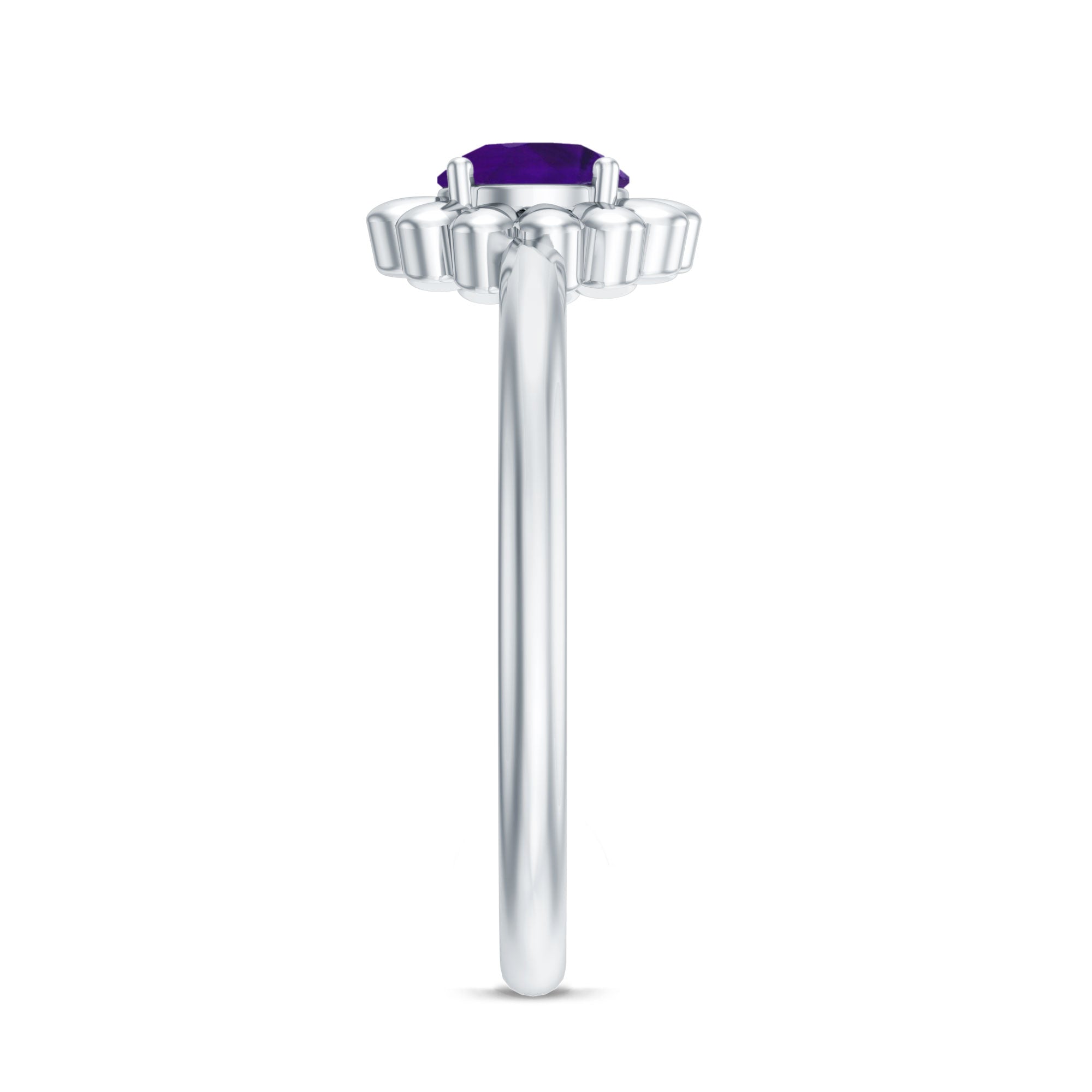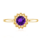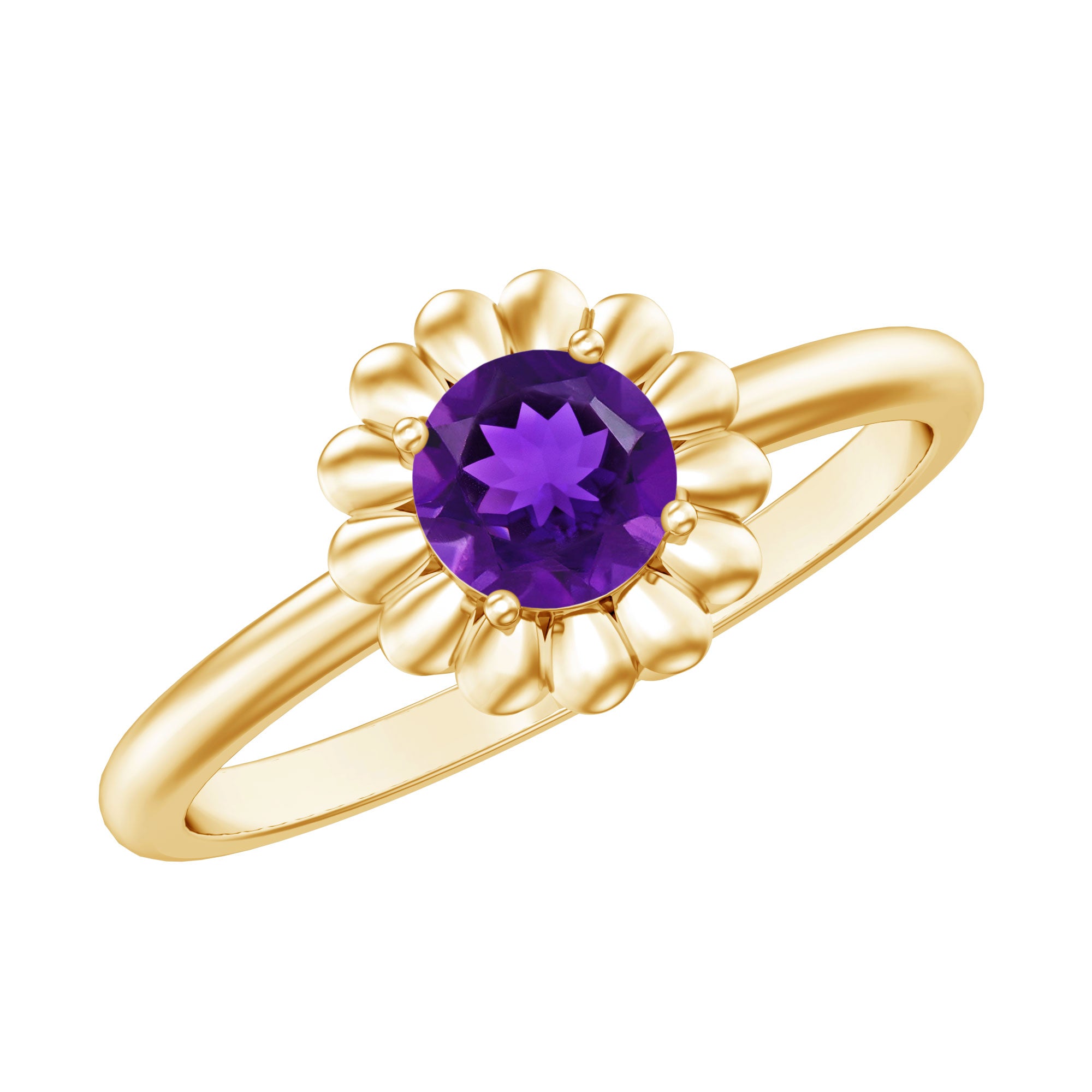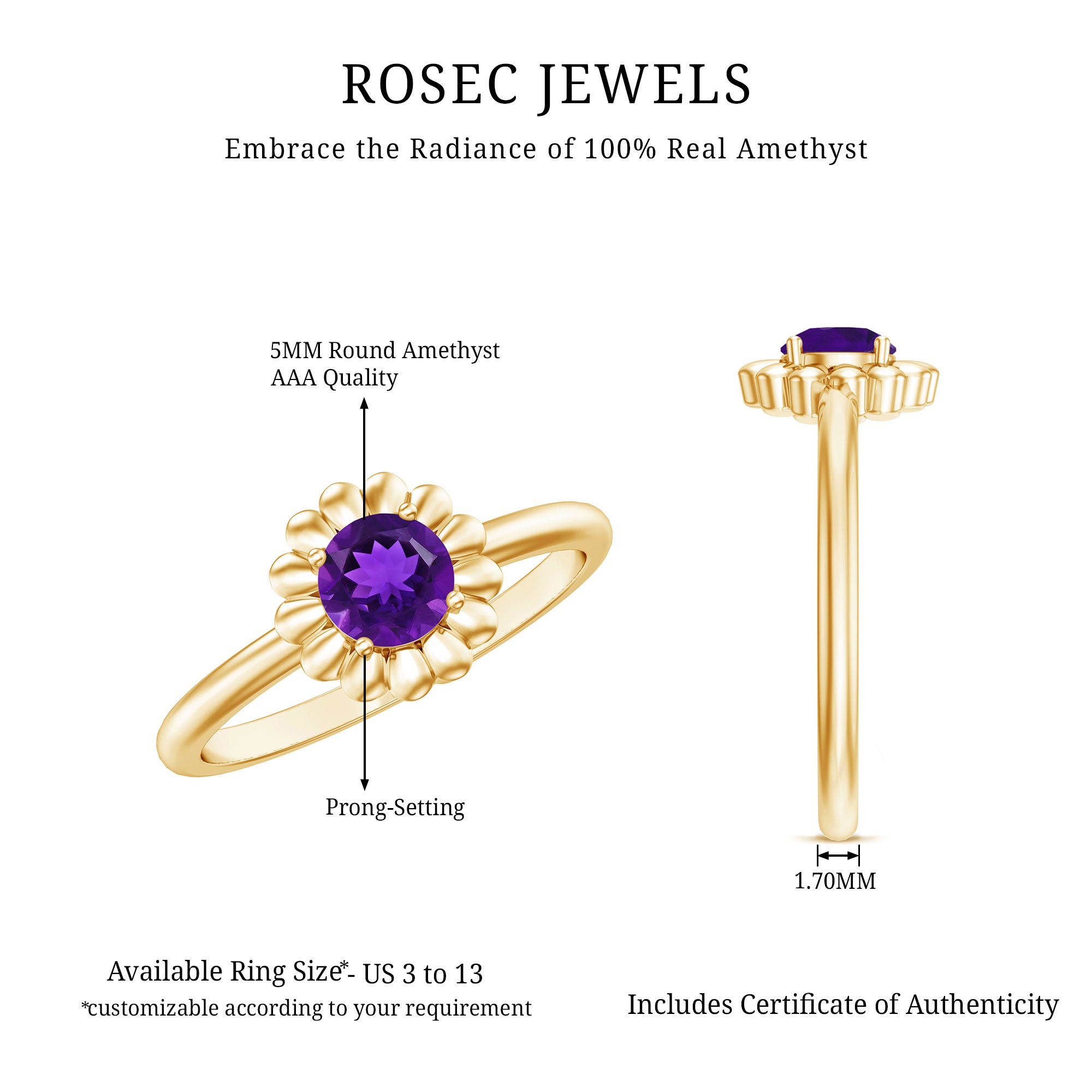 The intricate floral design of this Solitaire Ring adorned with Round Shape Amethyst gemstone adds a touch of elegance to your style.