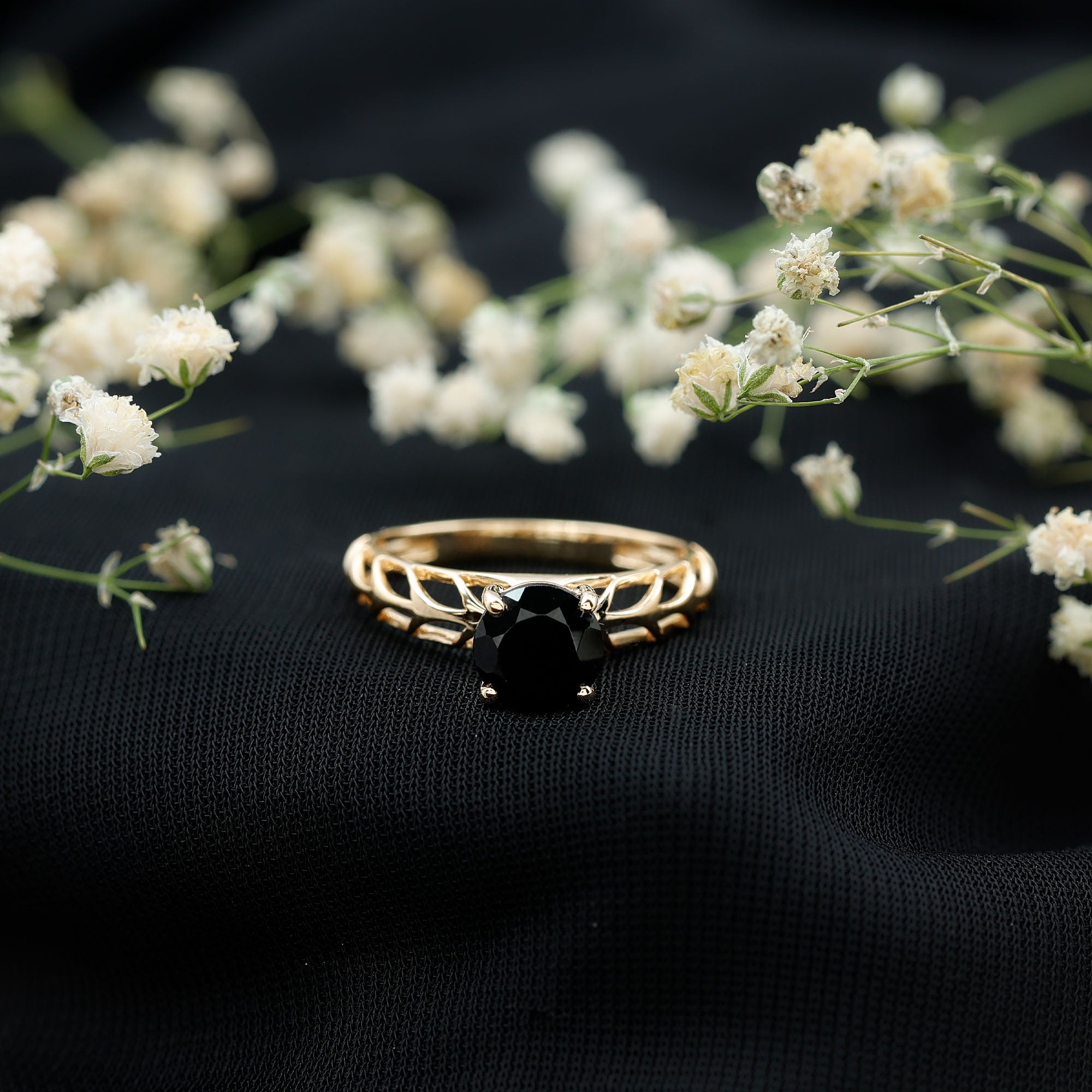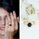 Round Cut Solitaire Black Onyx Engagement Ring with Certificate