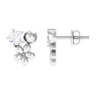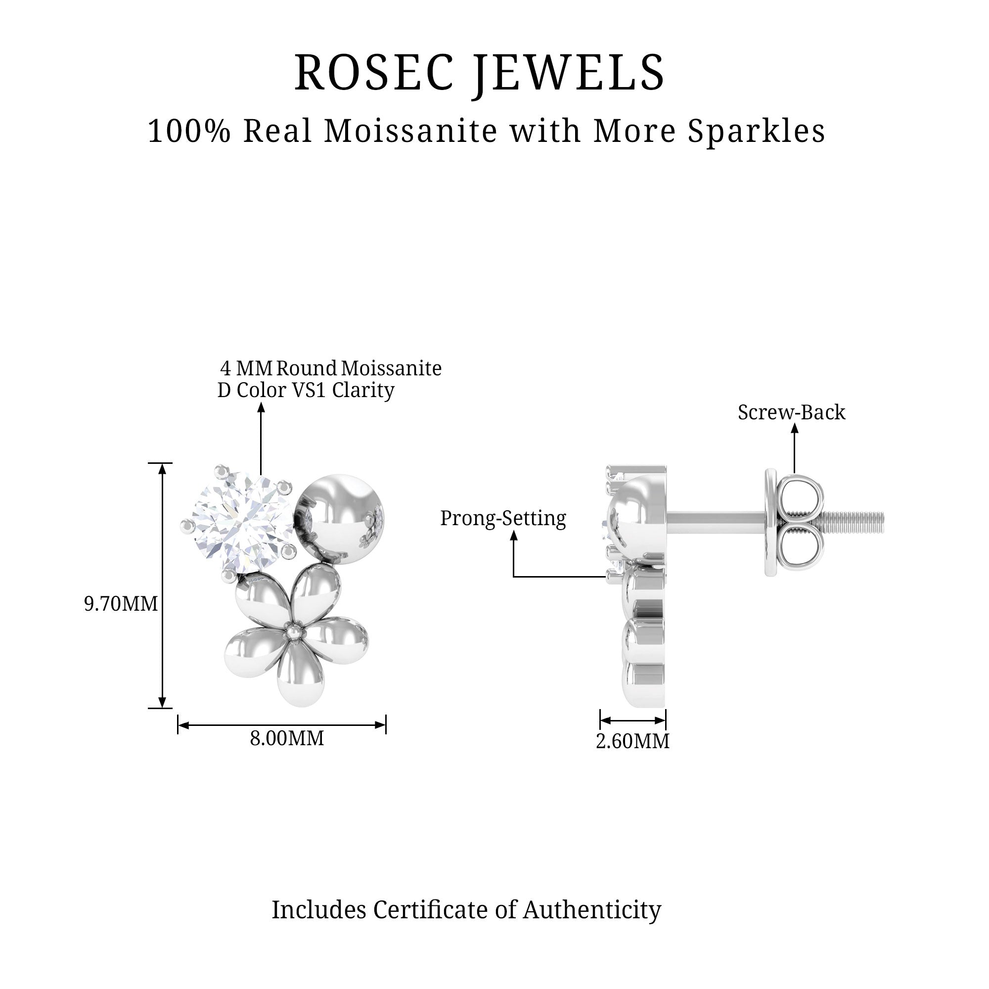 Round Cut Solitaire Moissanite Two Tone Gold Flower Stud Earrings