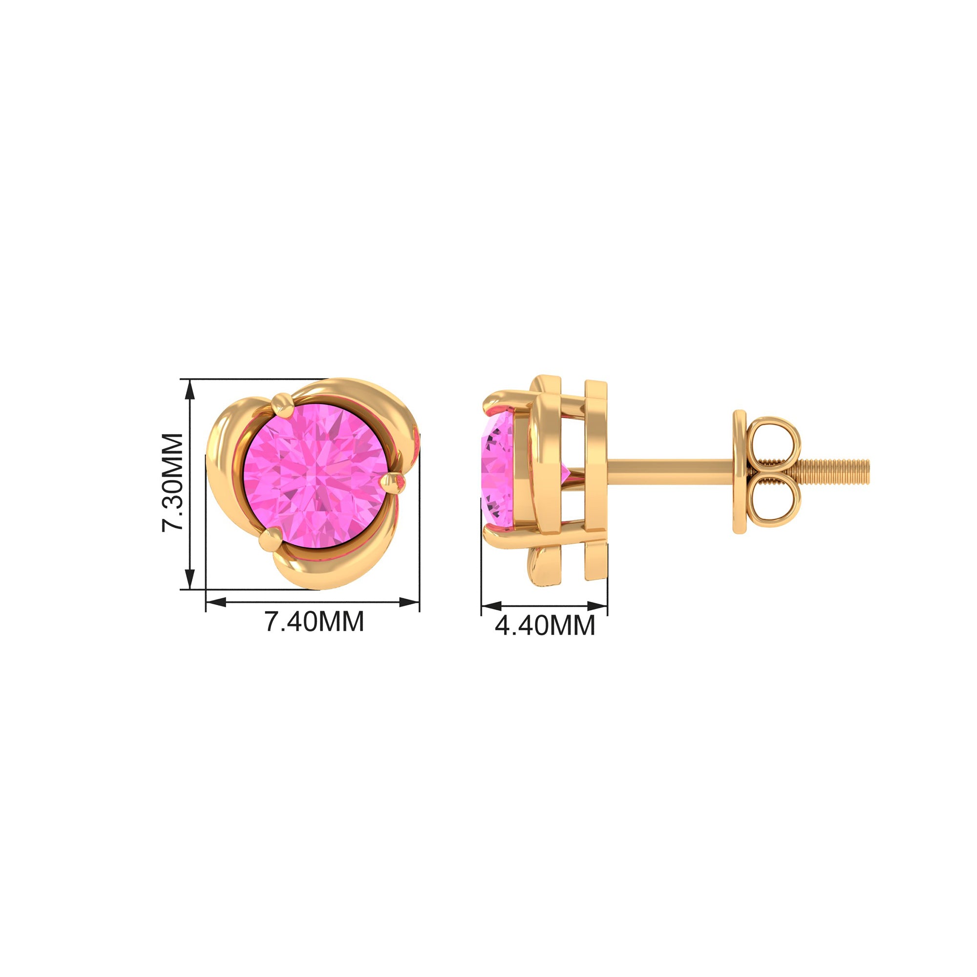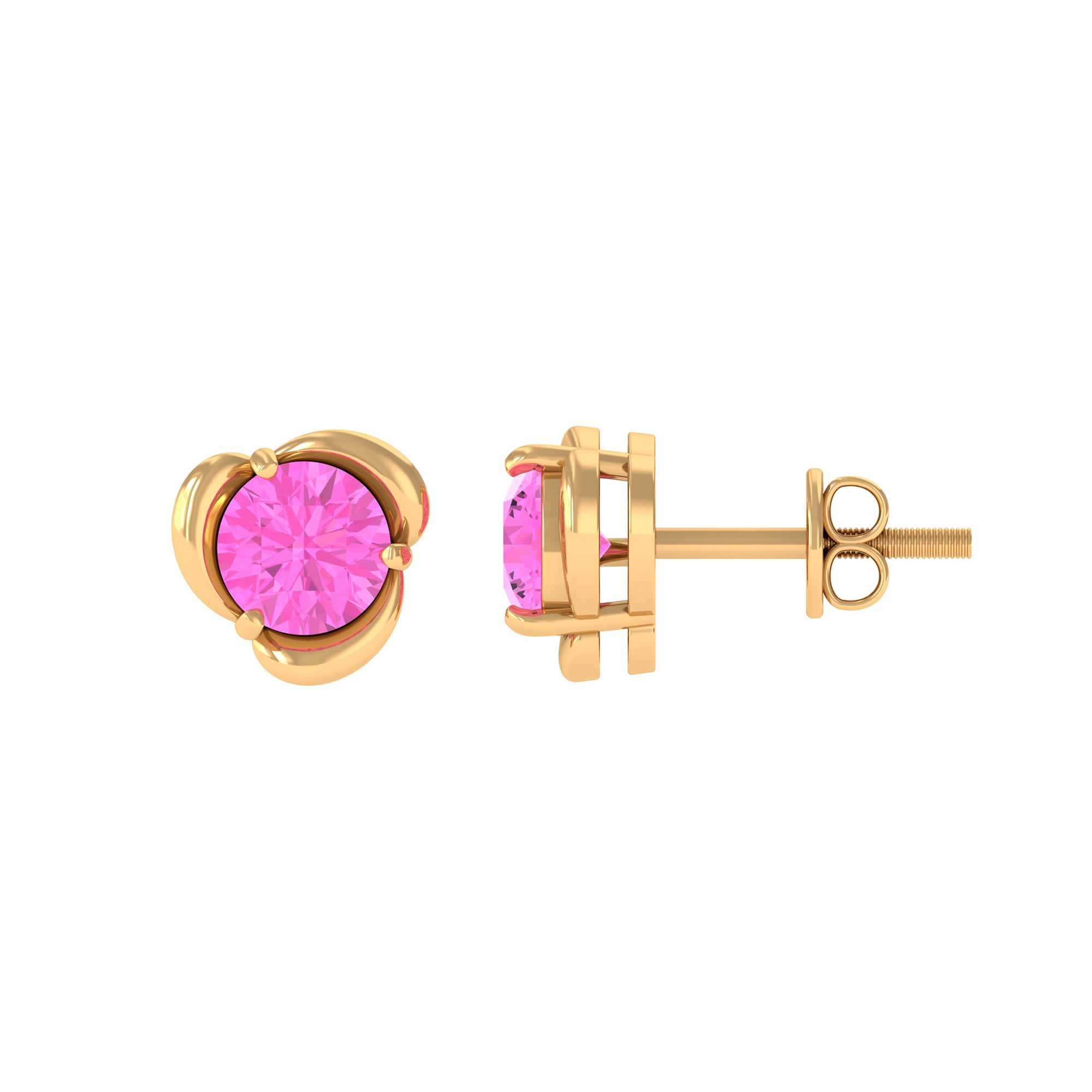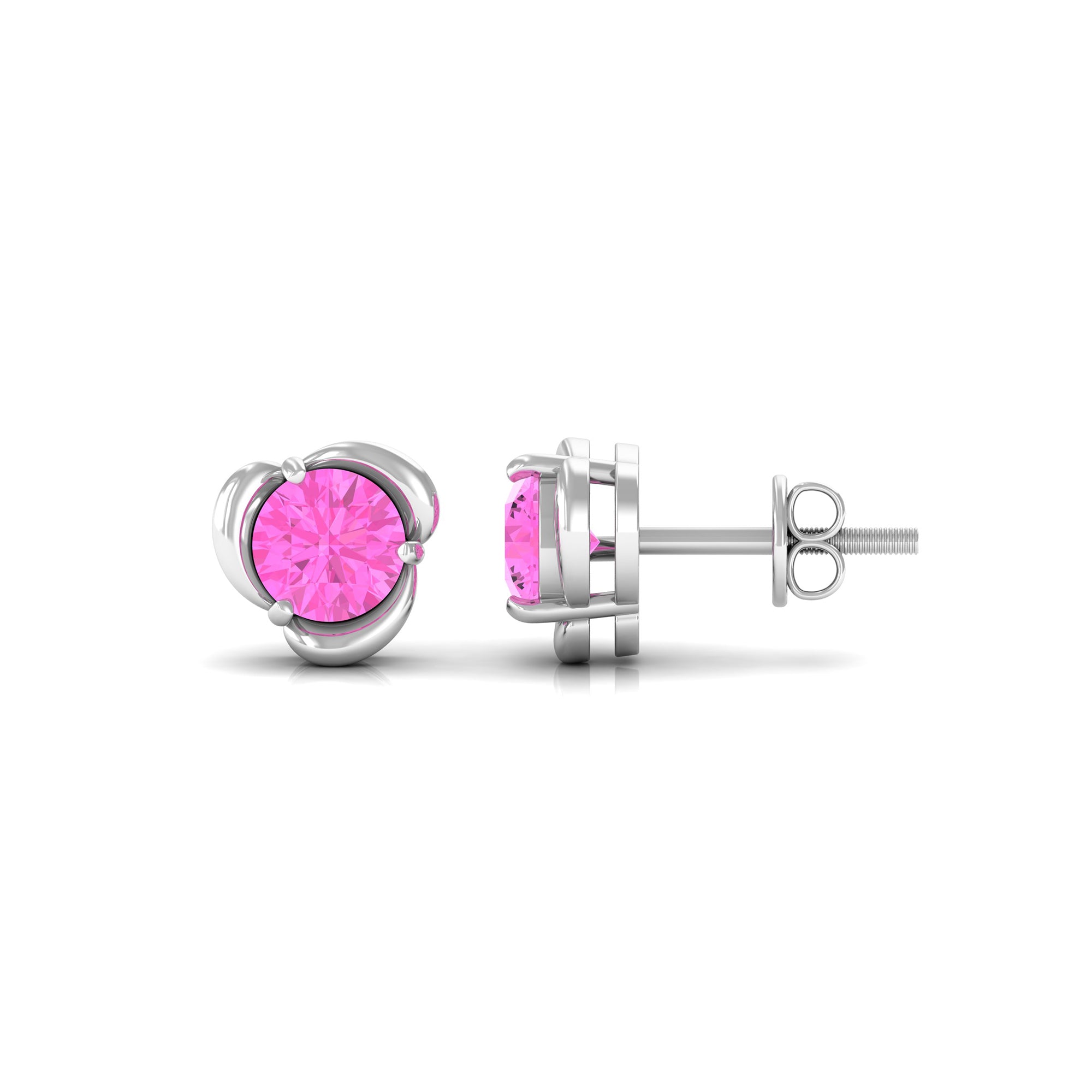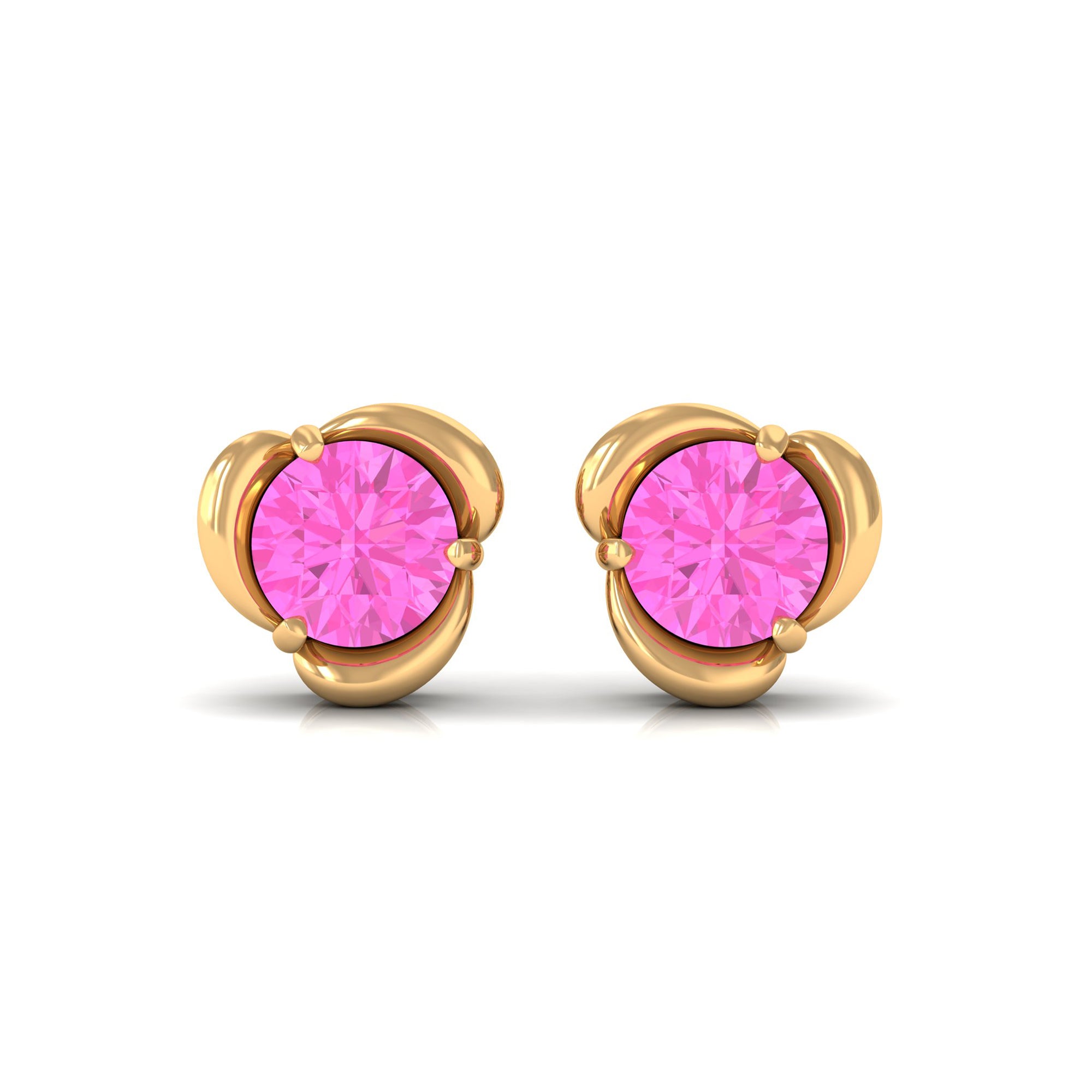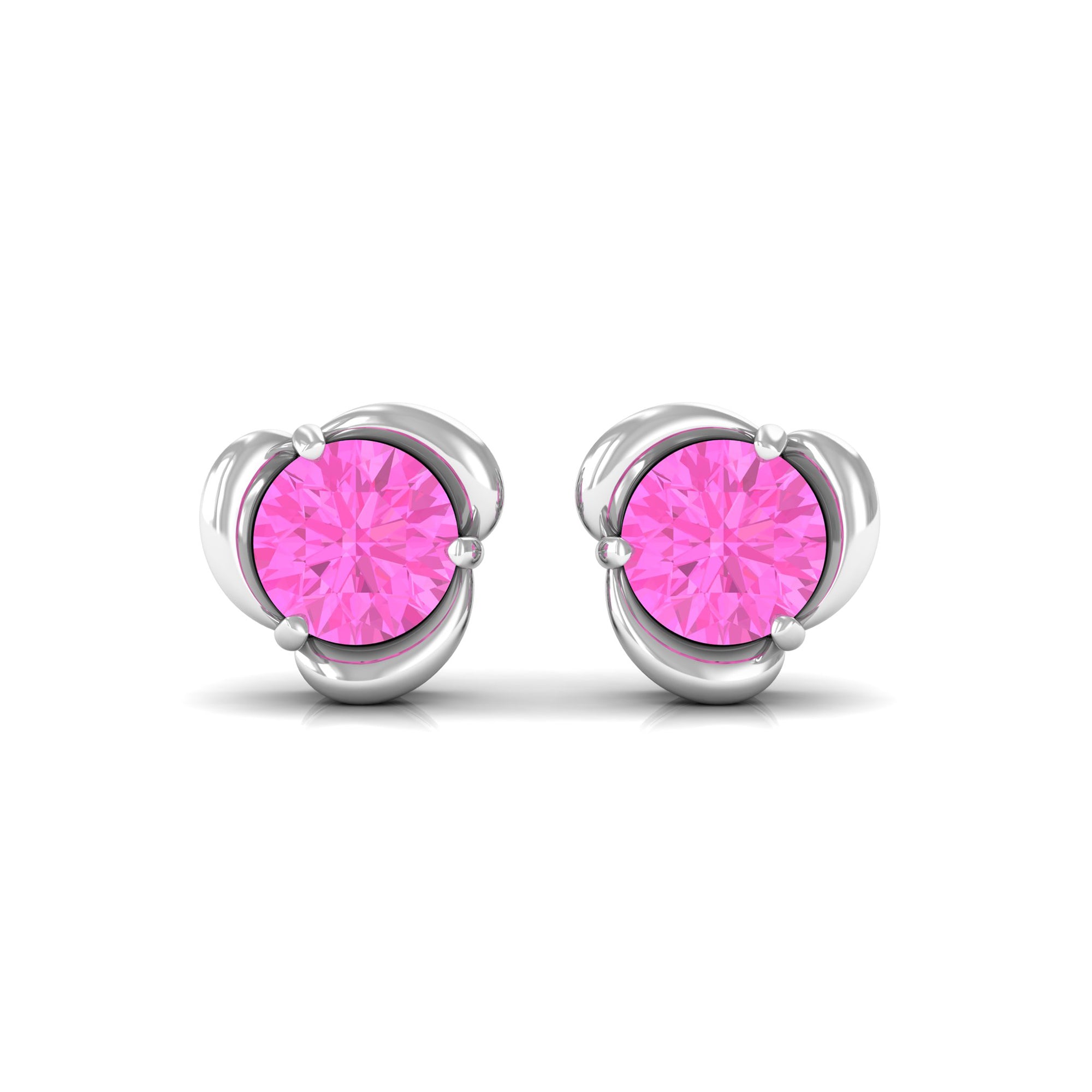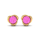 Round Cut Solitaire Pink Sapphire Flower Stud Earrings