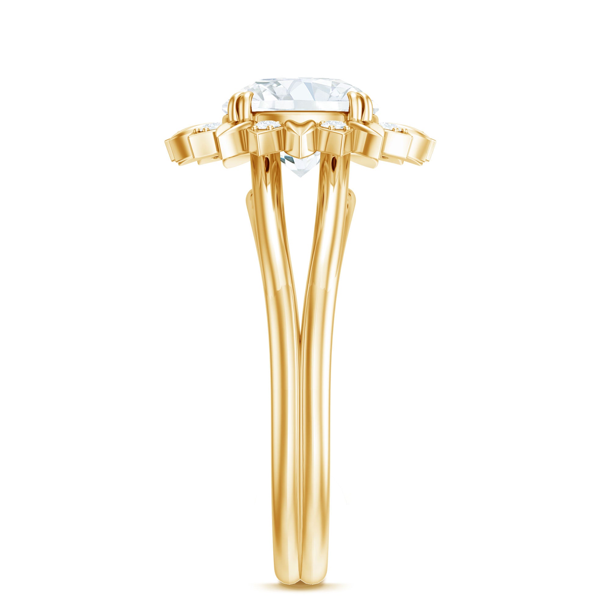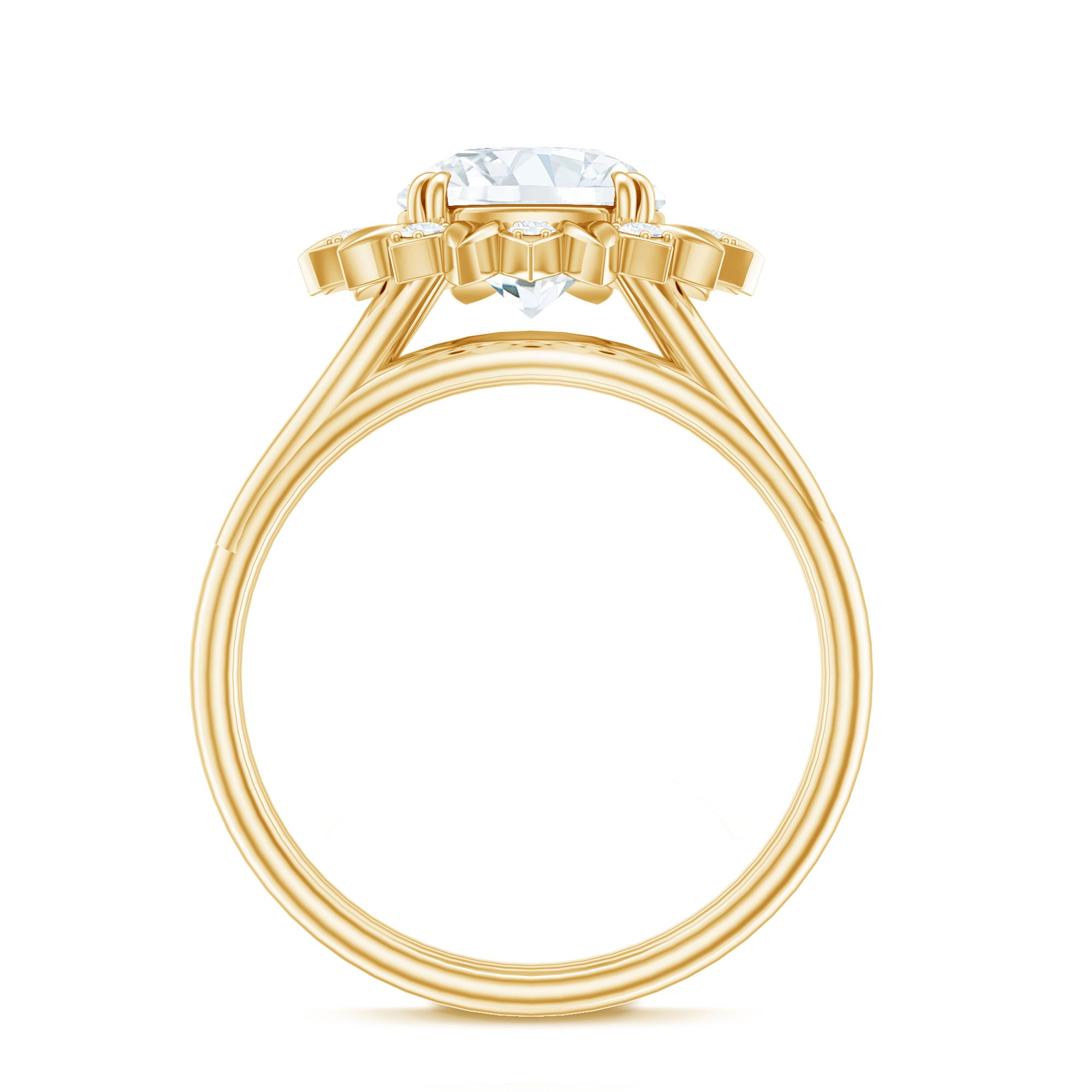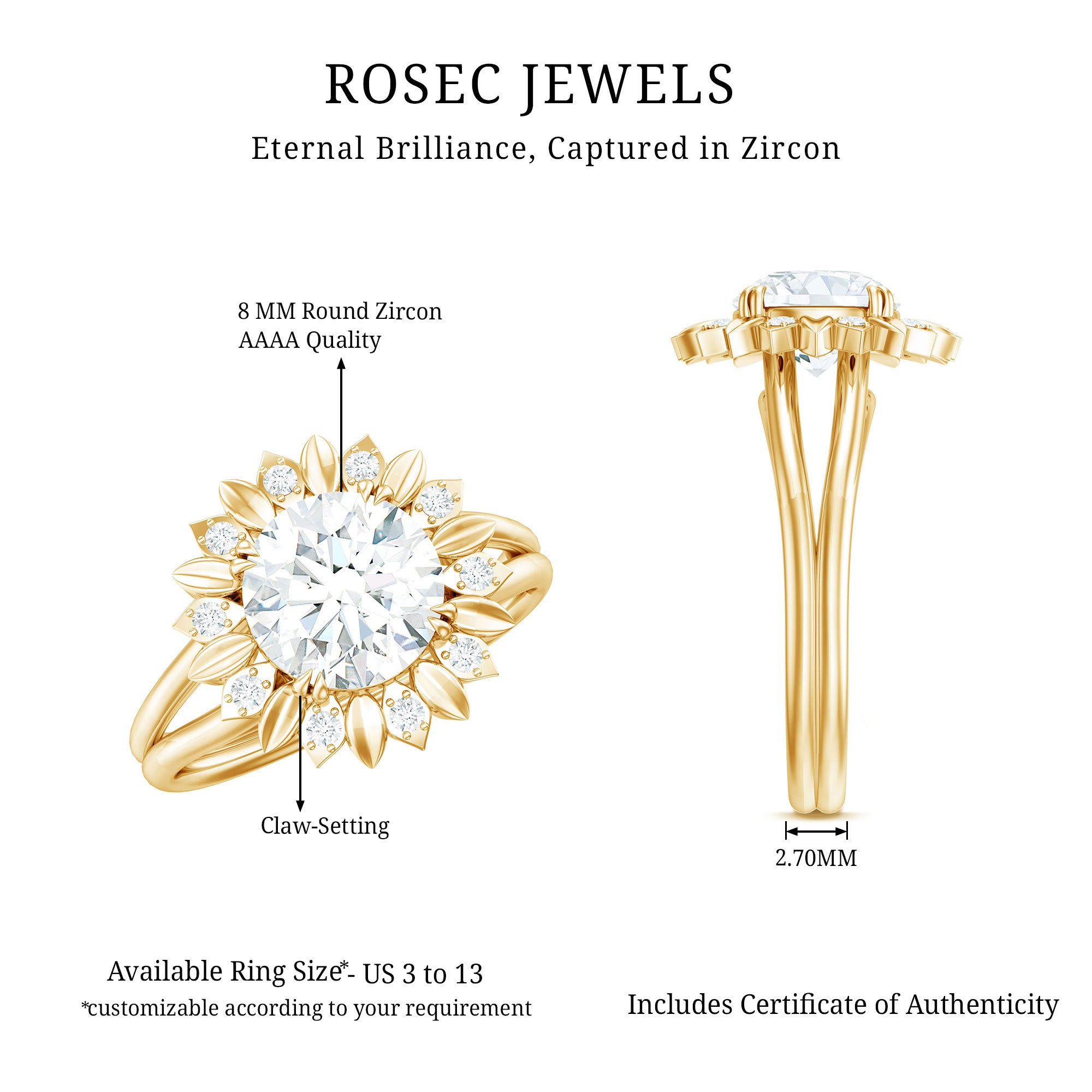 Round Cut Solitaire Zircon Gold Flower Engagement Ring in Split Shank