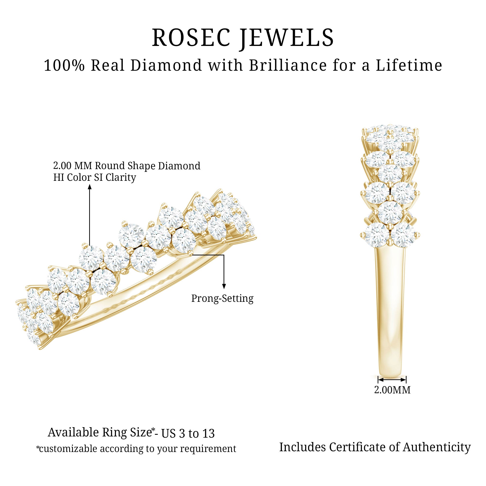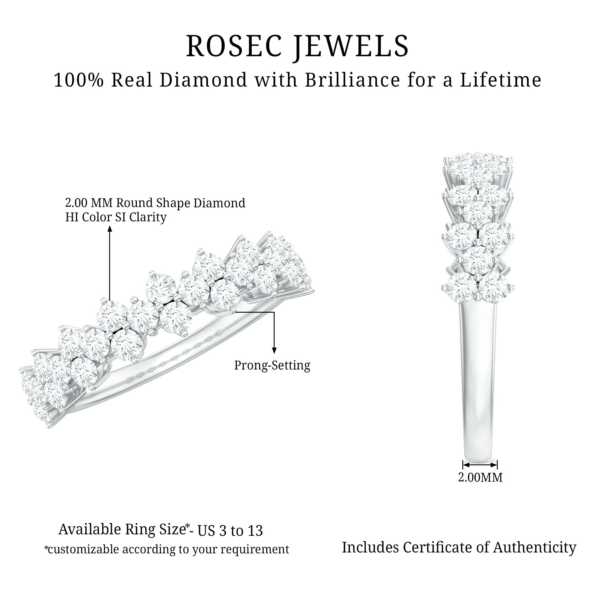 Boasting a unique design, this Diamond Wedding Ring truly conveys the essence of love. Its unique details and incorporating floral design create an understated flowery feel. The unique design of the Wedding Eternity Ring is adorned with Round Shape Diamond in Cluster, mimicking the floral design, creating the elegant look of the nature inspired design with a flowery feel. It creates a unique and romantic floral effect that blends beautifully with real meaning. Having an unbroken circle represents the enduring love or a promise that lets you feel timeless and modern. Having a bold and artistic flair, this Flower Wedding Ring carries a little bit of nature and romance with it at all times, thanks to its alluring floral motifs and captivating diamonds. As a representation of devotion and affection, this Flower Diamond Ring is a treasure forever appreciating a realistic representation of nature inspired. This gorgeous attractiveness has a wonderful appearance with the floral design depicting the fascination of nature in a timeless way.