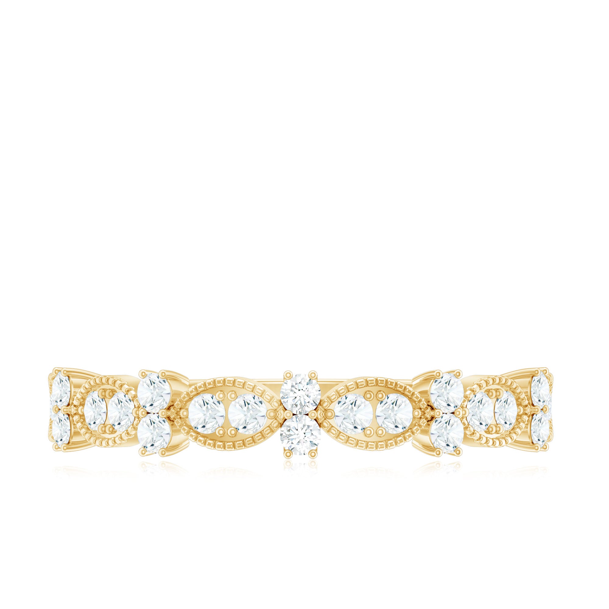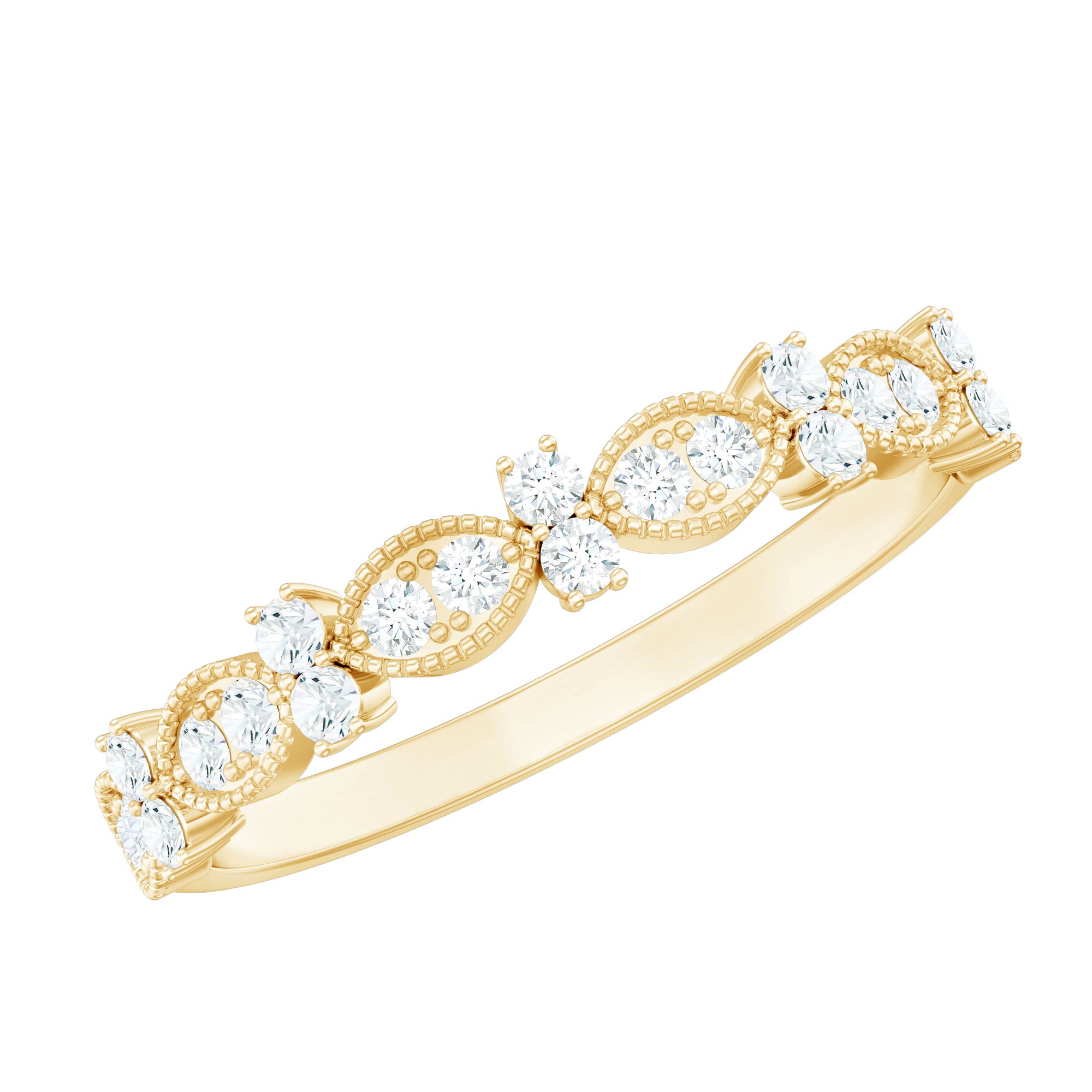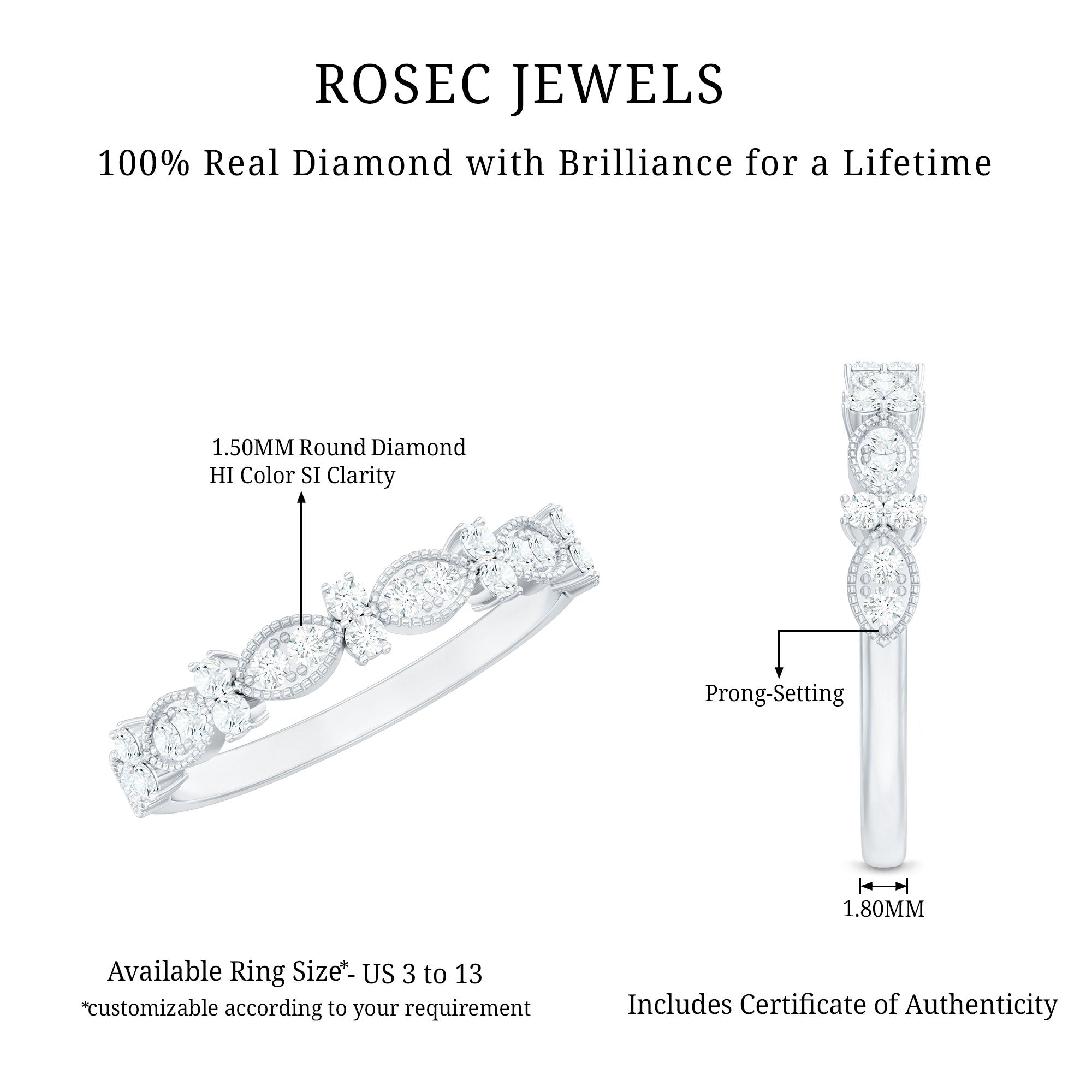 Round Diamond Designer Semi Eternity Ring with Milgrain