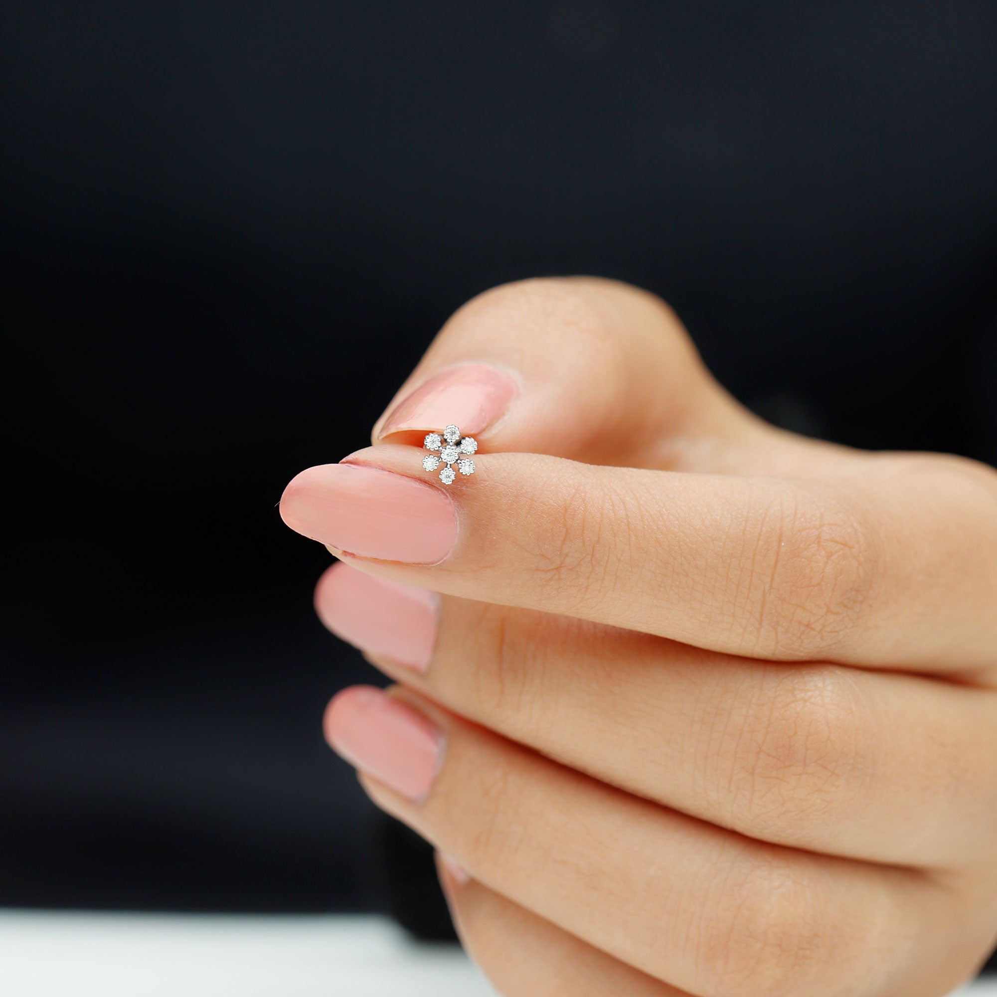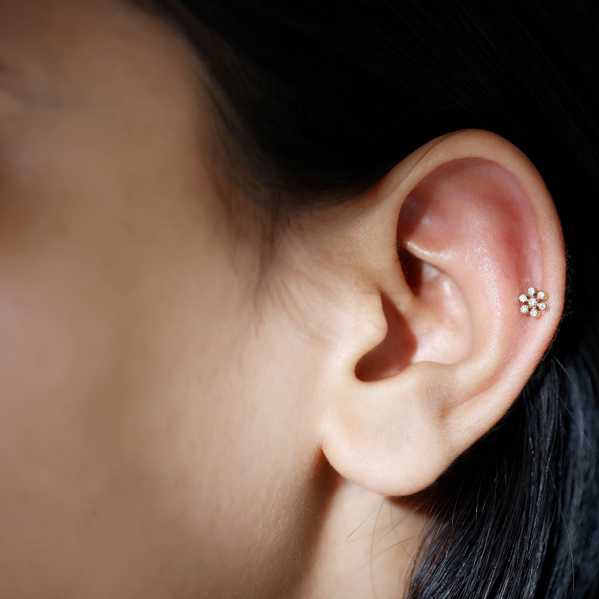 The Diamond Floral Earring is absolutely dreamy and can compliment any outfit for that perfect look. It features round diamonds set in beaded bezel setting, all arranged in a lovely floral design. You can easily elevate your Cartilage with this Diamond Minimalist Earring to achieve some unique styles. The Flat Back Closure ensures it stays securely in place. Whether youre heading out for brunch with friends or prepping for a date night, our Diamond Helix Earring is the ideal accessory. There are countless ways to style this Flower Stud Earring, you can mix it with another stud, a hoop, or any bold statement jewelry piece. This makes a fantastic birthday gift, an anniversary present, or a romantic surprise, beautifully celebrating lifes most treasured moments. It comes in a variety of metal color options and is available in different metal choices. Plus, this Piercing Stud includes a certificate of authenticity for the gemstones and is delivered in a premium storage box. Stack it up and get ready to flaunt this stunning piece.