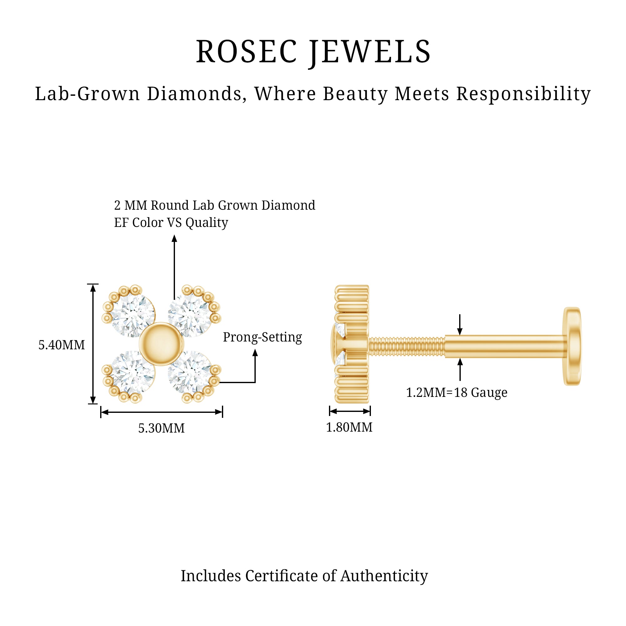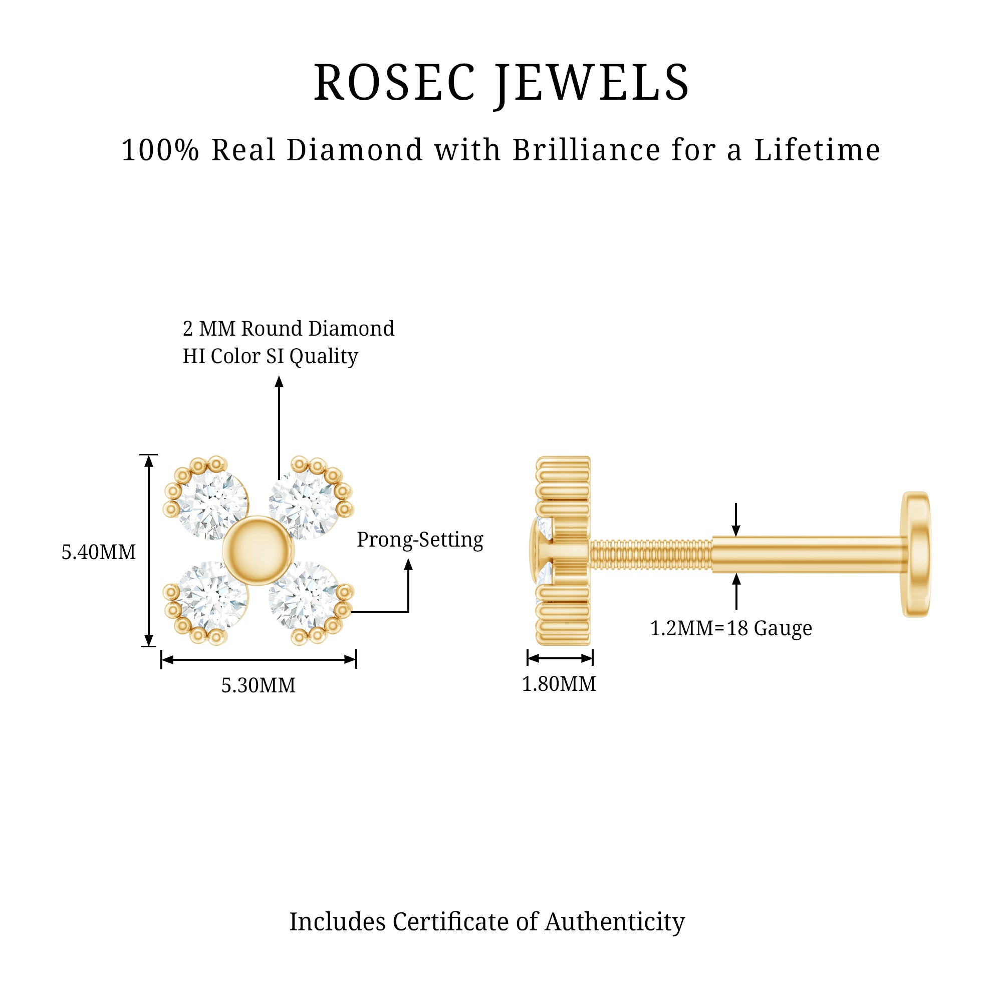 This time we said more is more - more shine. This Diamond Helix Earring is embellished with sparkling Round Diamonds set in Prong Setting with beaded design. Wear this Diamond Earring solo or stack it up, either way, made to be seen. Whether you wear it on your Helix, Cartilage, Conch, or Upper Lobe Piercing. Ready to add some sparkle to your OOTDs? As you can style this simple Piercing Earring with your every outfit, in case its your party attire or a casual one, youll stand out. Give our Minimal Earring to your special person on a special day as it makes a thoughtful and trendy Gift for Her.