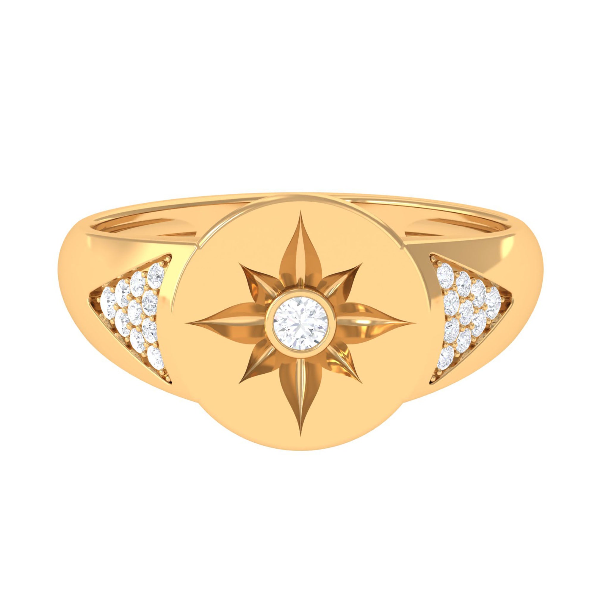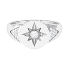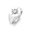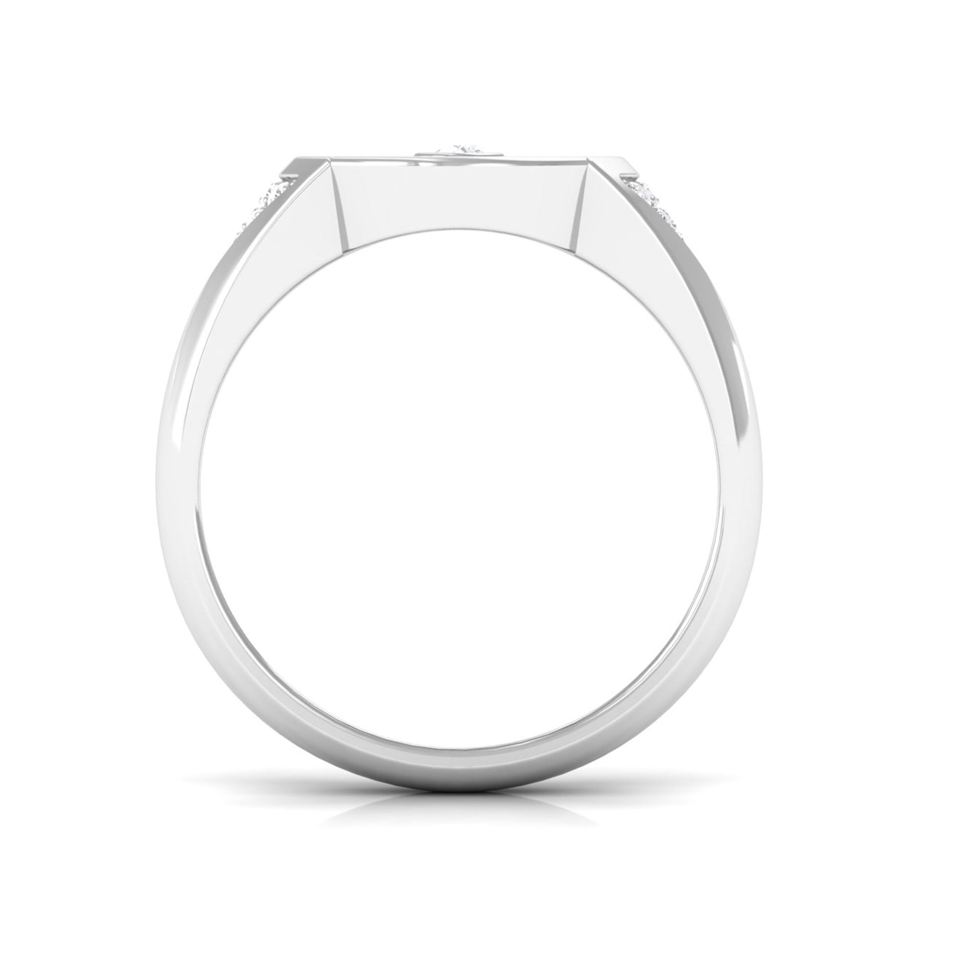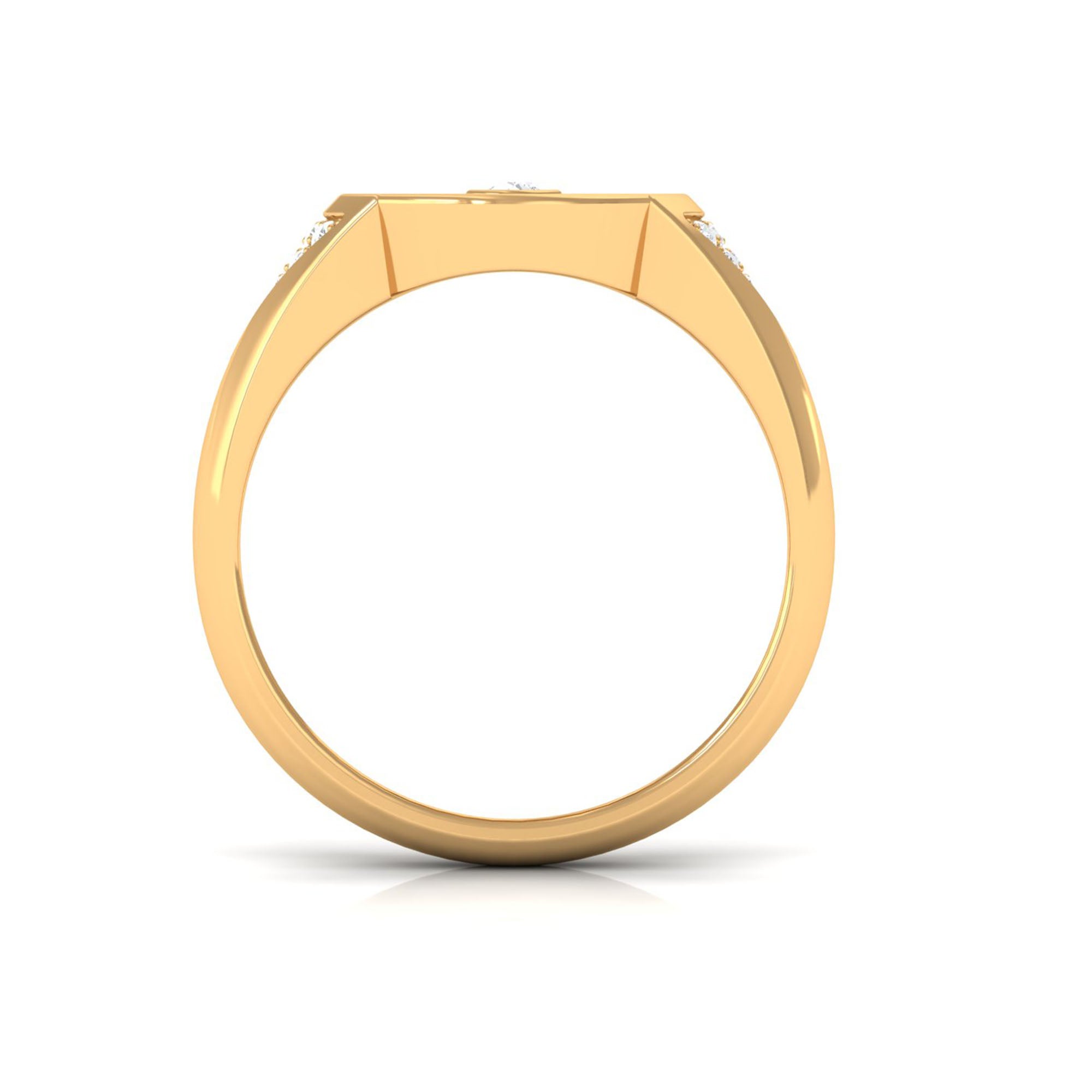 Embrace your inner confidence with this timeless and modern diamond signet ring. The ring features small sparkling diamonds encrusted in the center and as the side stones. The bezel setting protects the diamond, showcasing its brilliance and fire. The simple yet elegant design is perfect for any style, and the quality craftsmanship will ensure that your ring lasts for years to come.