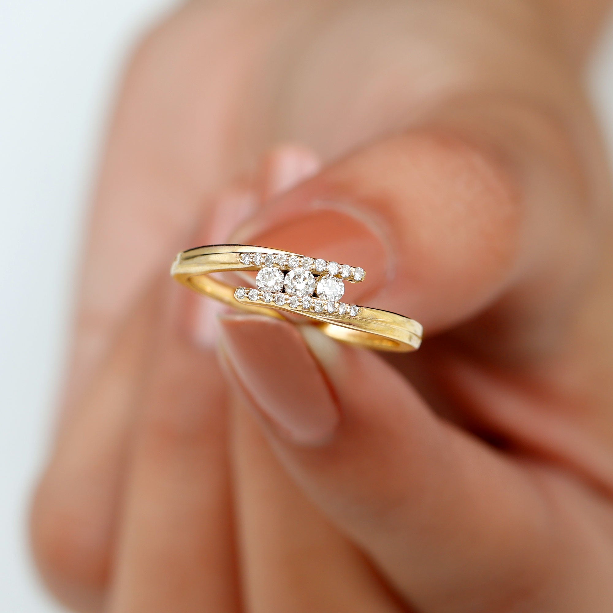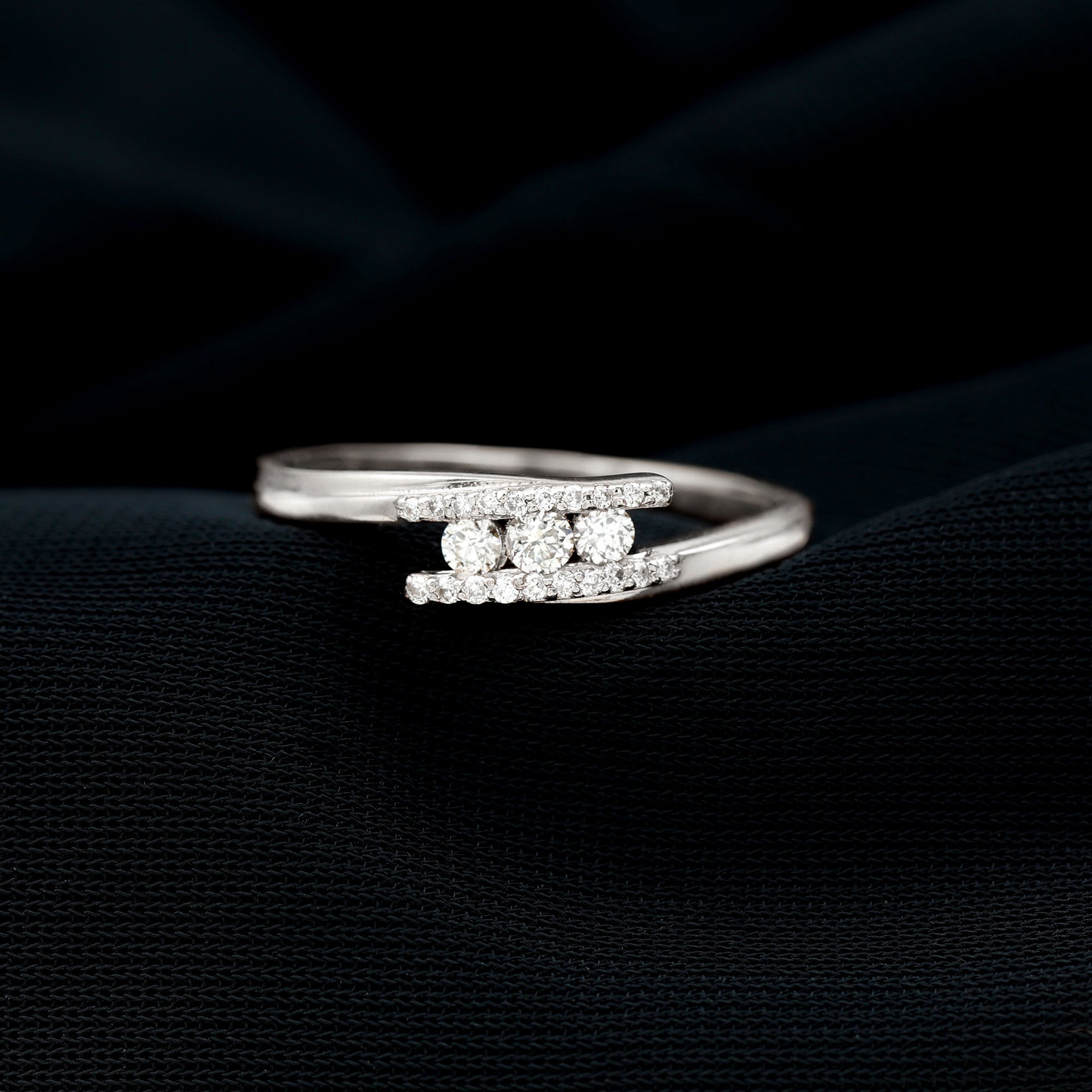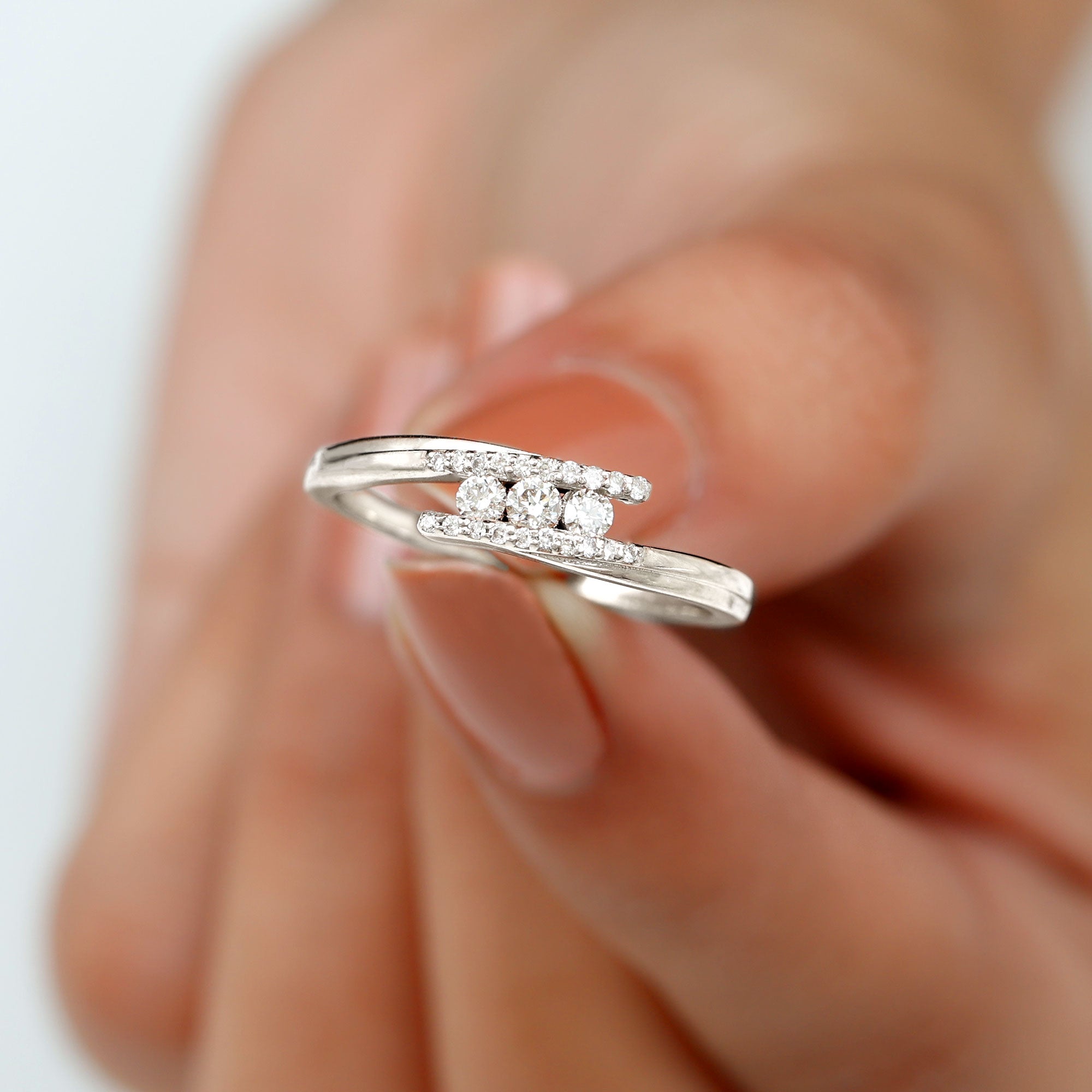 The ideal woman deserves the ideal piece of jewelry, and we have just the right one for her! Check out this gorgeous 3 Stone Promise Ring that features three round brilliant cut diamonds set in a tension mount for a floating effect, celebrating the past, present, and future of your love story. This beautiful Real Diamond Ring showcases a classy design that symbolizes eternal love and commitment. The diamond-studded bypass shank style gives it a modern, dynamic flair, making it the perfect pick for a promise or milestone event. Crafted with care and style, the Promise Ring for Her comes in various metal types and colors, offering a luxurious and timeless representation of your bond. Whether its a Pre Engagement Ring or a special promise, this piece is bound to enchant and honor your love story. This stunning Diamond Three Stone Ring is sure to light up her life. Made from high-quality, beautiful materials, it ensures she will treasure it for years to come.