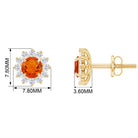 Round Fire Opal and Diamond Flower Halo Stud Earrings