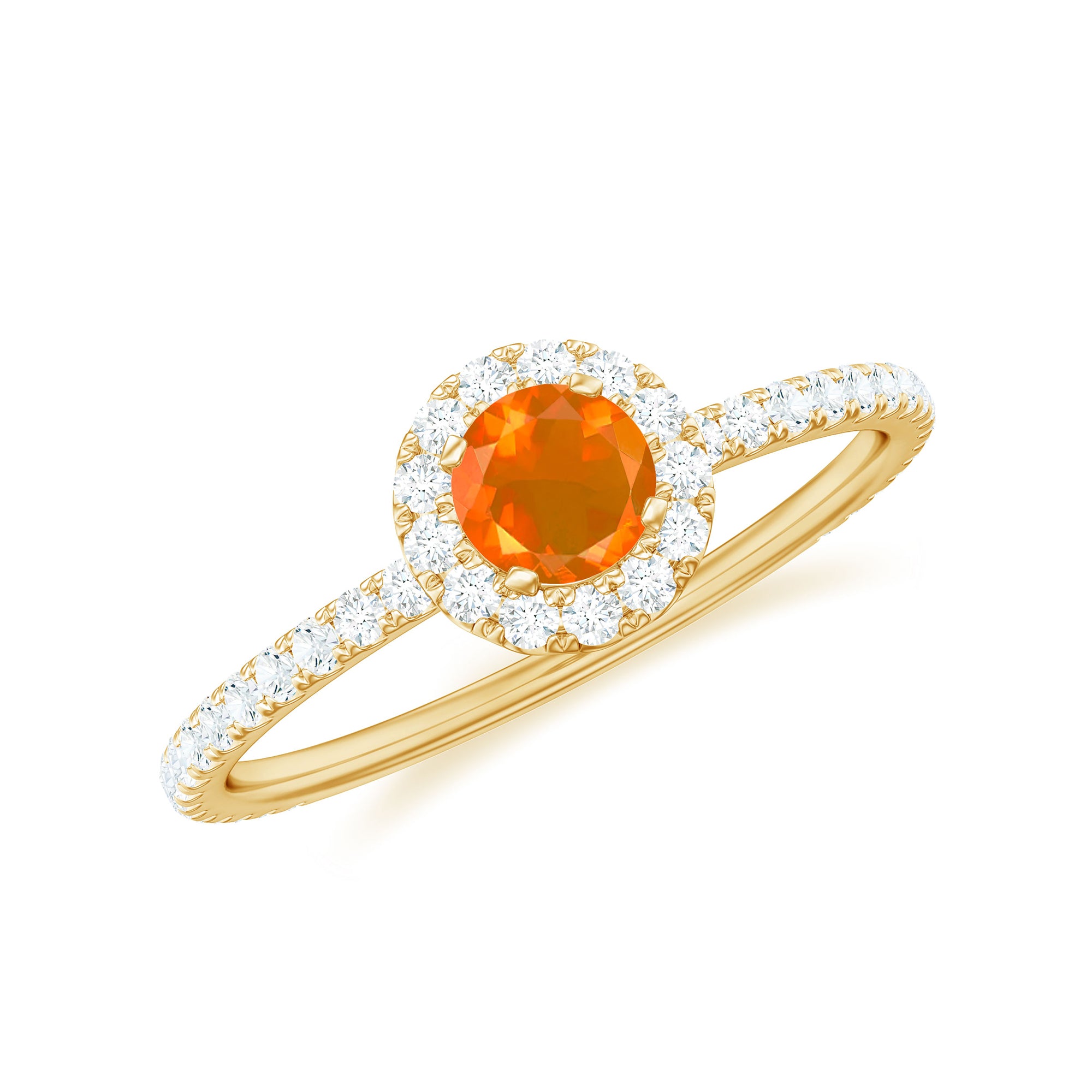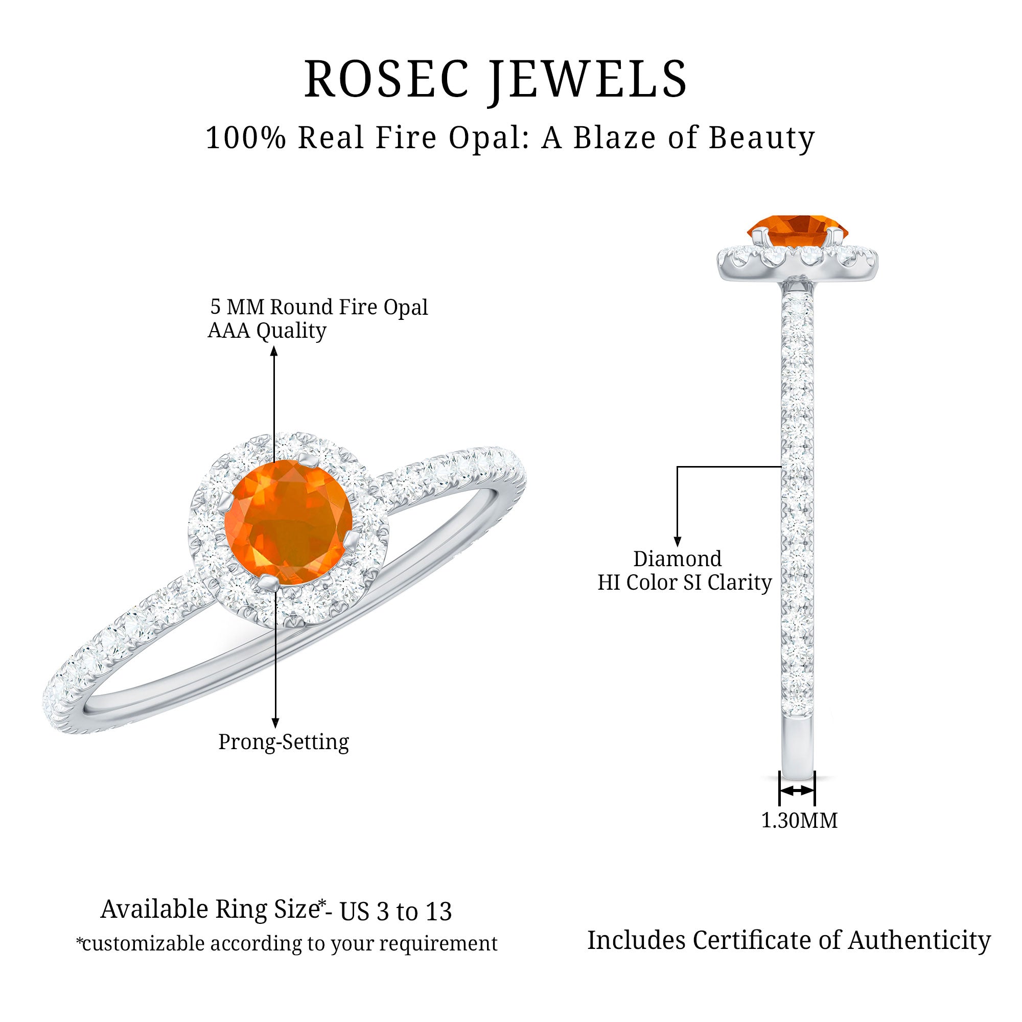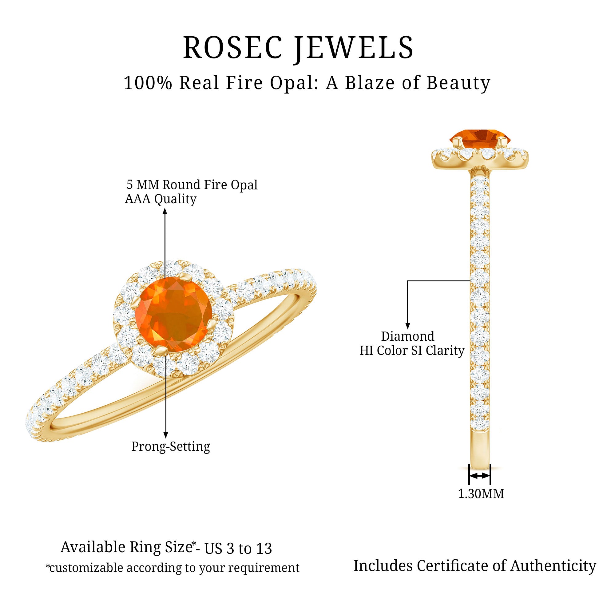 Treat yourself to a dazzling piece of jewelry with the Rosec Jewels store. The Round Shape Fire Opal on this Ring is beautifully accented with Diamond, making it a stunning and eye-catching addition to your collection. So why wait? Add a touch of sparkle to your life today with this gorgeous Opal Ring.