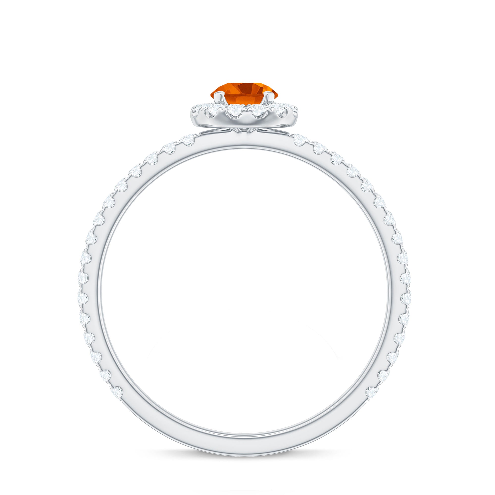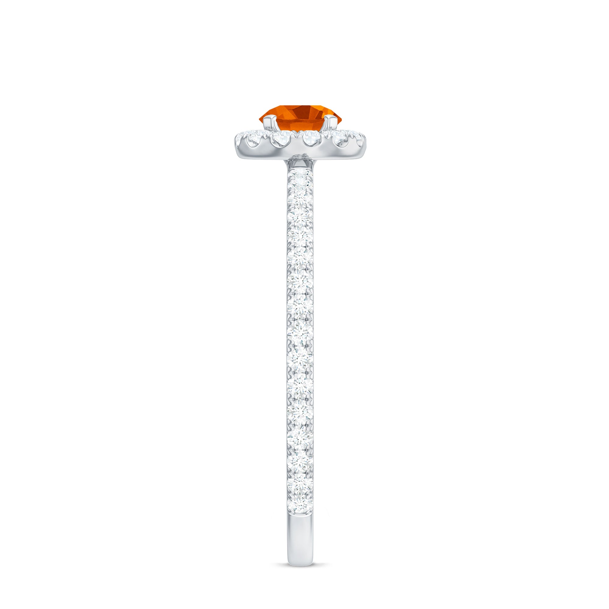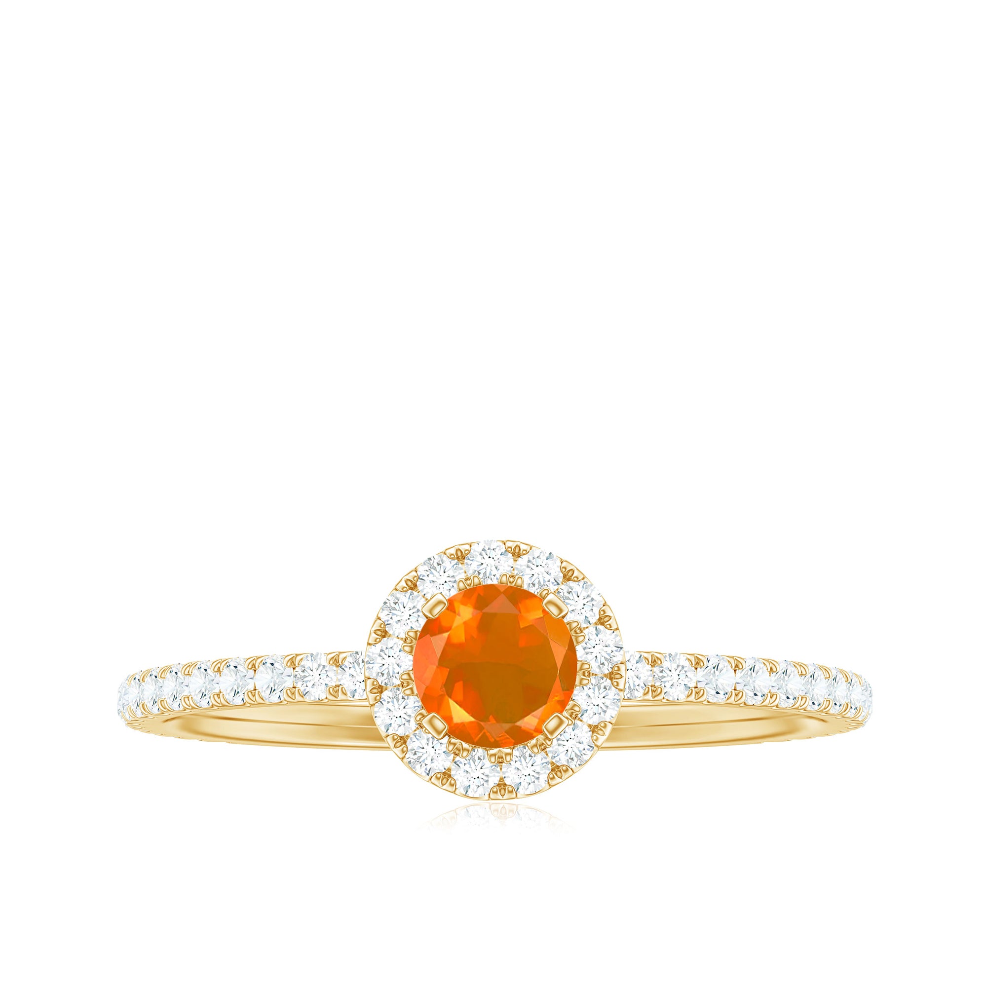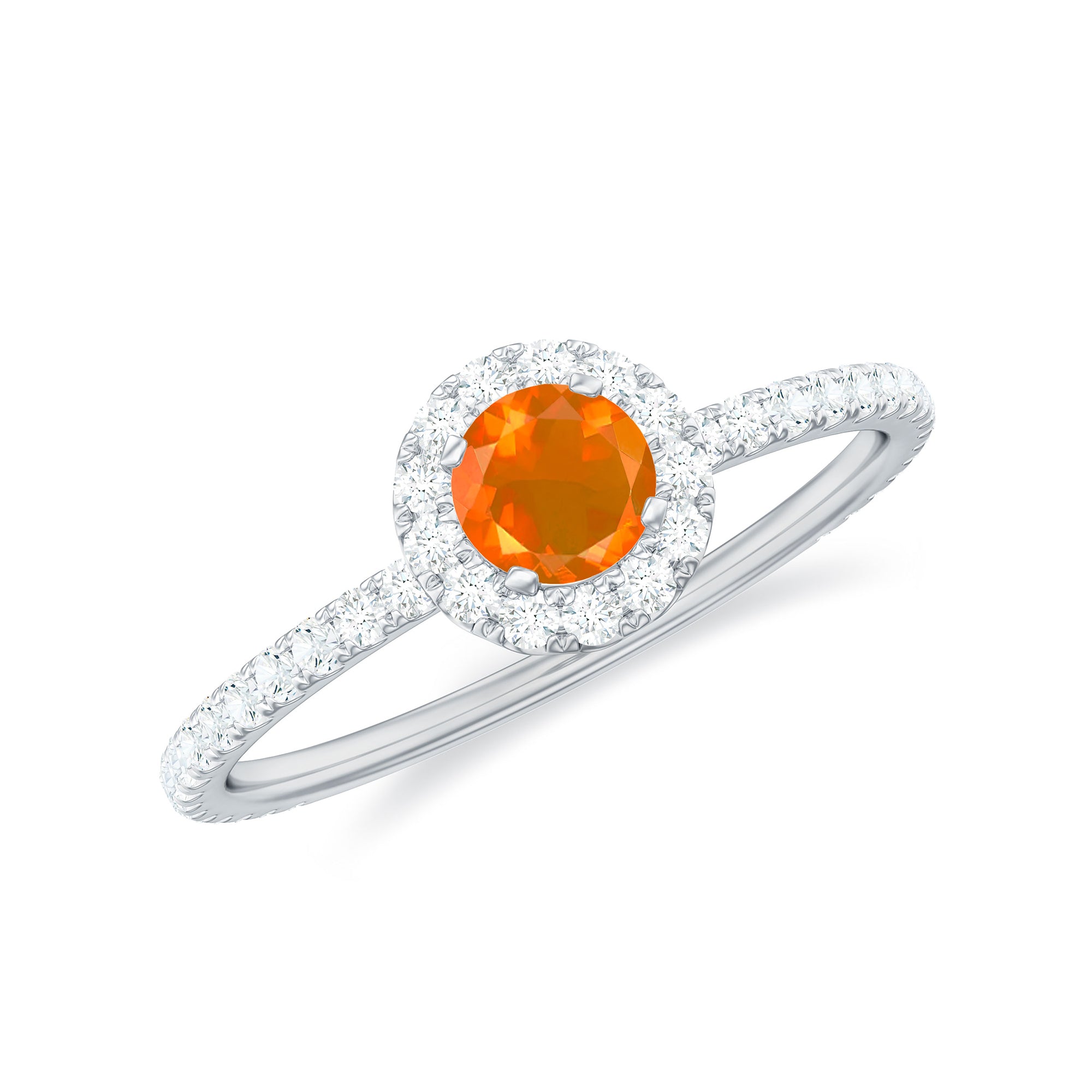 Treat yourself to a dazzling piece of jewelry with the Rosec Jewels store. The Round Shape Fire Opal on this Ring is beautifully accented with Diamond, making it a stunning and eye-catching addition to your collection. So why wait? Add a touch of sparkle to your life today with this gorgeous Opal Ring.